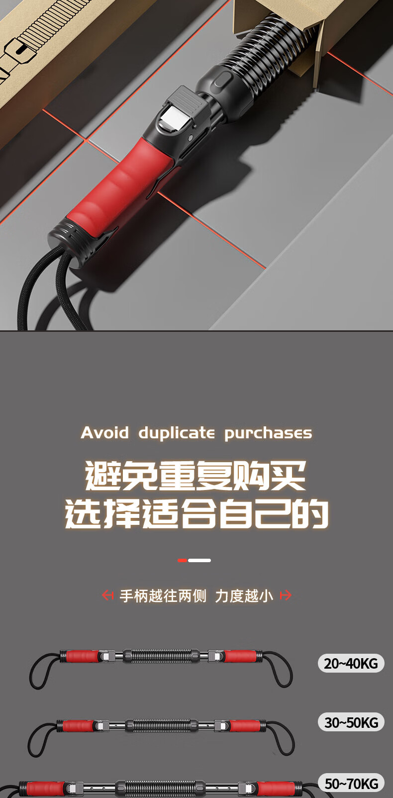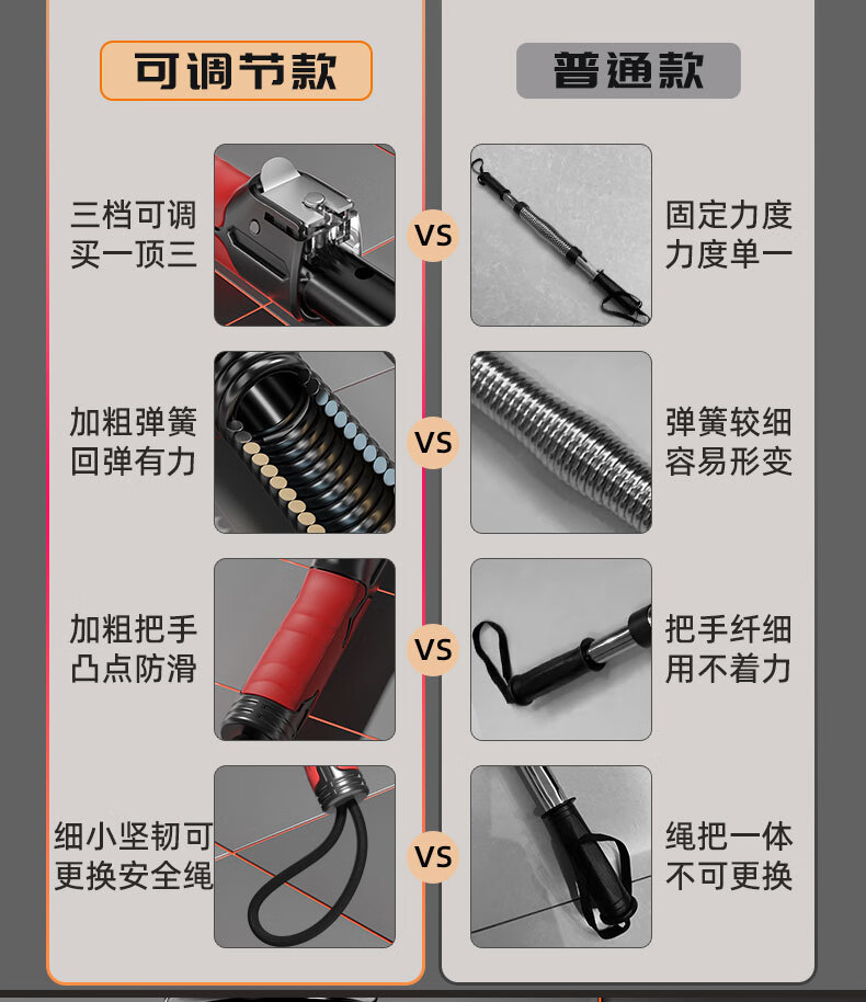 Adjustable arm strength bar for men's home training of arm grip strength, chest muscle training artifact, professional sports and fitness equipment 20/30/40KG, three-speed adjustable strength - high carbon steel spring