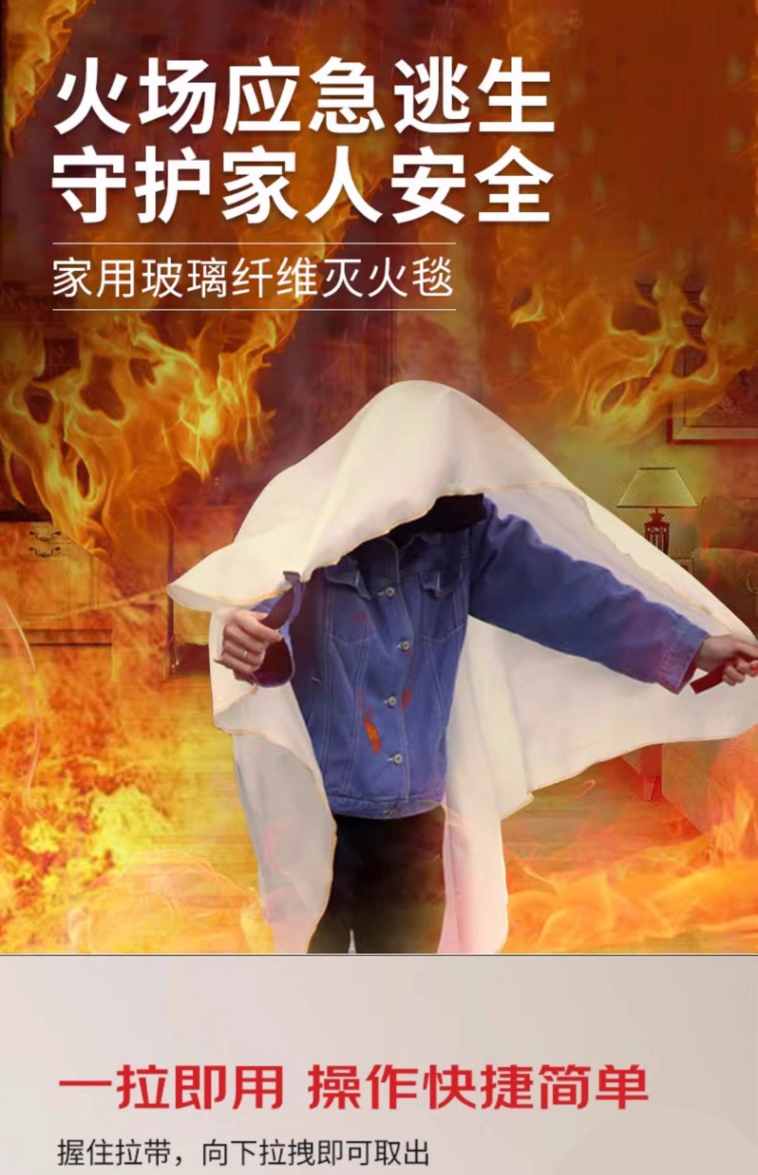 Fire-fighting special fire blanket 3C national standard certification kitchen fire emergency household commercial escape fire blanket 2mX2m fire blanket fiberglass 430g Oxford packaging