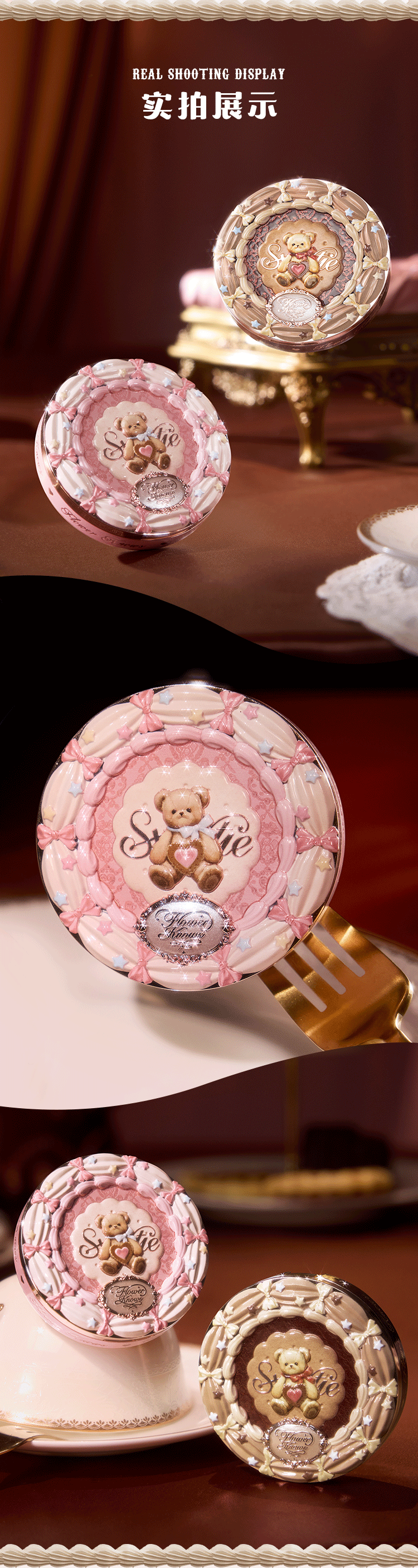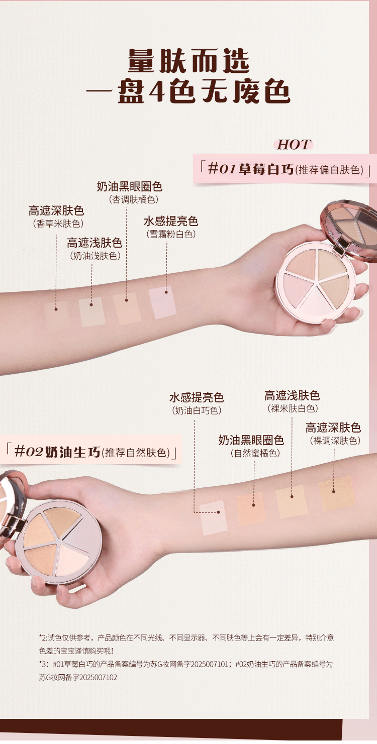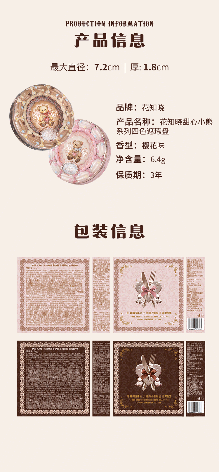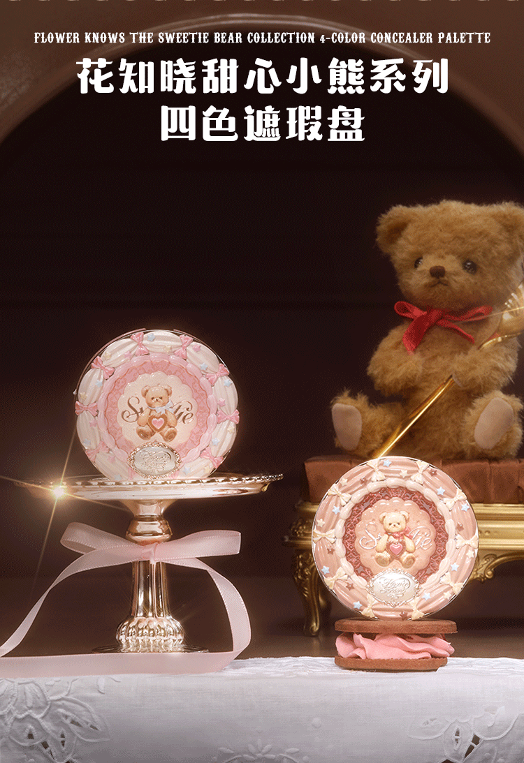 Flower Knowledge Sweetheart Bear Series Four Color Concealer Palette Covers Spots, Facial Acne Marks, Visually Brightens Gift for Girlfriend #01 Strawberry White 6.4g