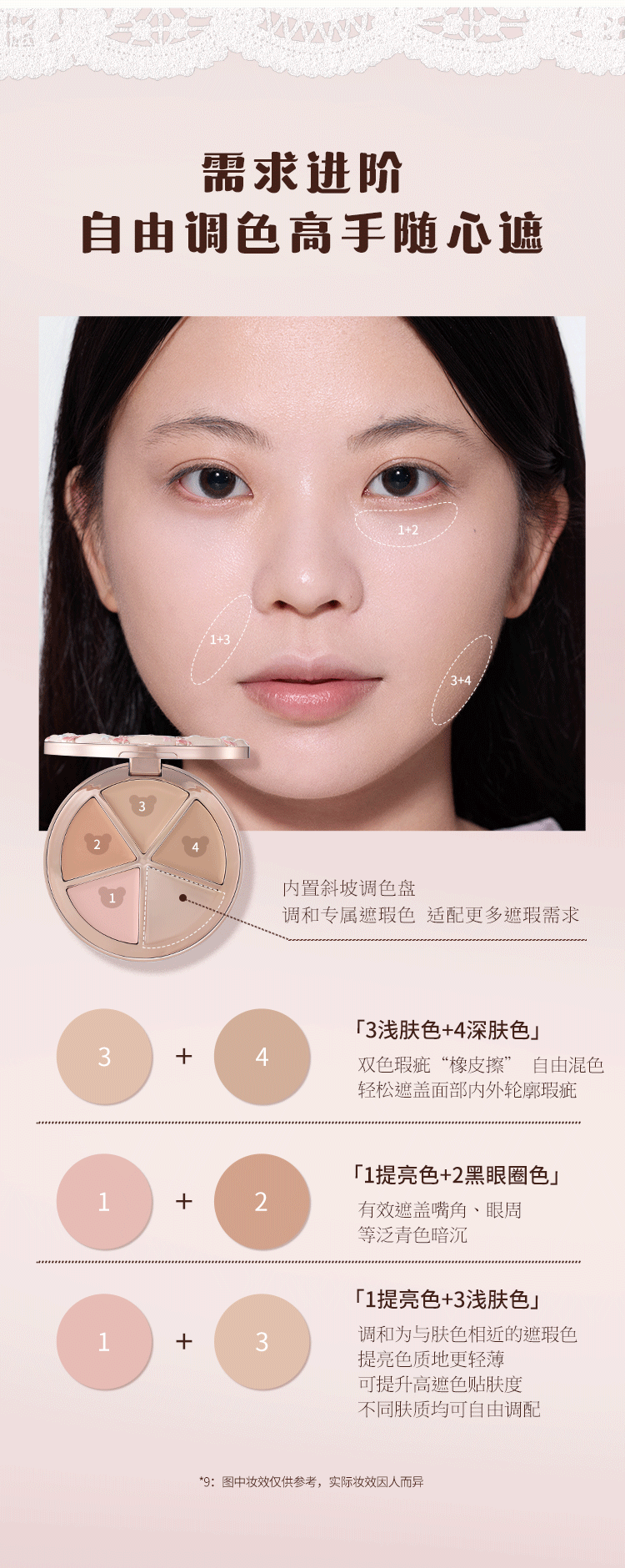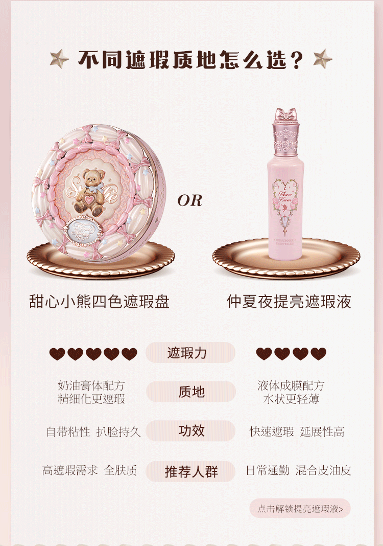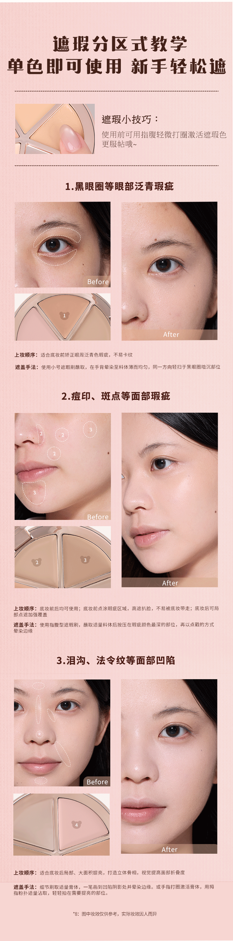Flower Knowledge Sweetheart Bear Series Four Color Concealer Palette Covers Spots, Facial Acne Marks, Visually Brightens Gift for Girlfriend #01 Strawberry White 6.4g