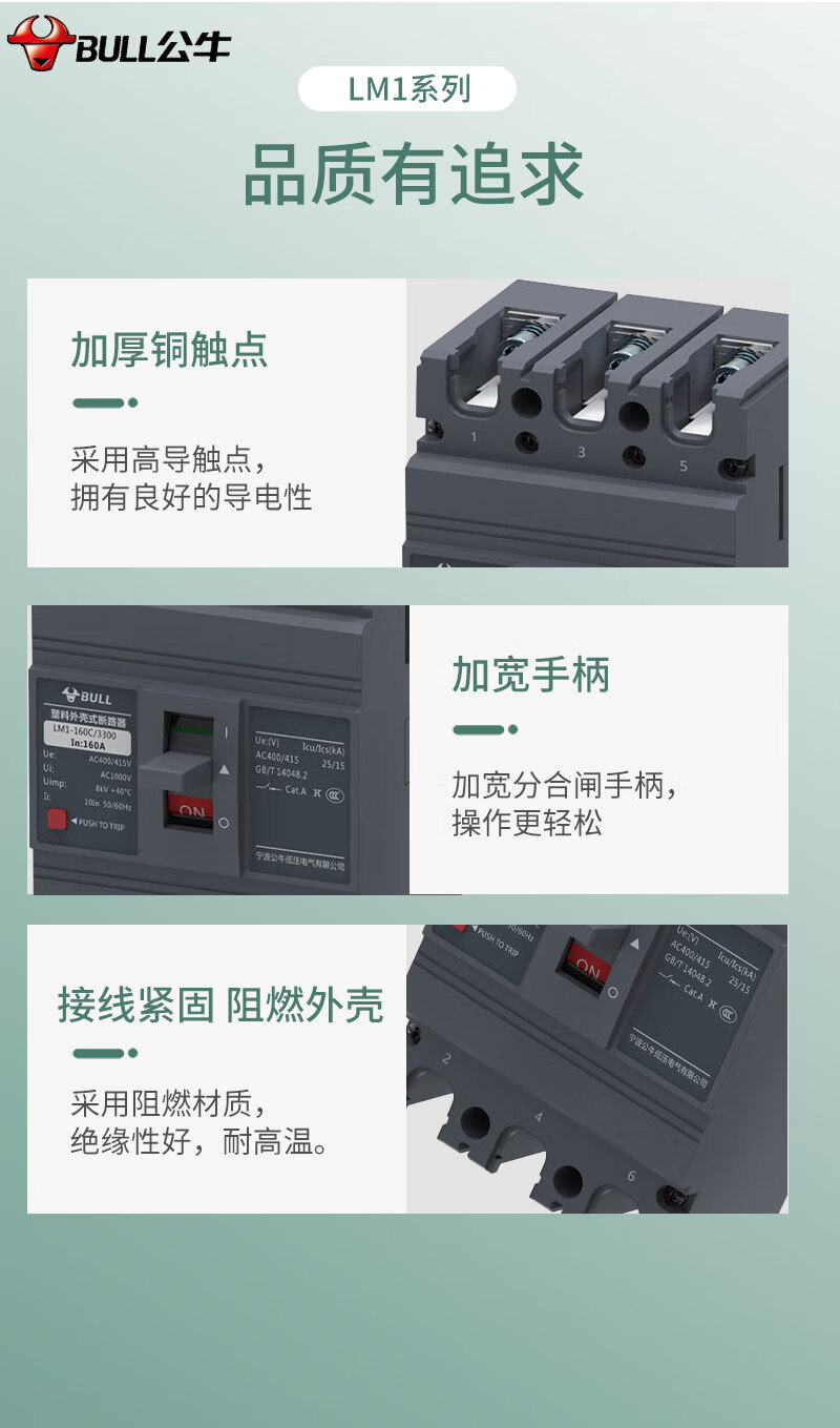 Bull molded case circuit breaker M1- 100A 125A 250A 630A three-phase four-wire NM1 air switch 63A 3P