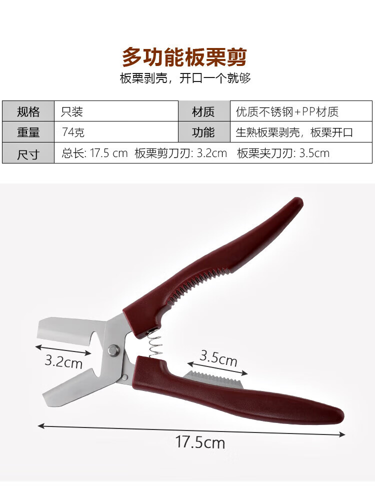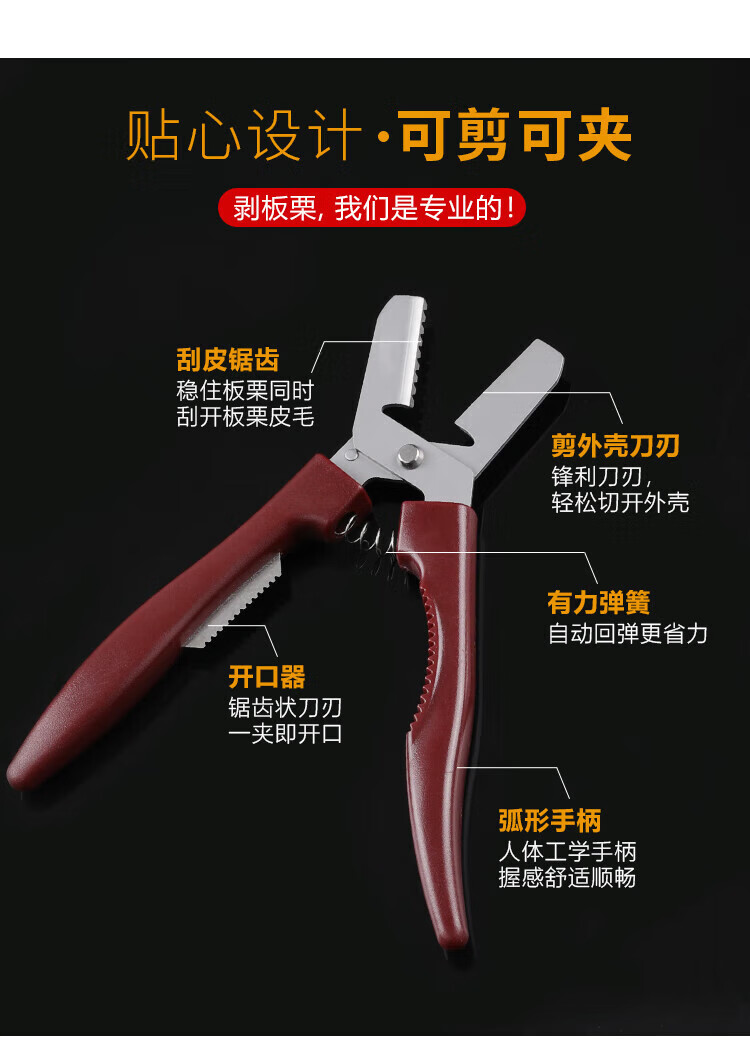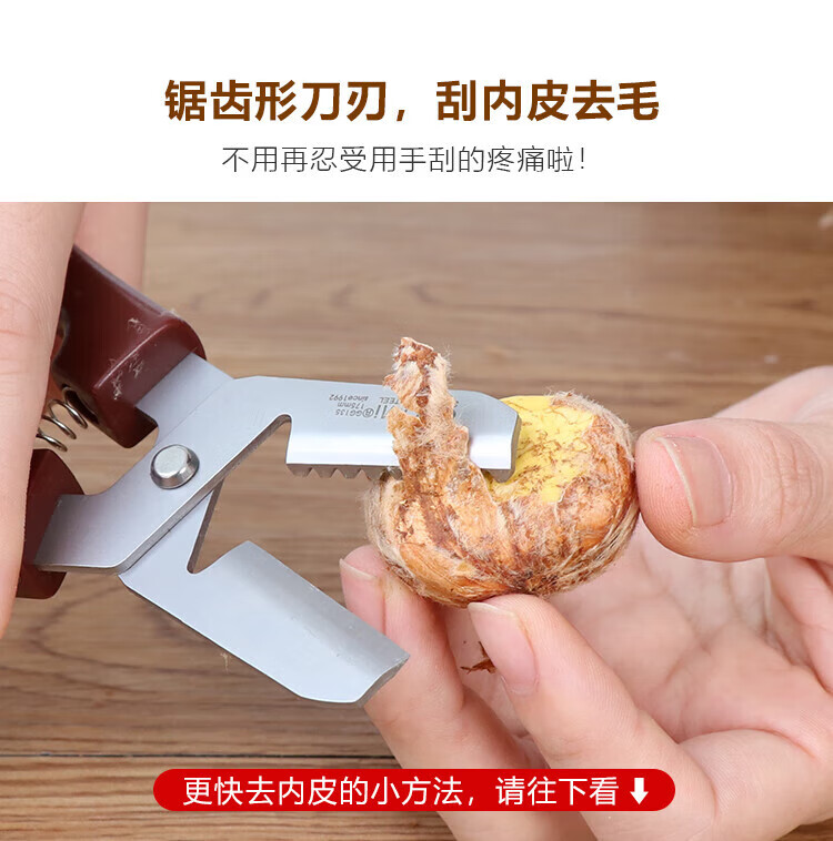 Chestnut opener, chestnut peeling artifact, chestnut peeling machine, peeling clip, chestnut shell scissors, tool peeling machine, two-in-one dual-purpose shelling + shaving (comes with peeling armor)