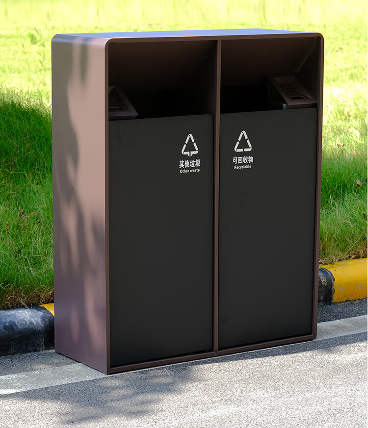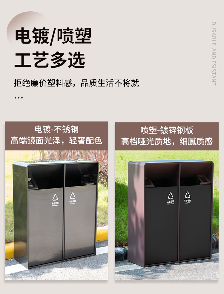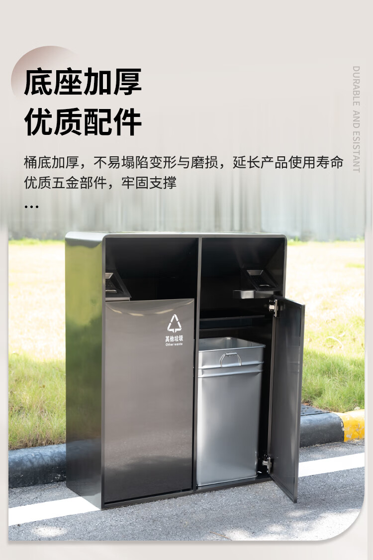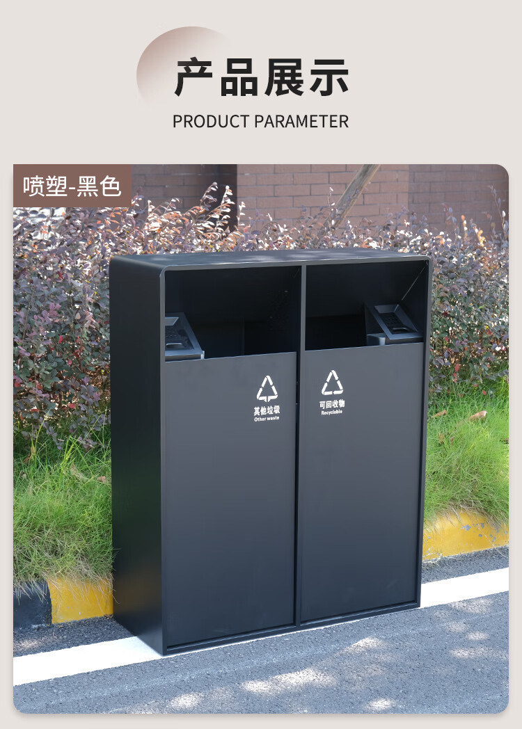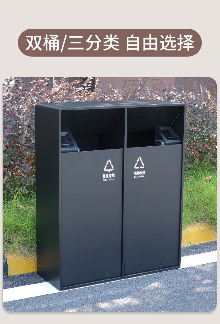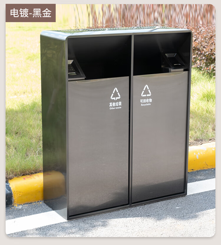 MDNG Stainless Steel Hotel Outdoor Outdoor Trash Can Scenic Area Environmental Sanitation Classification 2, 3 and 4 Commercial Peel Bin Customized Small Double - Electroplated Sand Steel Black