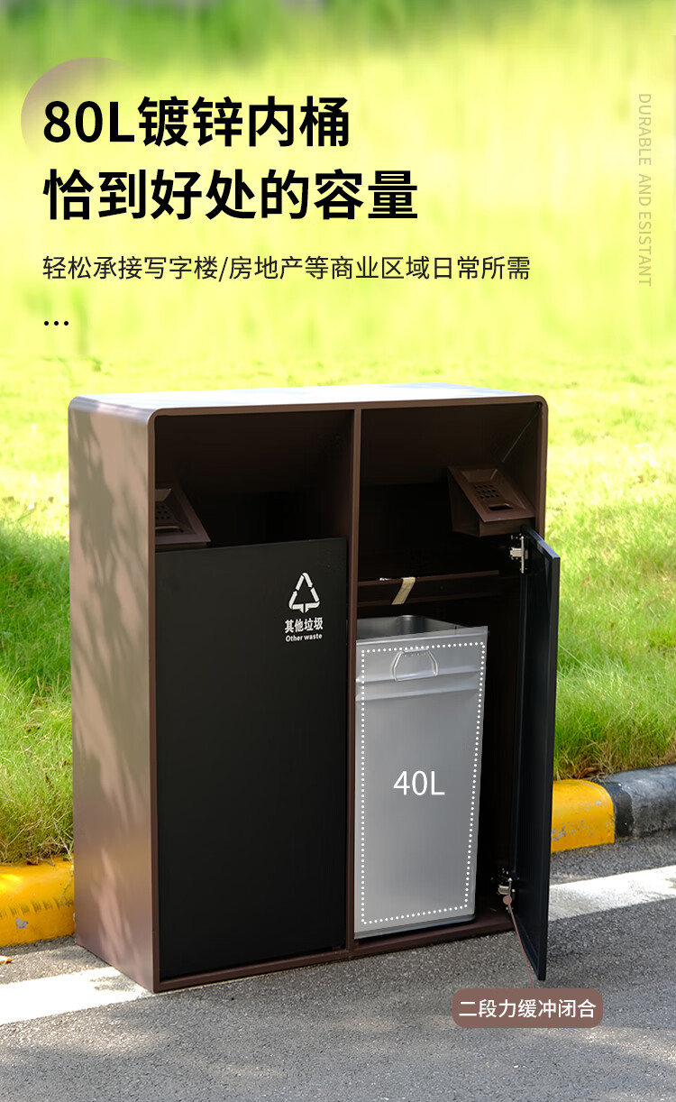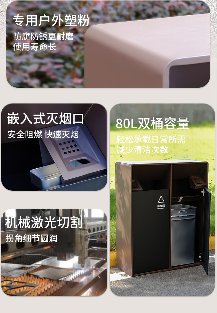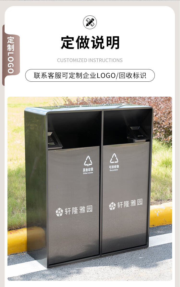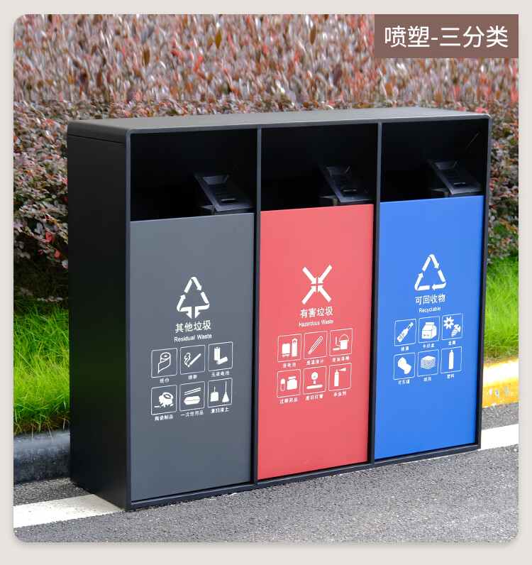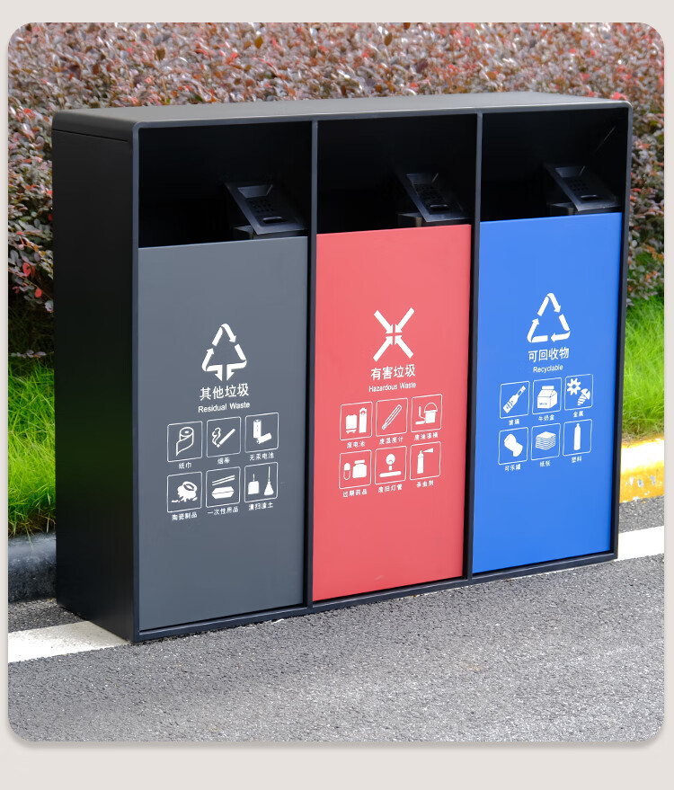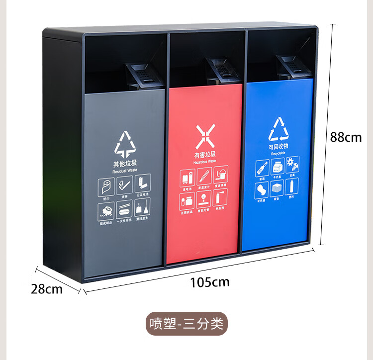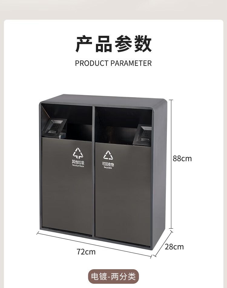 MDNG Stainless Steel Hotel Outdoor Outdoor Trash Can Scenic Area Environmental Sanitation Classification 2, 3 and 4 Commercial Peel Bin Customized Small Double - Electroplated Sand Steel Black
