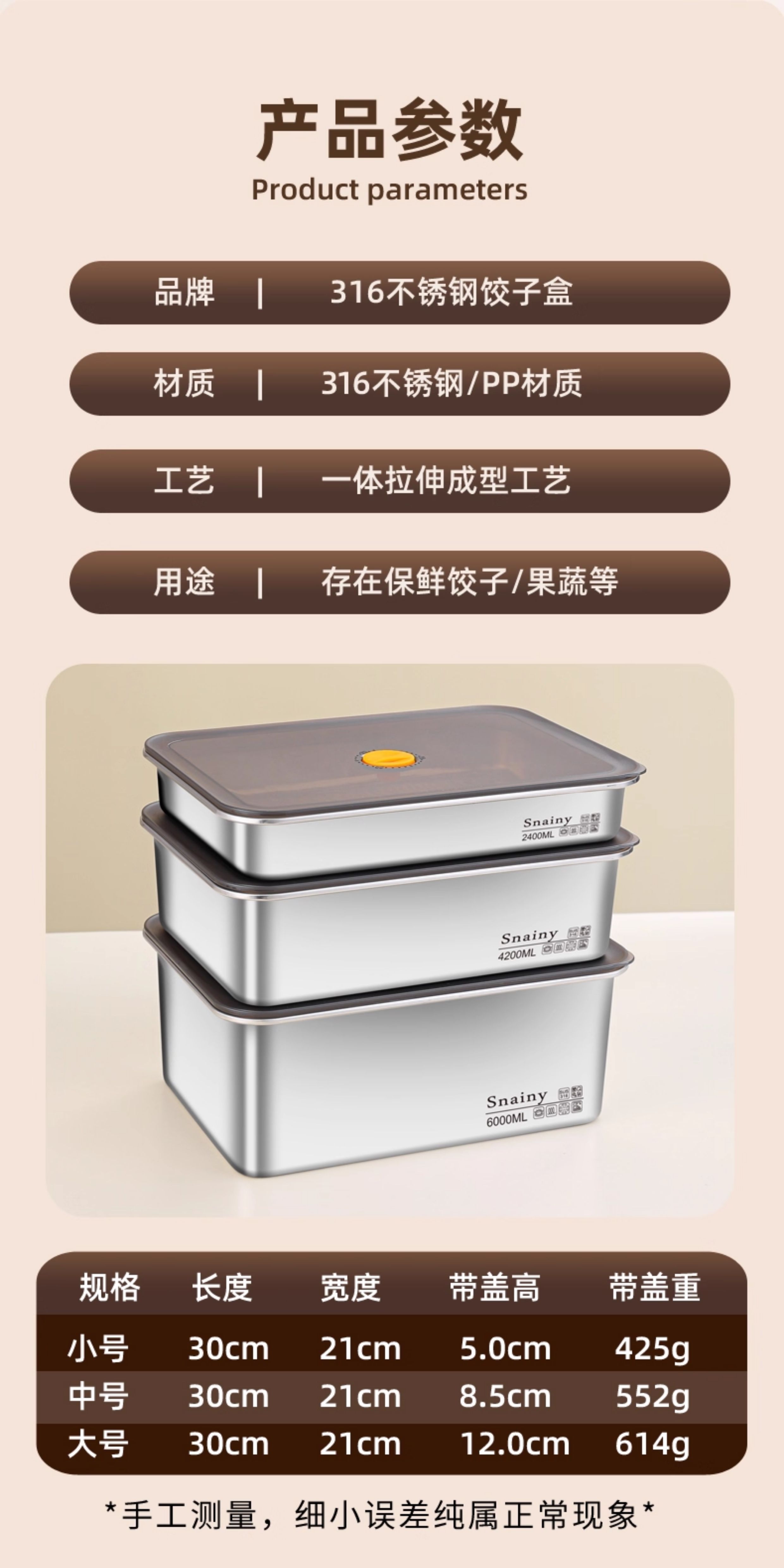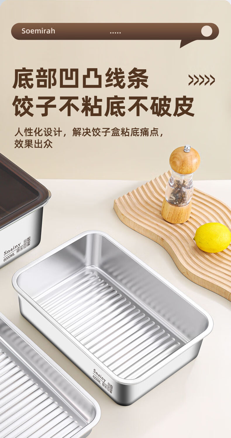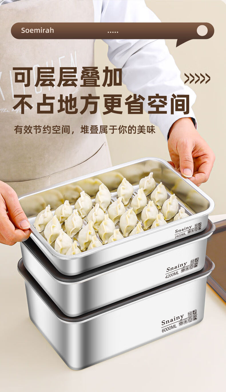 Junran Germany imported quality 316 stainless steel dumpling freezing box food-grade household wonton dumpling quick-frozen storage box dumpling box 2400ml antibacterial 316L steel