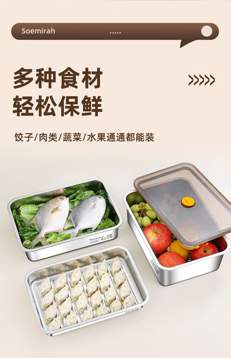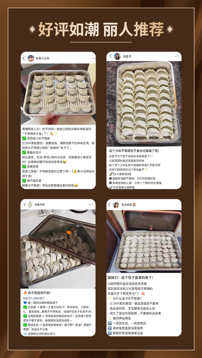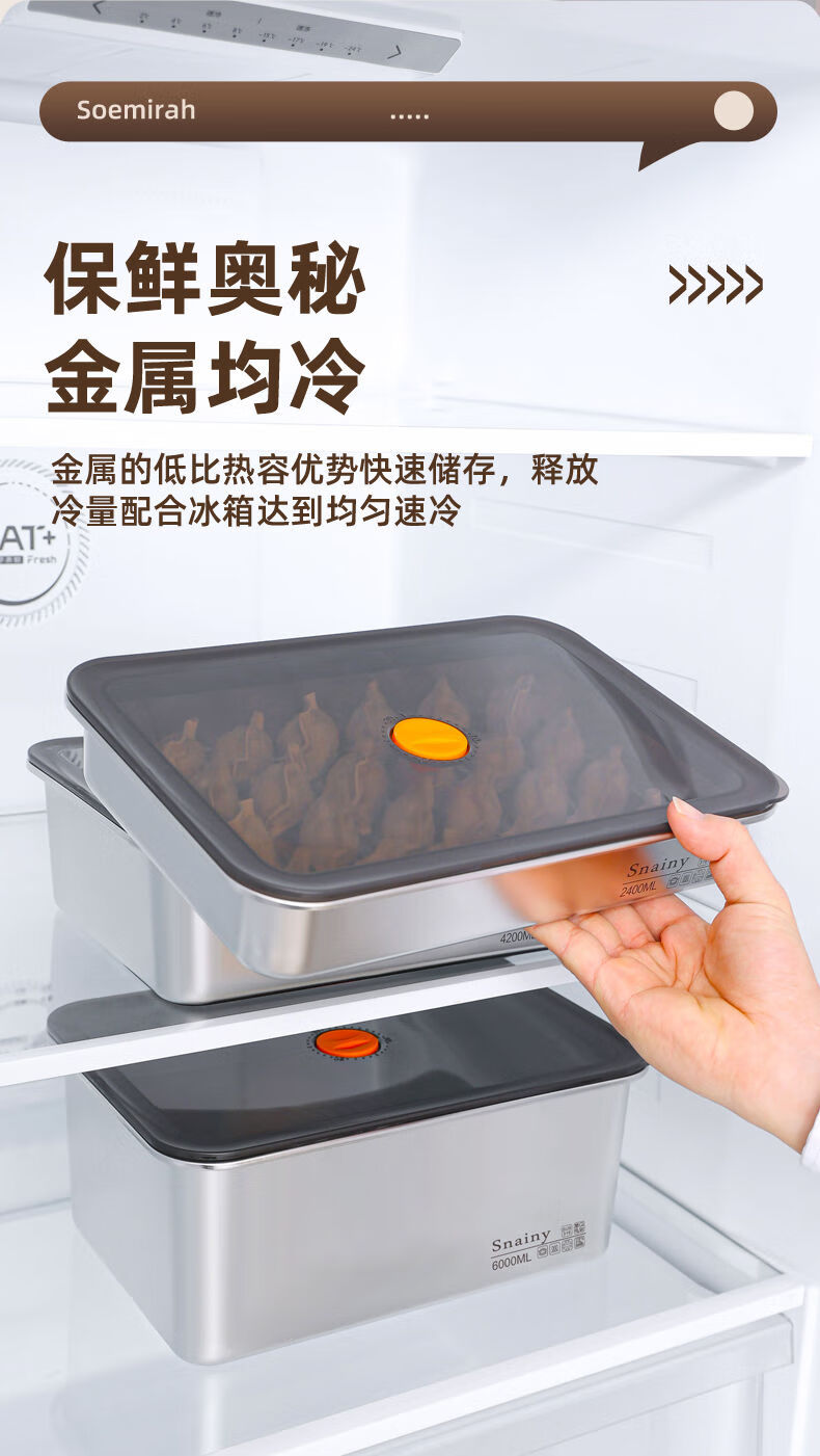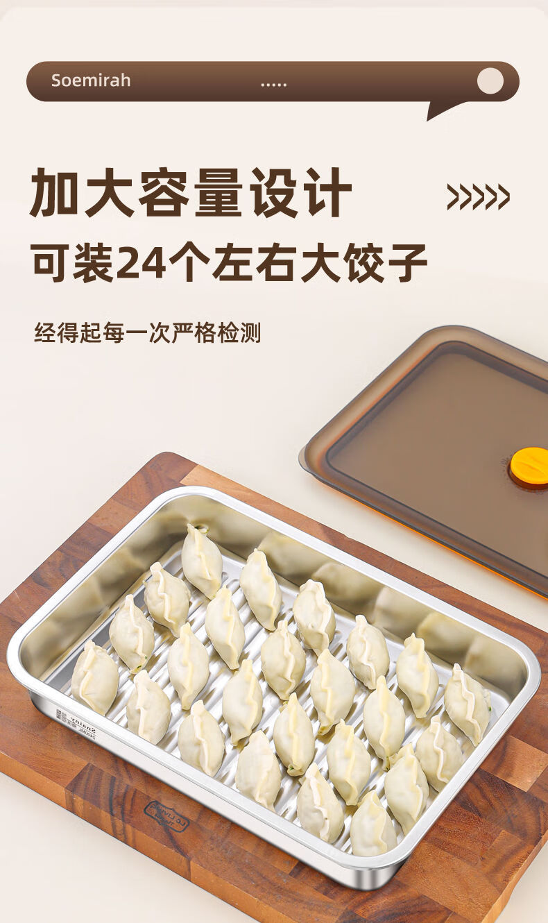 Junran Germany imported quality 316 stainless steel dumpling freezing box food-grade household wonton dumpling quick-frozen storage box dumpling box 2400ml antibacterial 316L steel