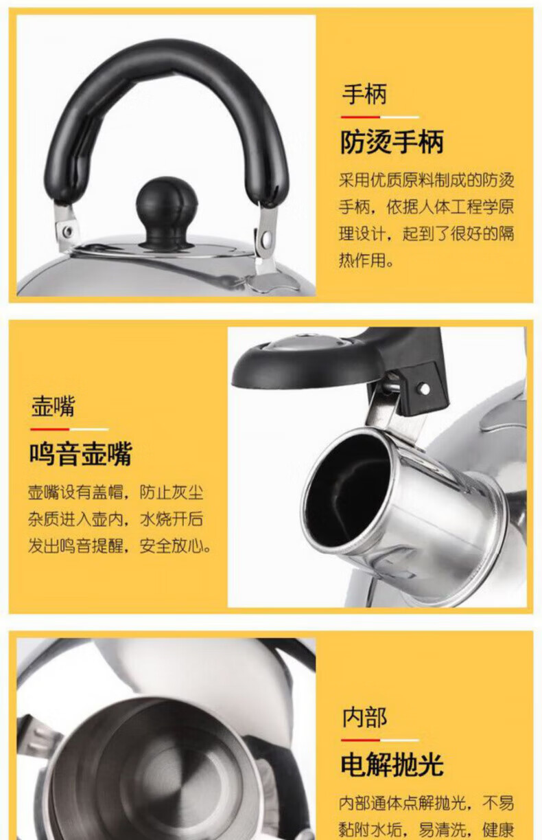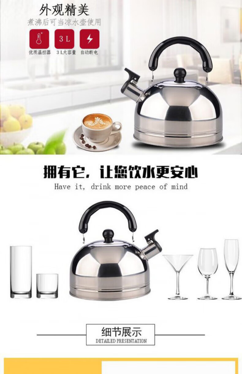 Shi Jin high-end quality induction cooker kettle for tea special flat bottom household kettle 201 stainless steel whistle hot open 2L