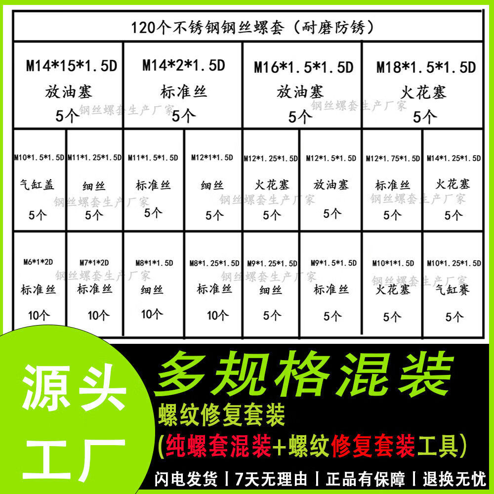 Wire screw set, auto repair combination set, thread repair repair set, wire set, braces, thread protection set, M4M5M6M8, boxed 125pcs/box (M3-M12)