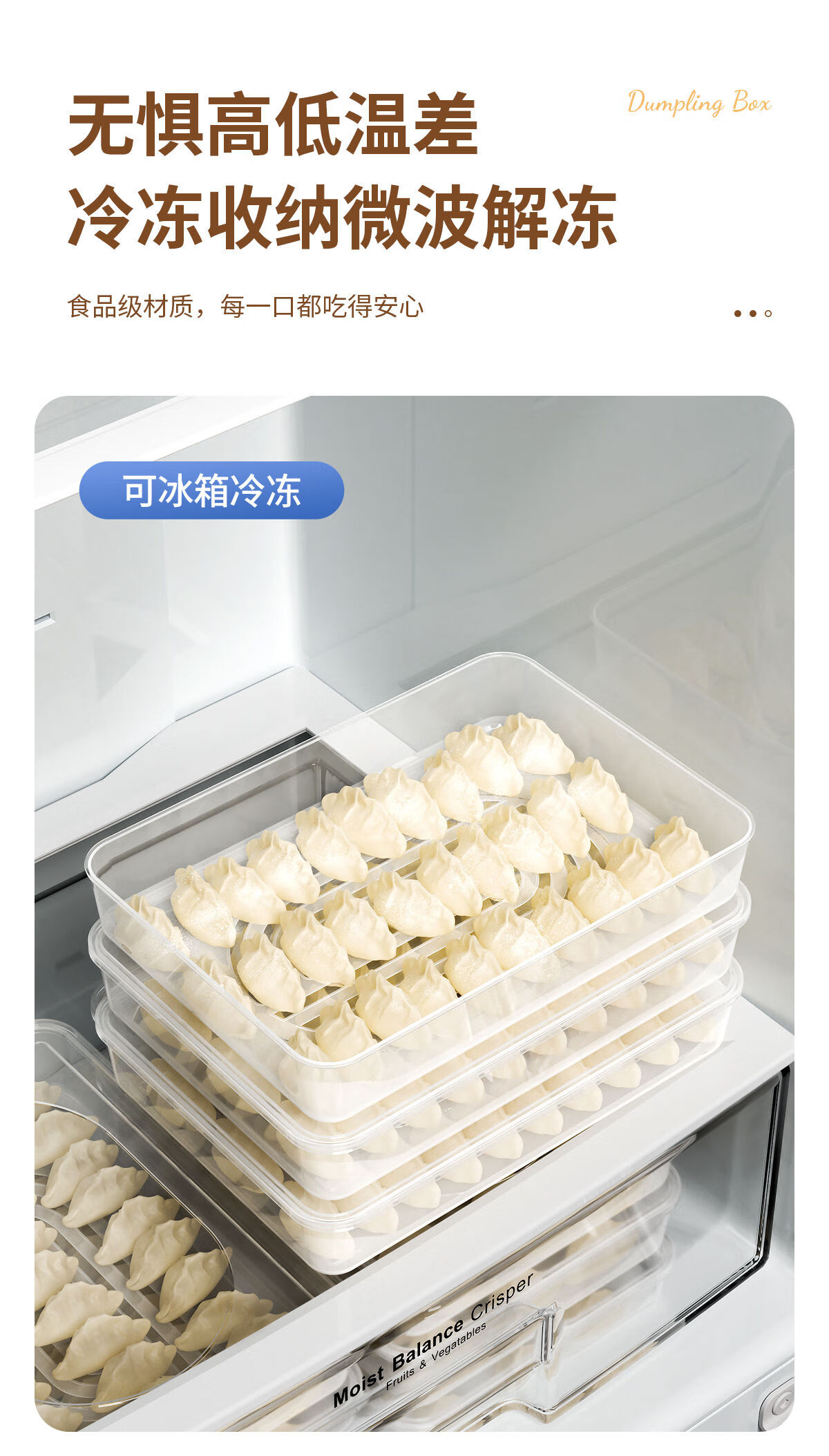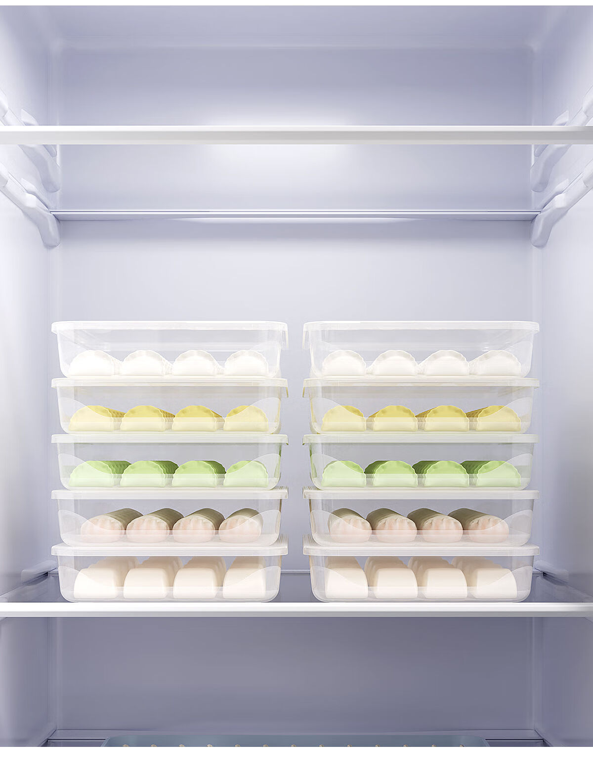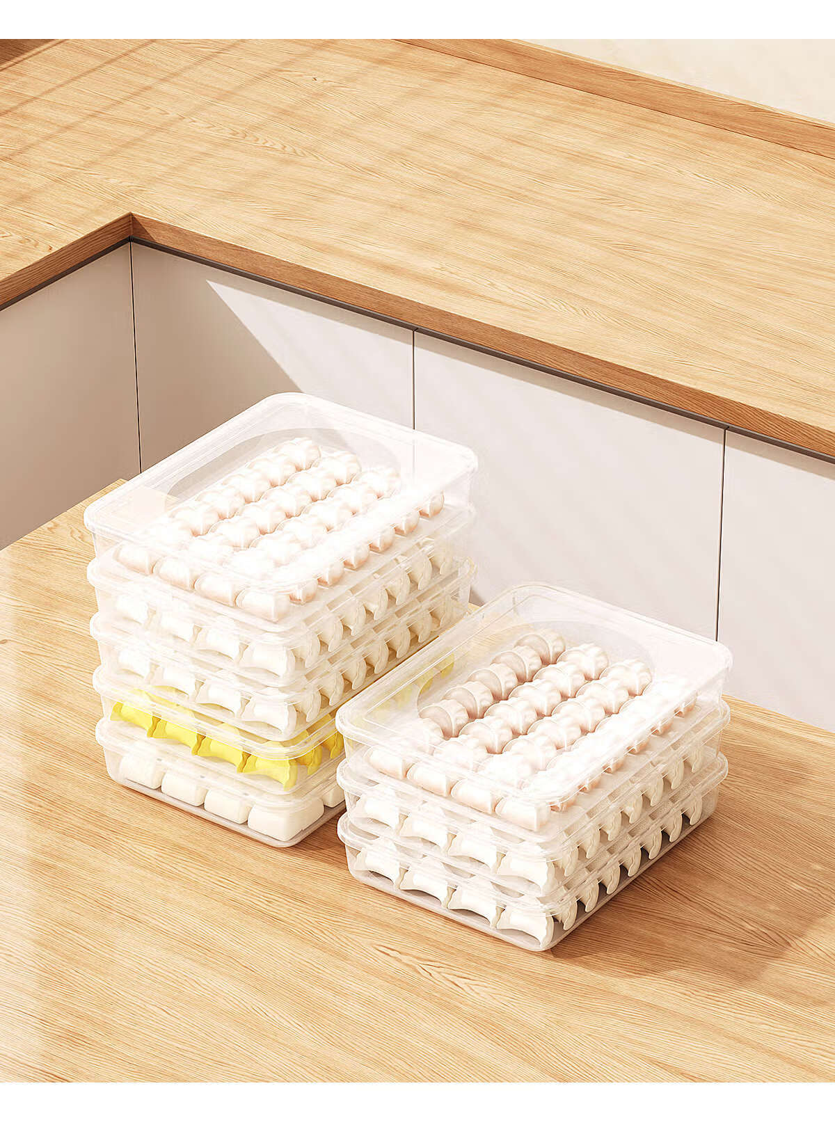 Junran Germany imports quality dumpling storage box for refrigerator, frozen dumpling box, food-grade dumpling packaging, quick-frozen dumpling specialization, large size, 2 layers, 2 covers - stackable, thickened food grade PP