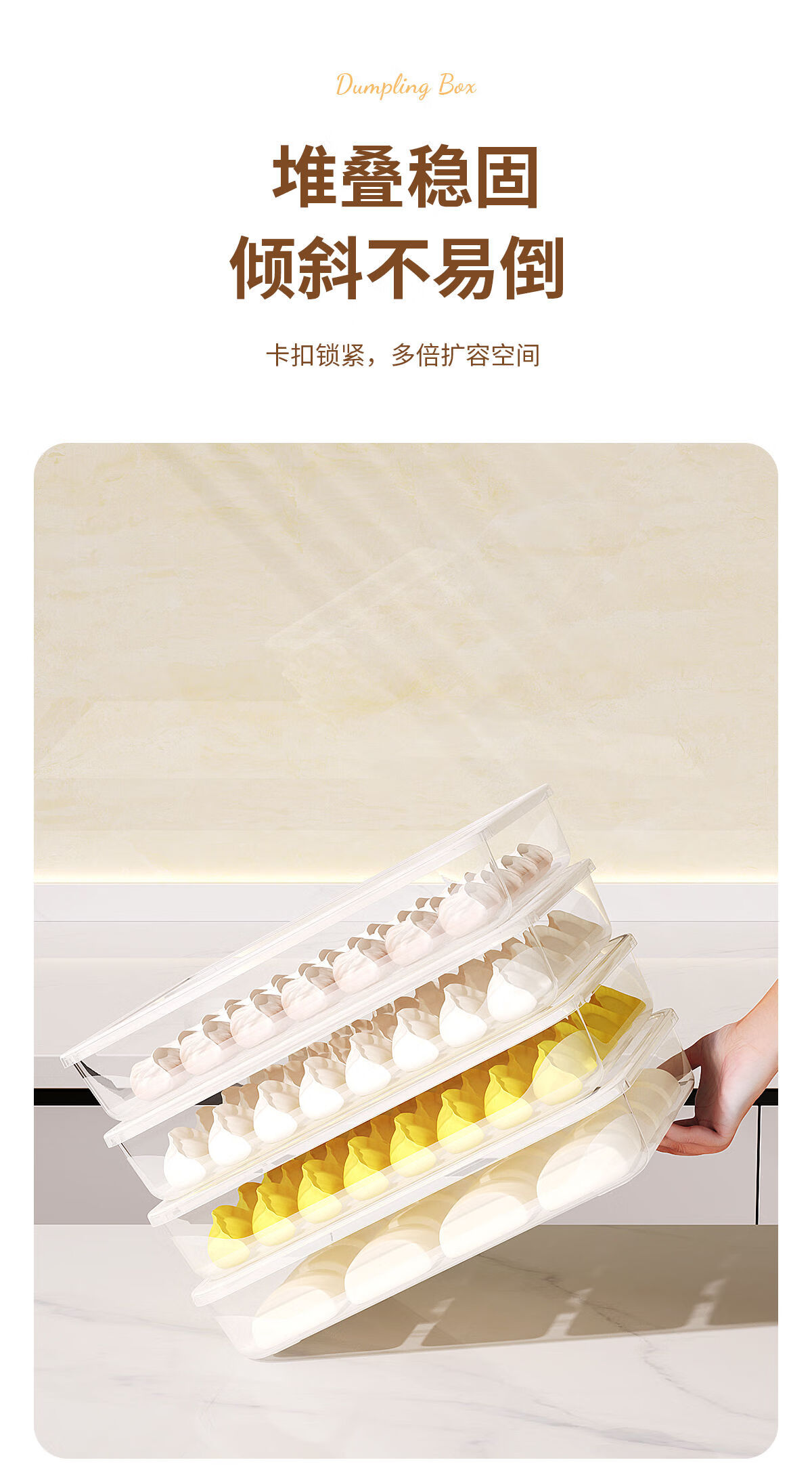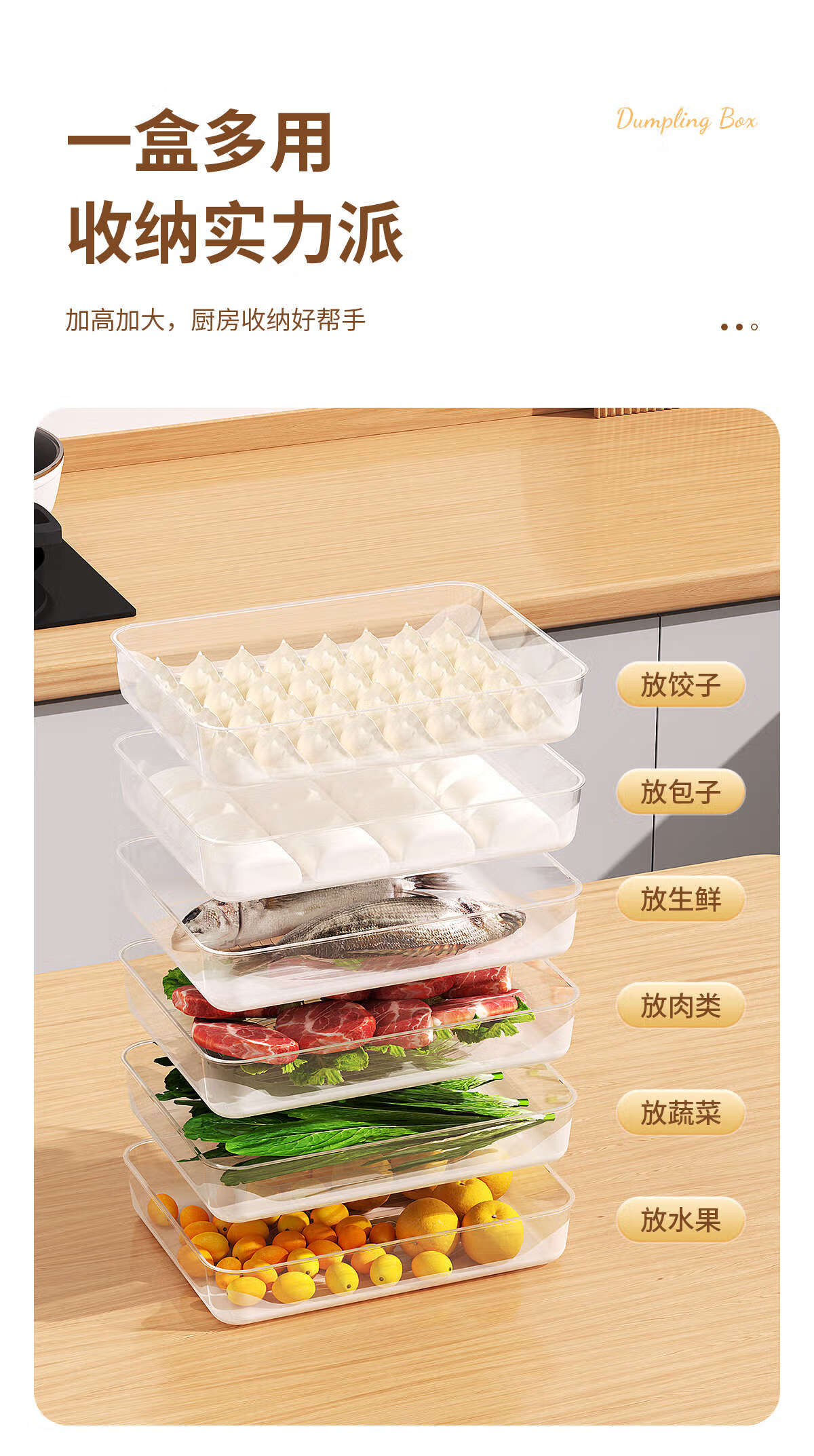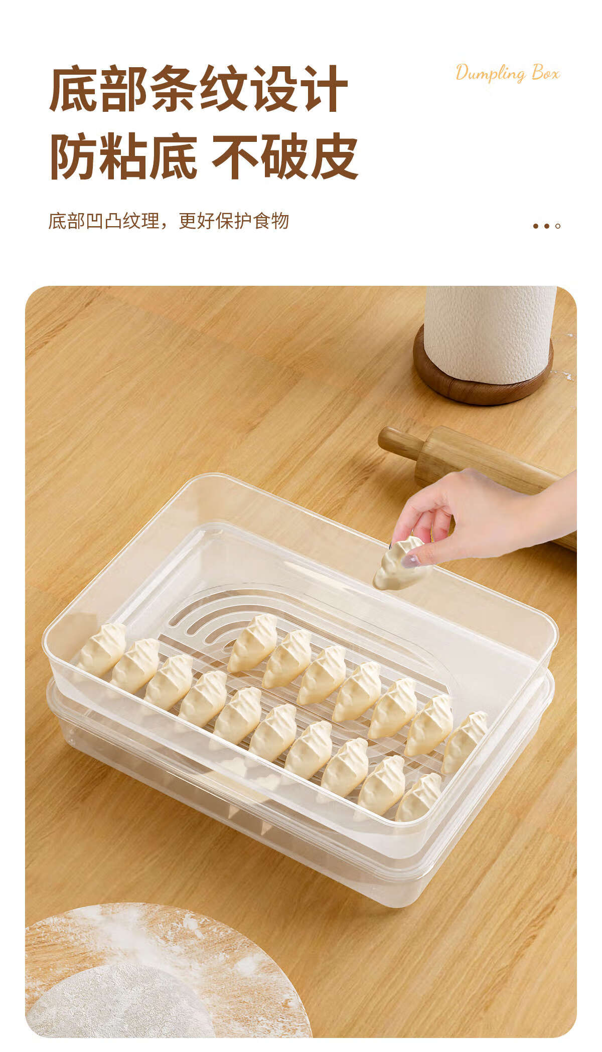 Junran Germany imports quality dumpling storage box for refrigerator, frozen dumpling box, food-grade dumpling packaging, quick-frozen dumpling specialization, large size, 2 layers, 2 covers - stackable, thickened food grade PP