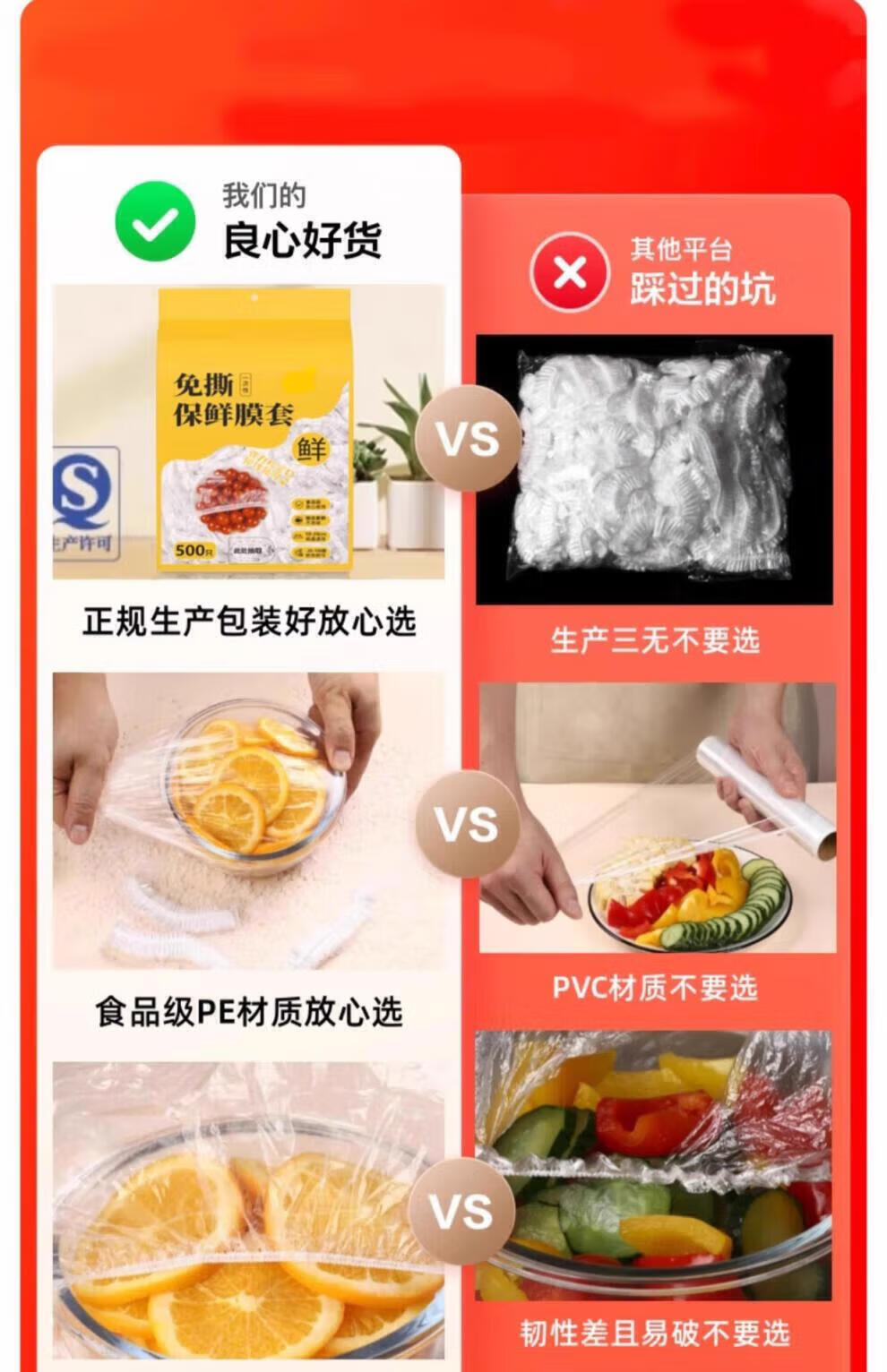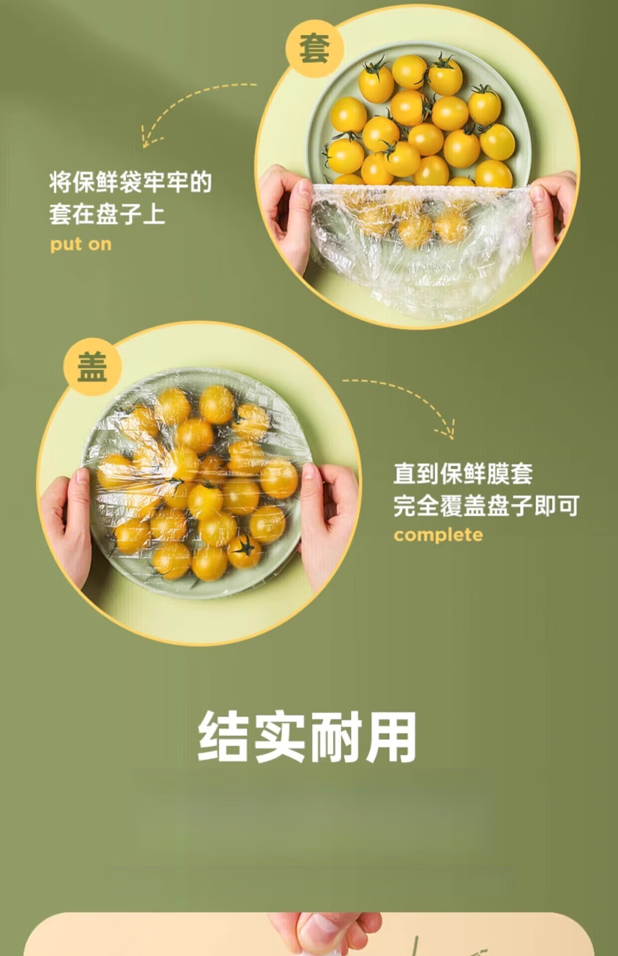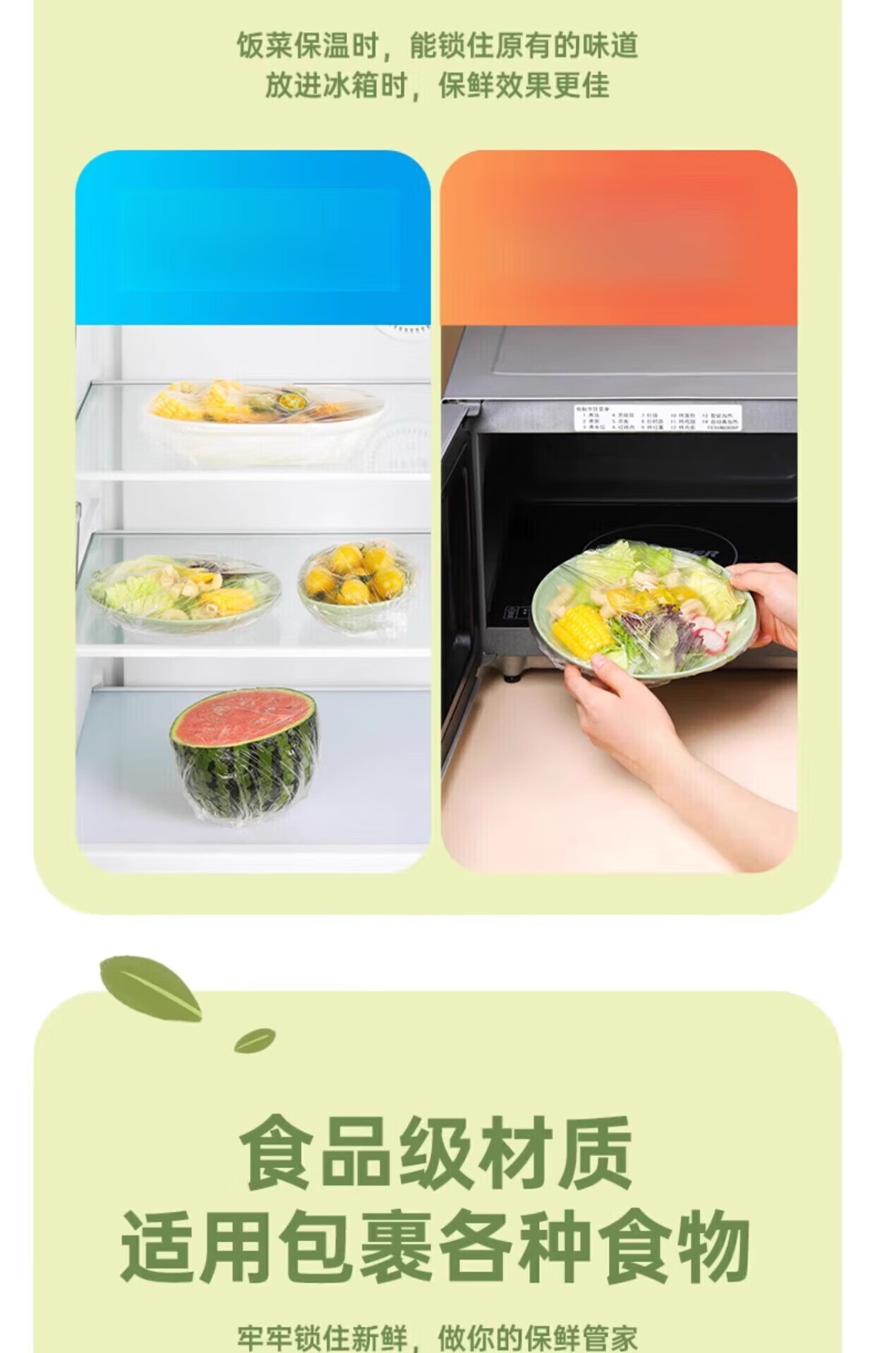 Rice harvesting wall-mounted removable disposable cling film cover household food-grade refrigerator leftover cling film cover fresh-keeping bag wall-mounted removable 1000 pieces, universal for large and small plates, free hook