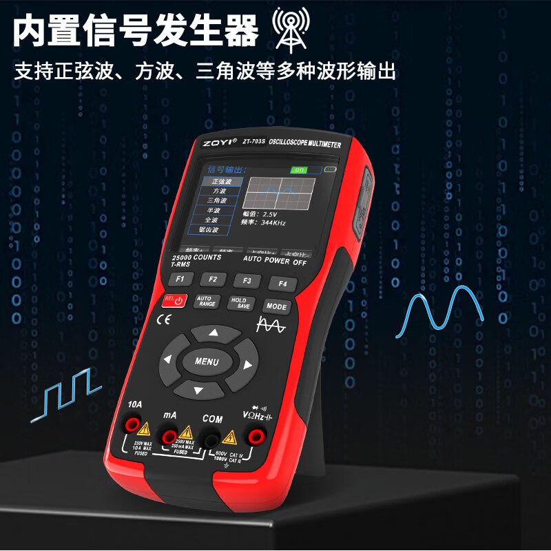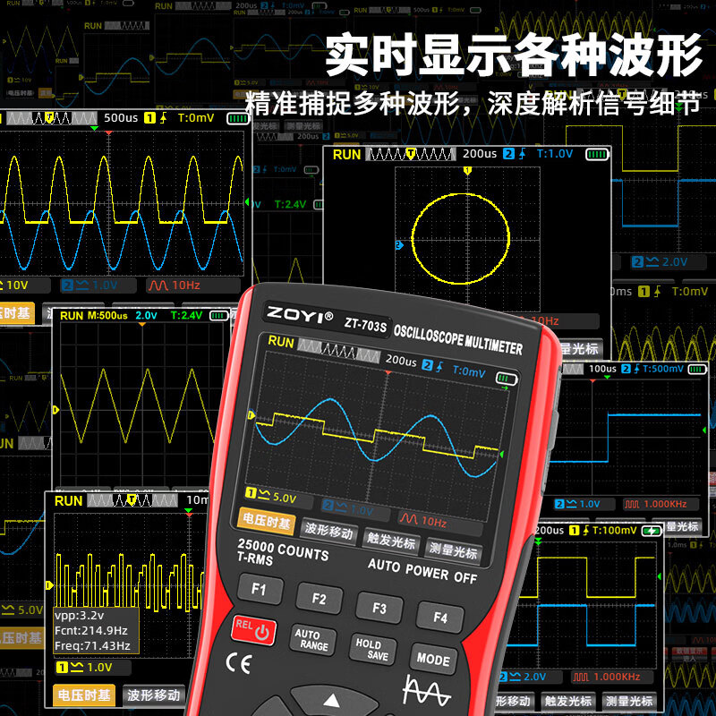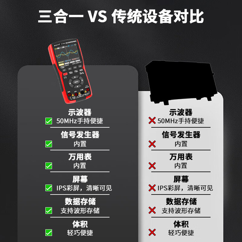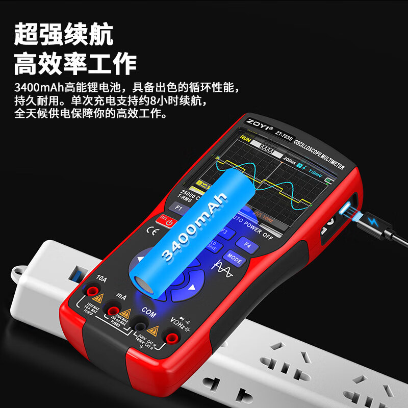 ZT-703S handheld dual-channel oscilloscope multimeter three-in-one high-precision portable oscilloscope multimeter 703S dual-channel 50Mhz standard (1 oscilloscope probe)