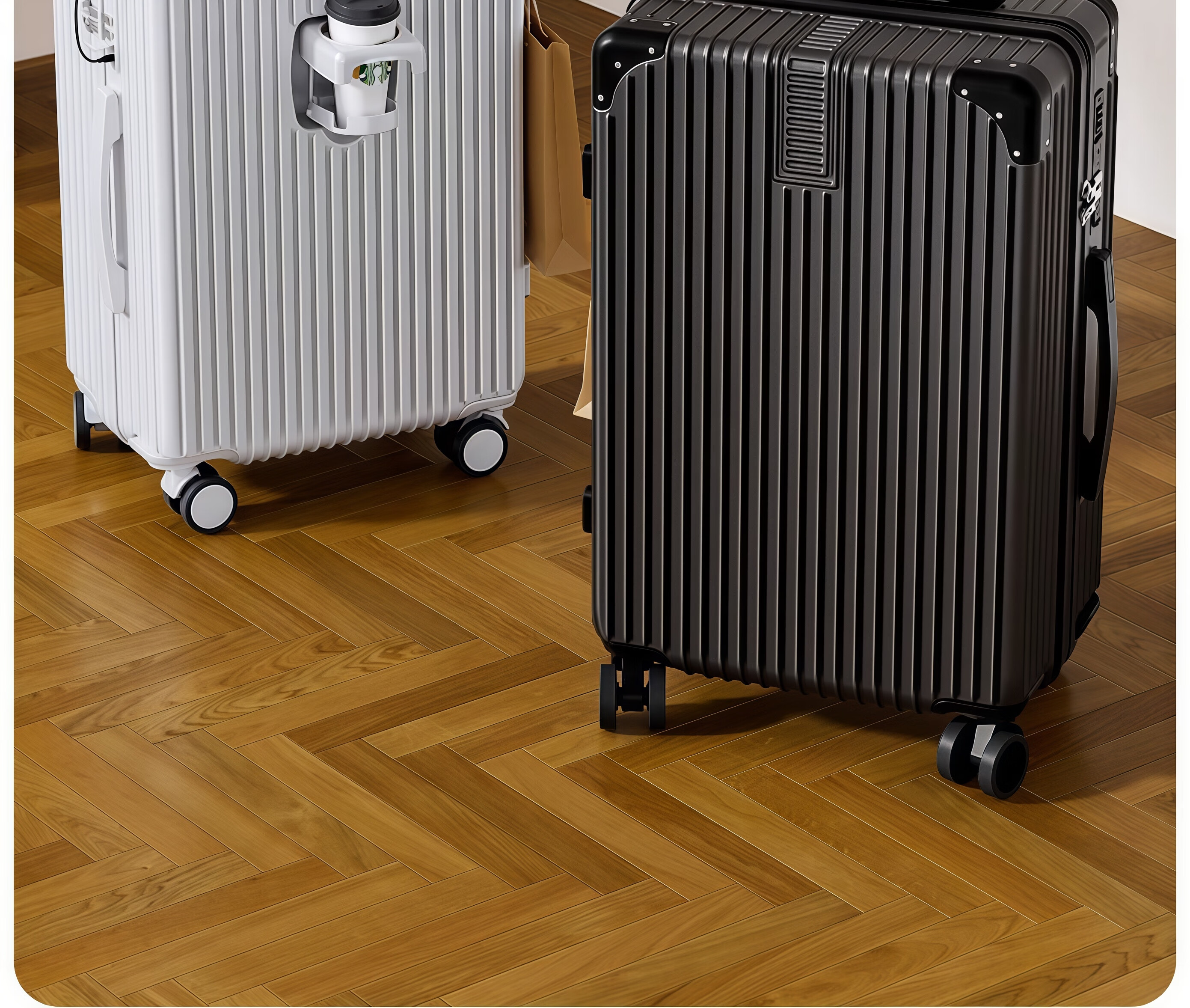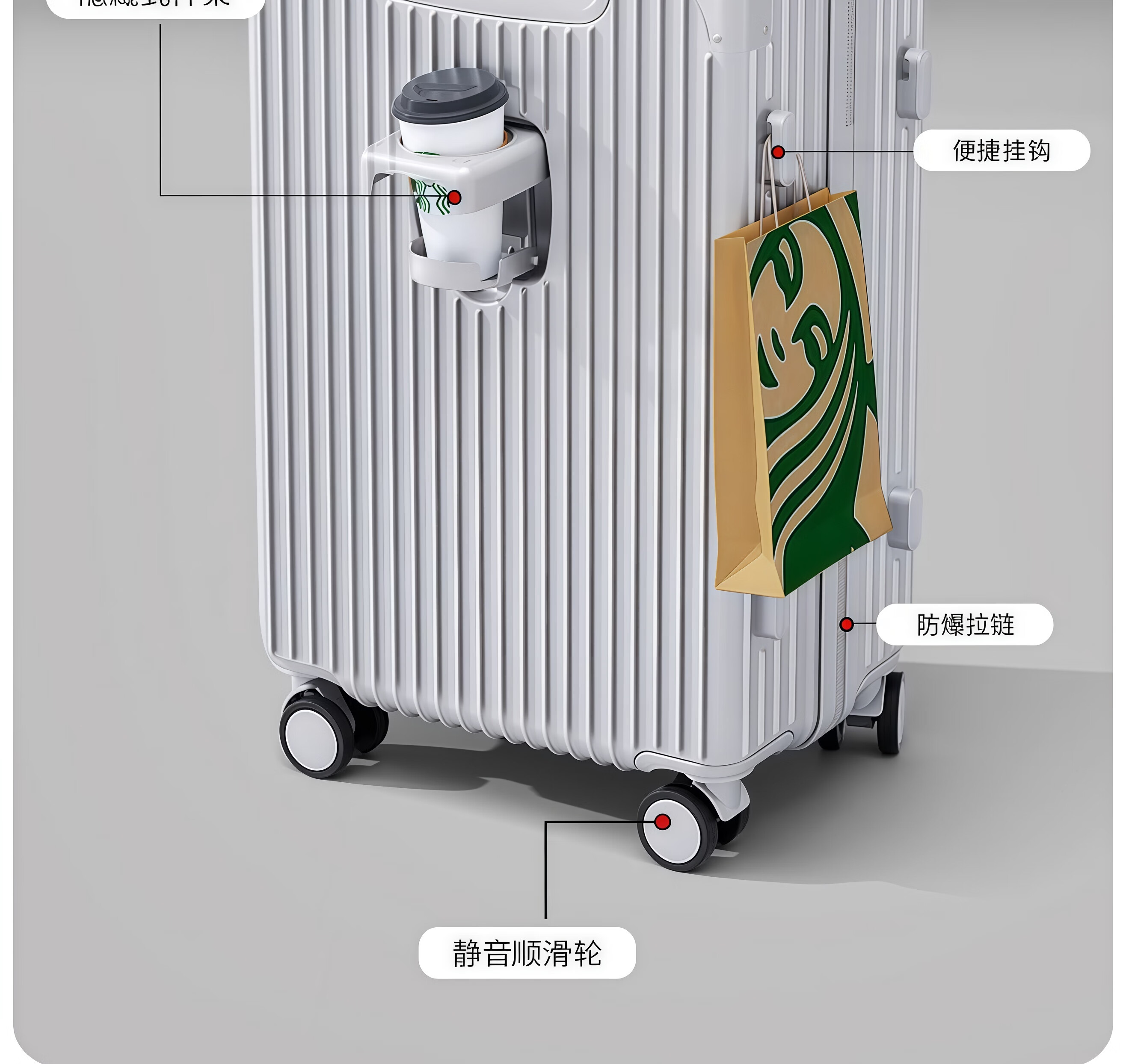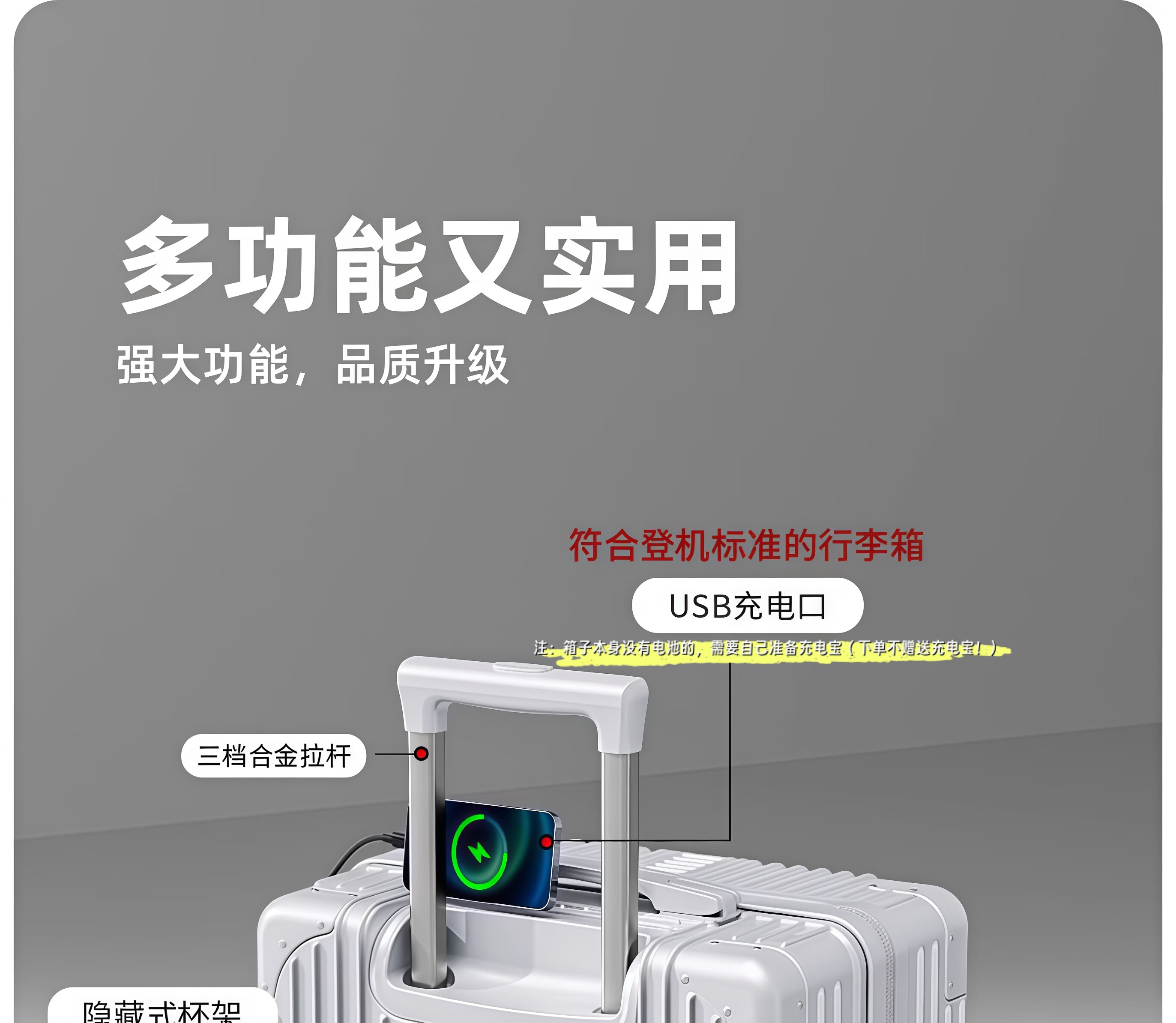 Ouyao suitcase 20-inch trolley case that can be boarded on the plane, small carry-on password box, explosion-proof zipper, large-capacity suitcase, space gray, upgraded, thickened, durable and multi-functional 20-inch folding cup holder + dual charging ports + portable hook