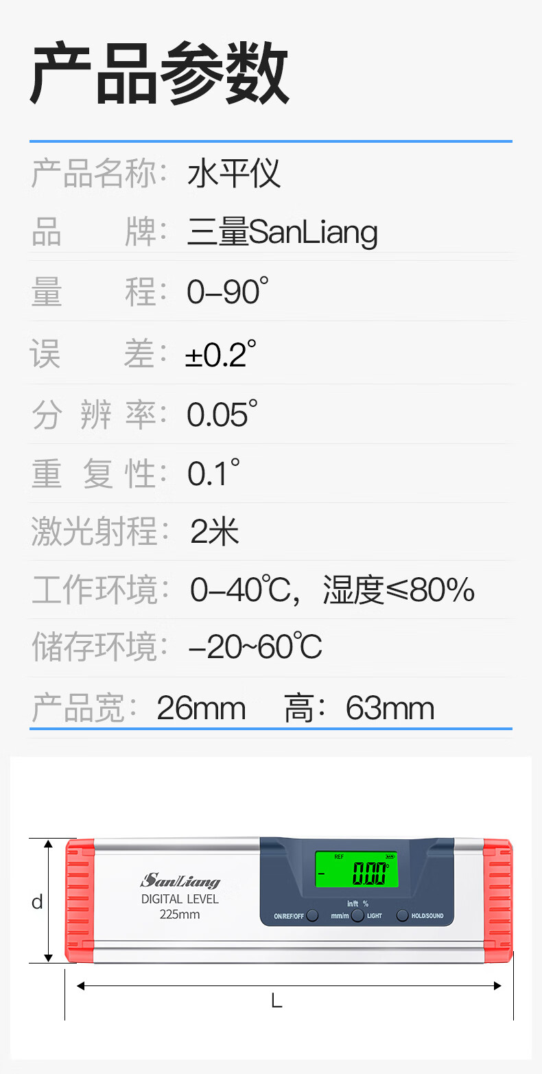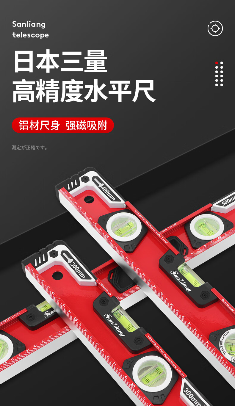 Three-quantity Japanese three-quantity high-precision electronic digital display laser level magnetic tape line measuring instrument balanced level ruler 187-211_0-225mm (magnetic)
