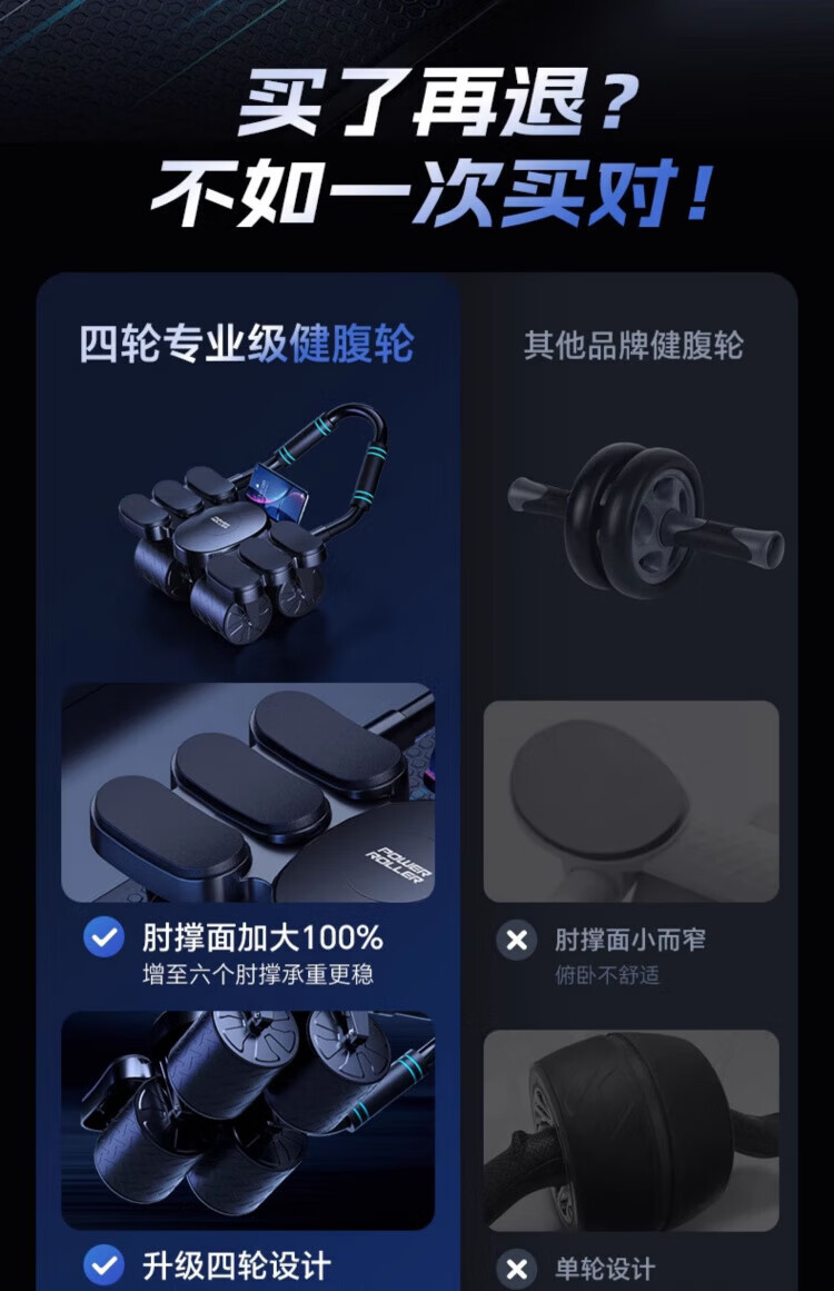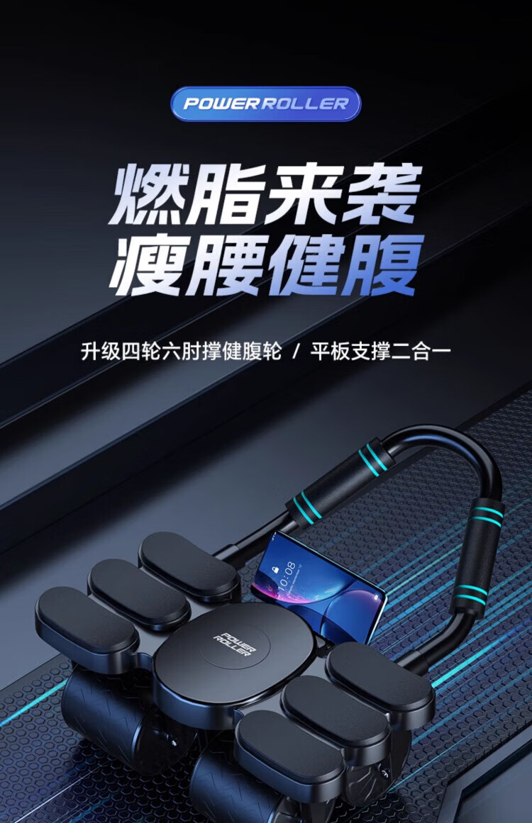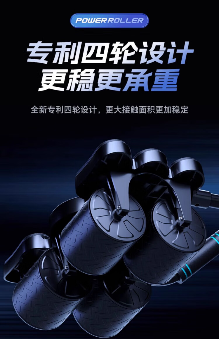DEATKN German abdominal wheel automatic rebound elbow support four-wheel abdominal muscle slimming artifact men's fitness equipment home four-wheel 6 elbow support_black strong rebound/mobile phone smart interconnection/free kneeling mat professional grade comfortable and silent