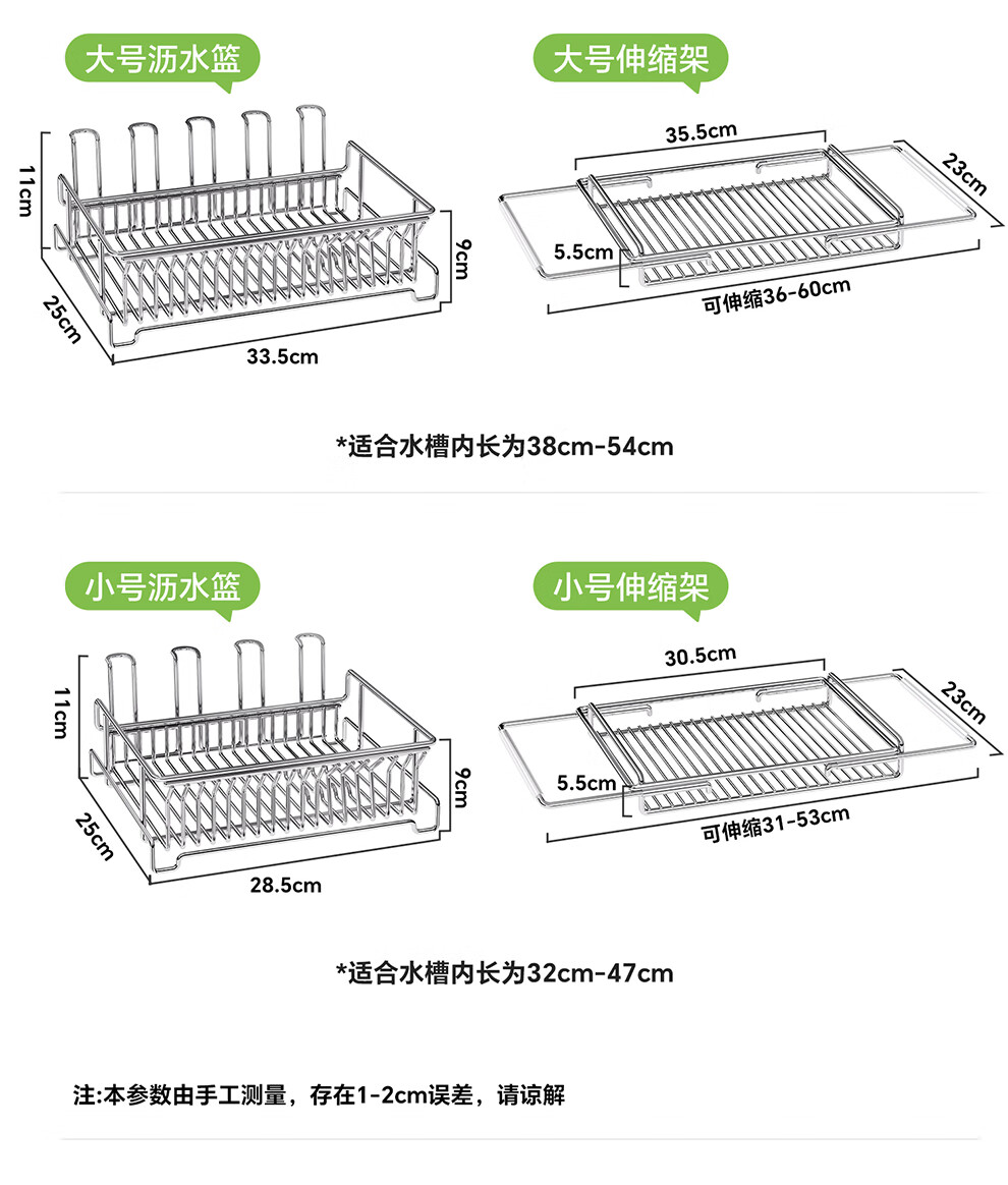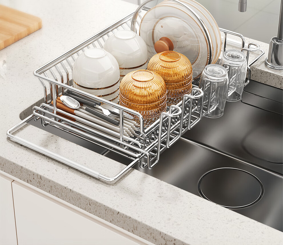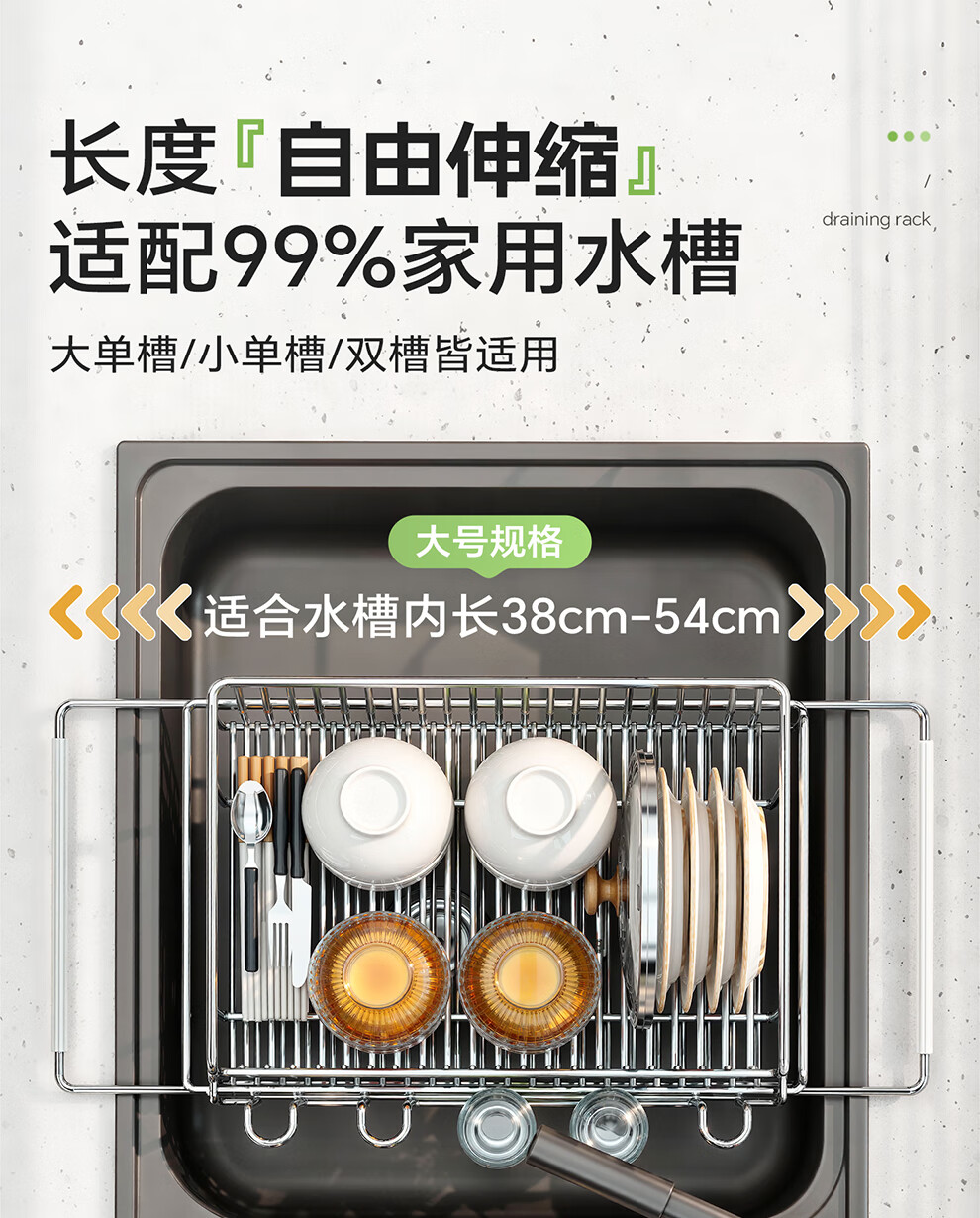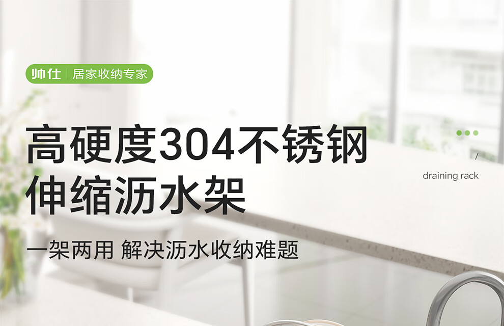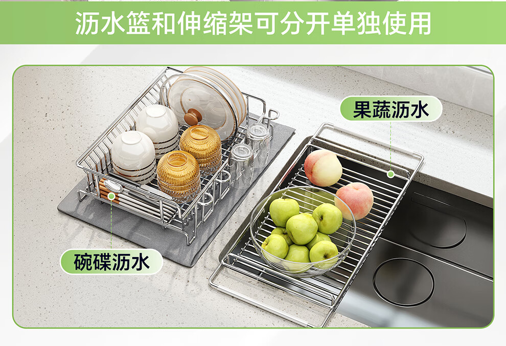 Shuaishi kitchen sink rack 304 stainless steel drain bowl rack retractable bowl basket sink dish storage rack telescopic large 304 drain basket-split dual-use