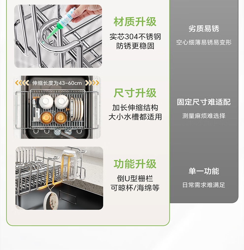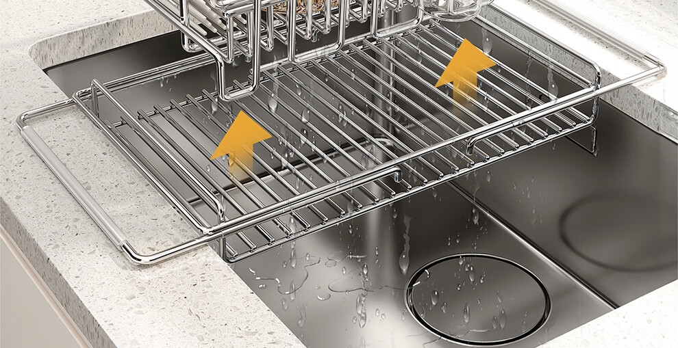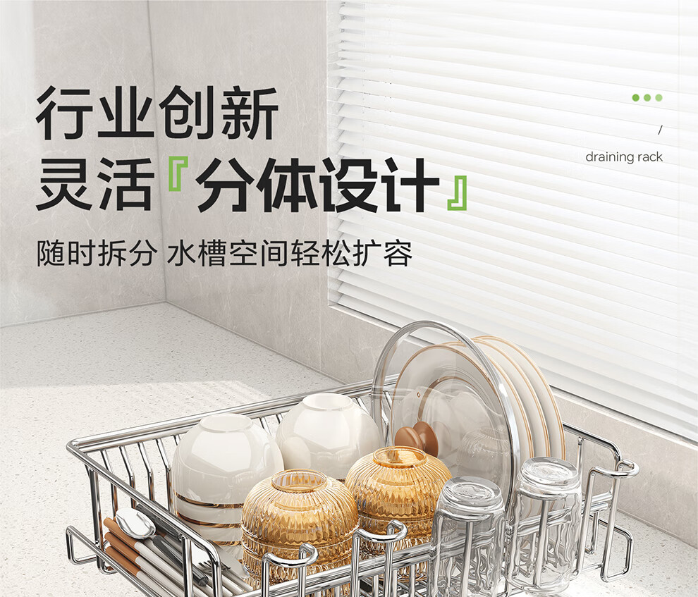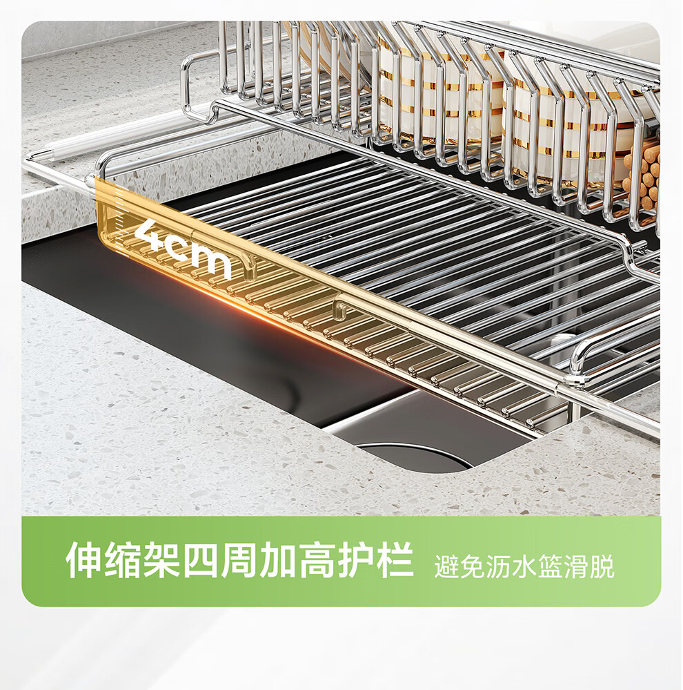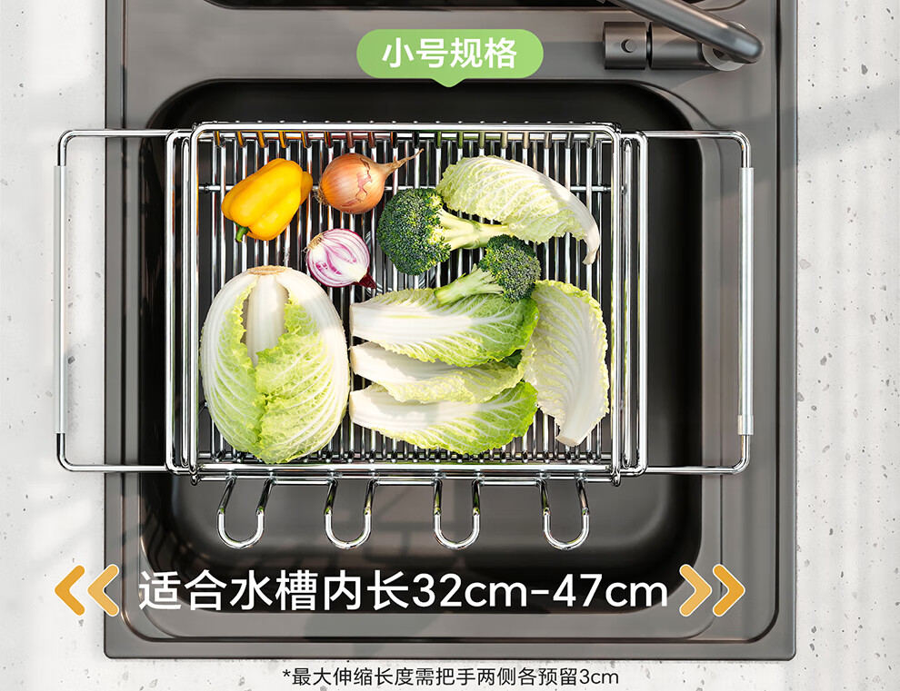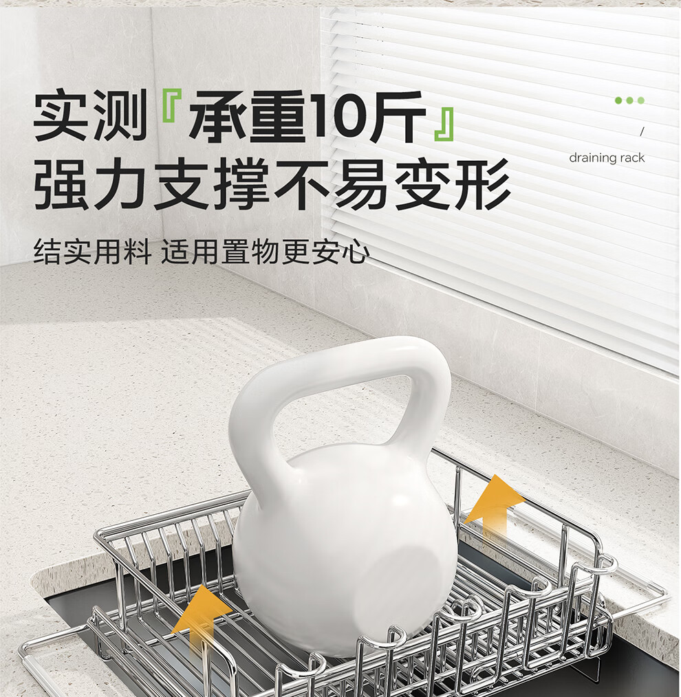 Shuaishi kitchen sink rack 304 stainless steel drain bowl rack retractable bowl basket sink dish storage rack telescopic large 304 drain basket-split dual-use