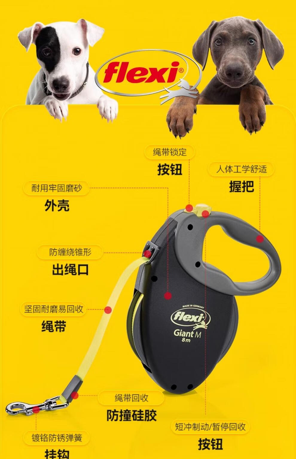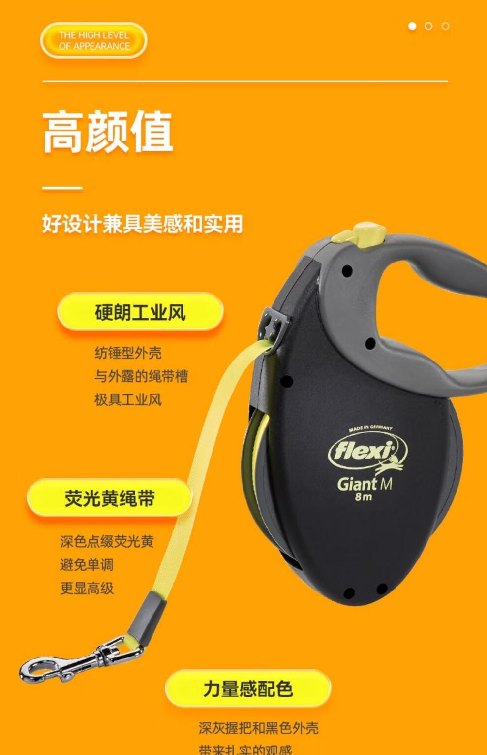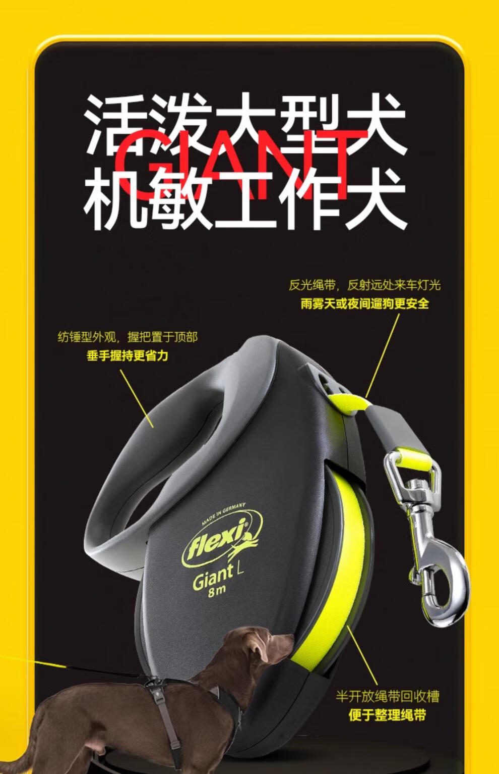 FLEXI Leash Dog Walking Leash Automatically Retractable for Medium and Large Dogs Black_Fluorescent Yellow L_10 Meters_(Suitable for Large Dogs within 50KG
