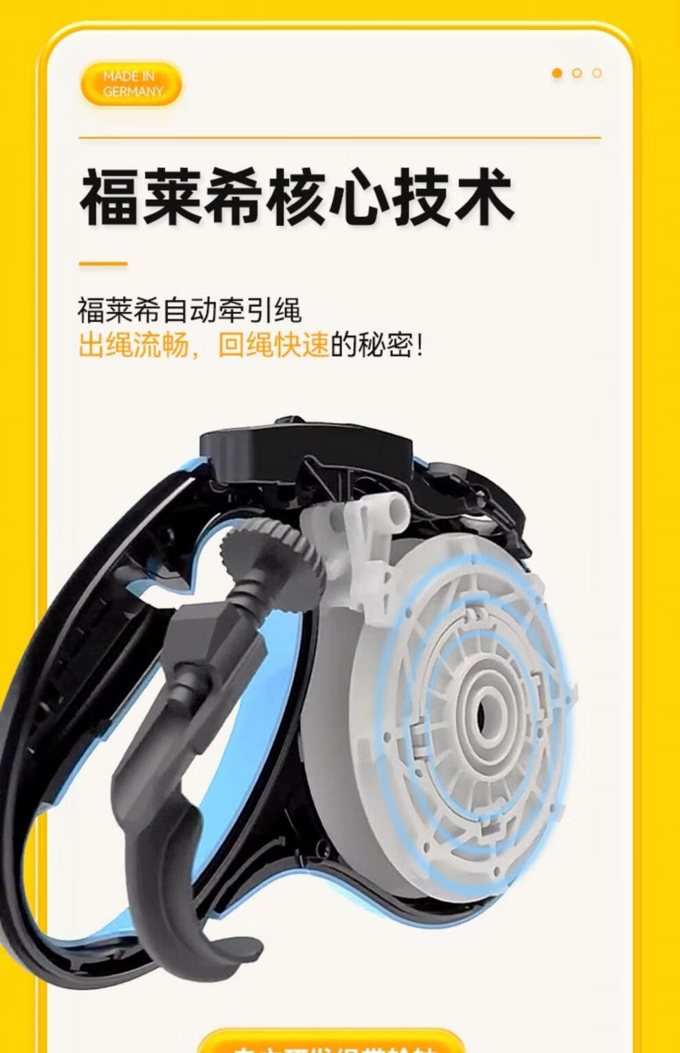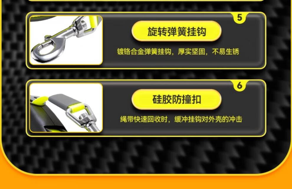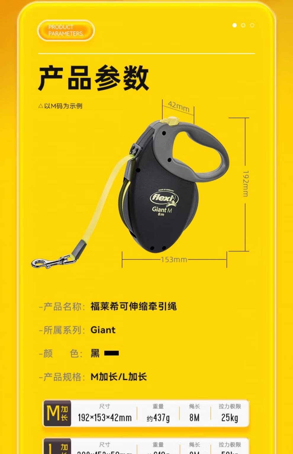 FLEXI Leash Dog Walking Leash Automatically Retractable for Medium and Large Dogs Black_Fluorescent Yellow L_10 Meters_(Suitable for Large Dogs within 50KG