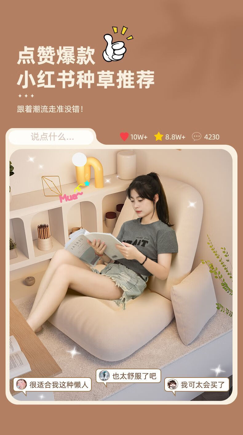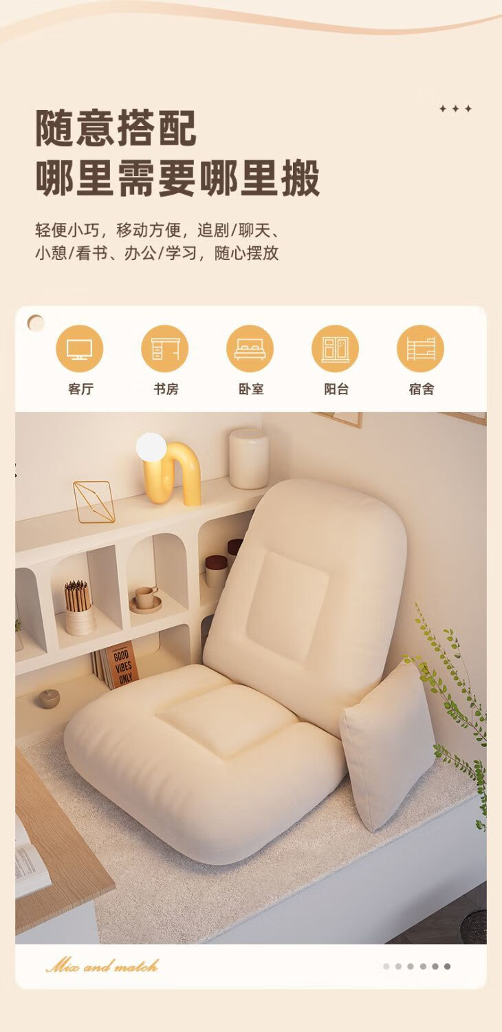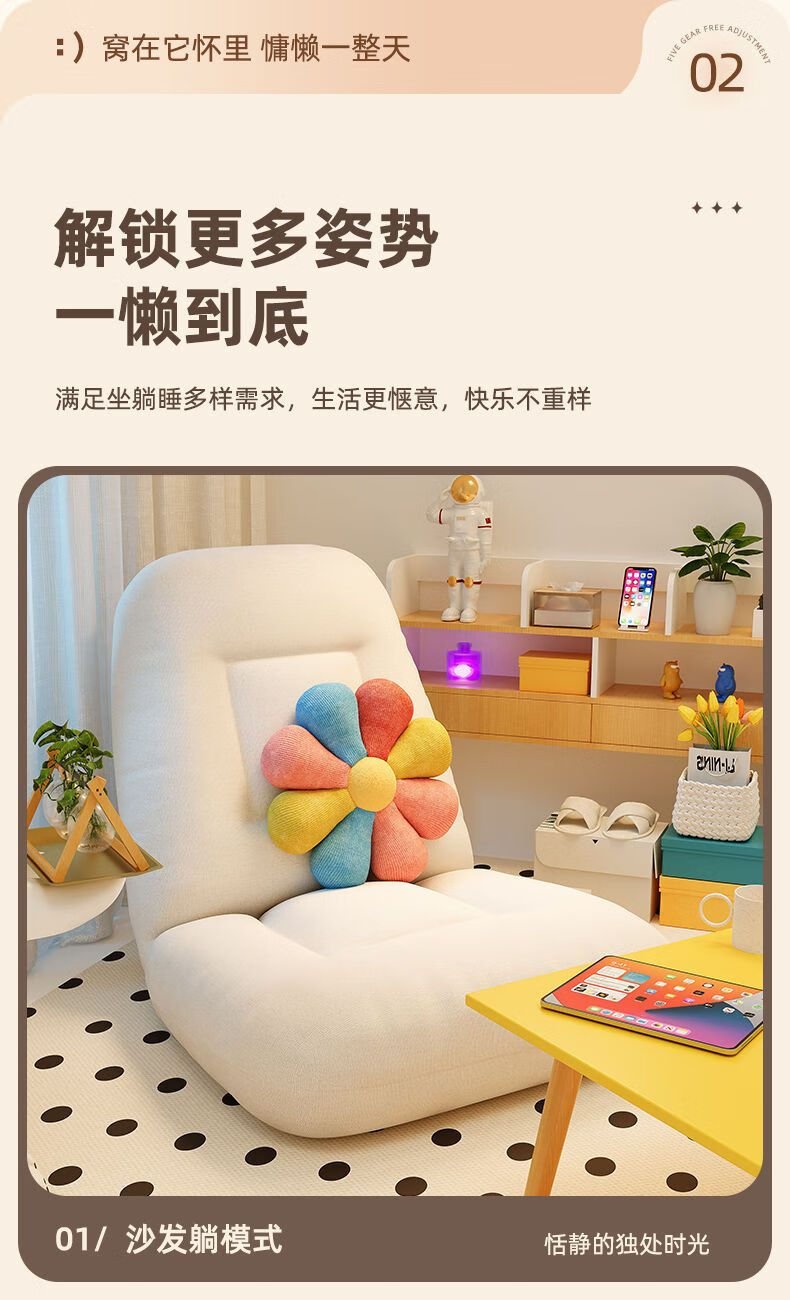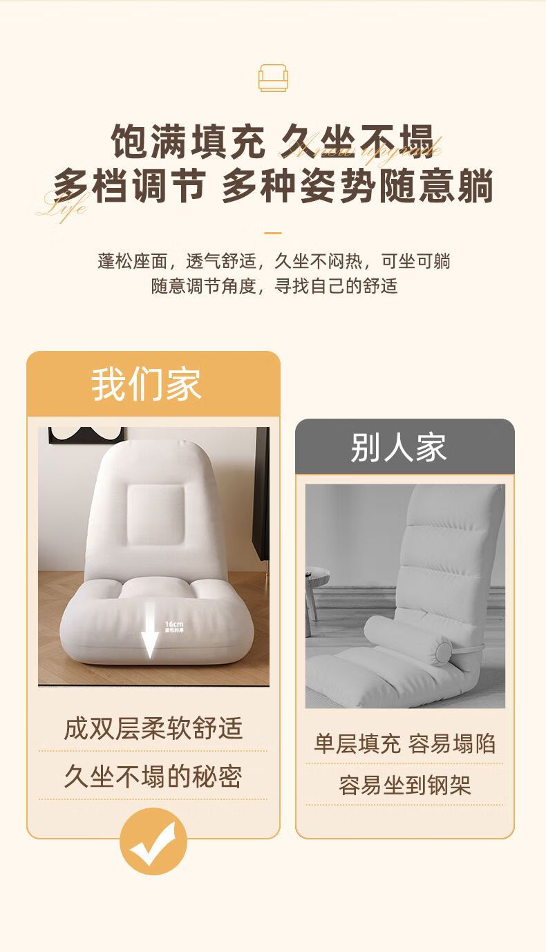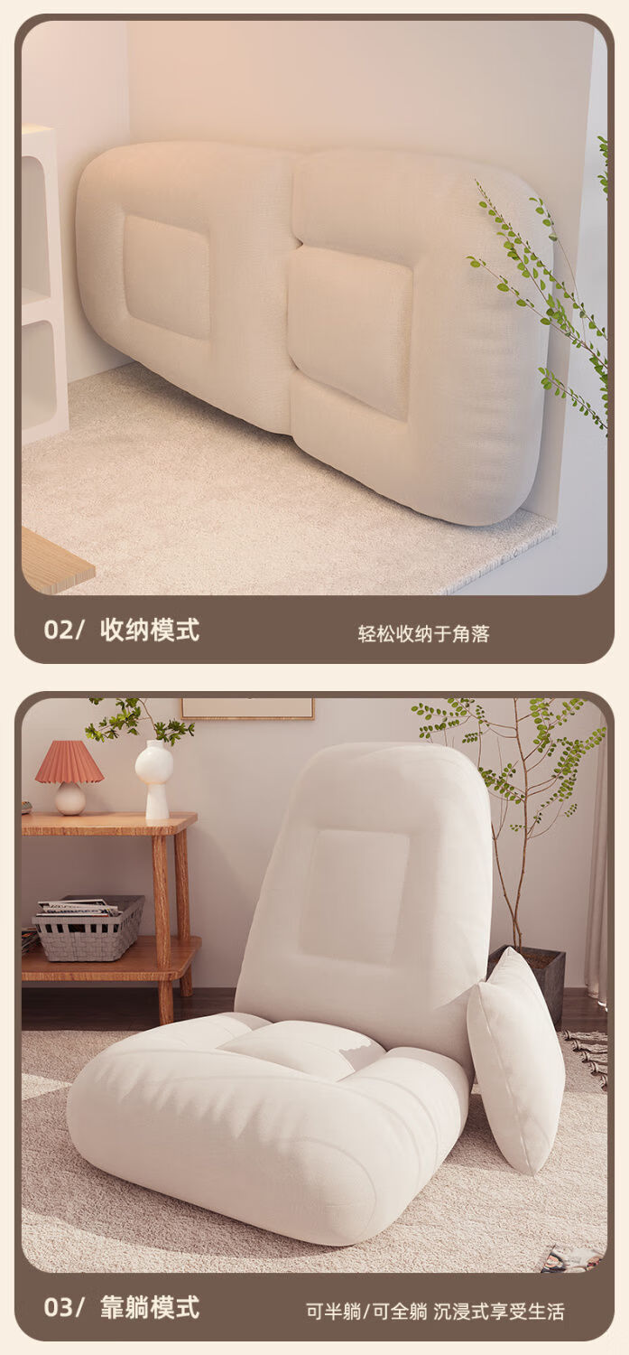 Yusenyi Lazy Sofa Backrest Tatami Bay Window Single Leisure Seat Legless Bedroom Folding Deck Chair Bed Back Chair Tatami + Free Pillow Victory Gray