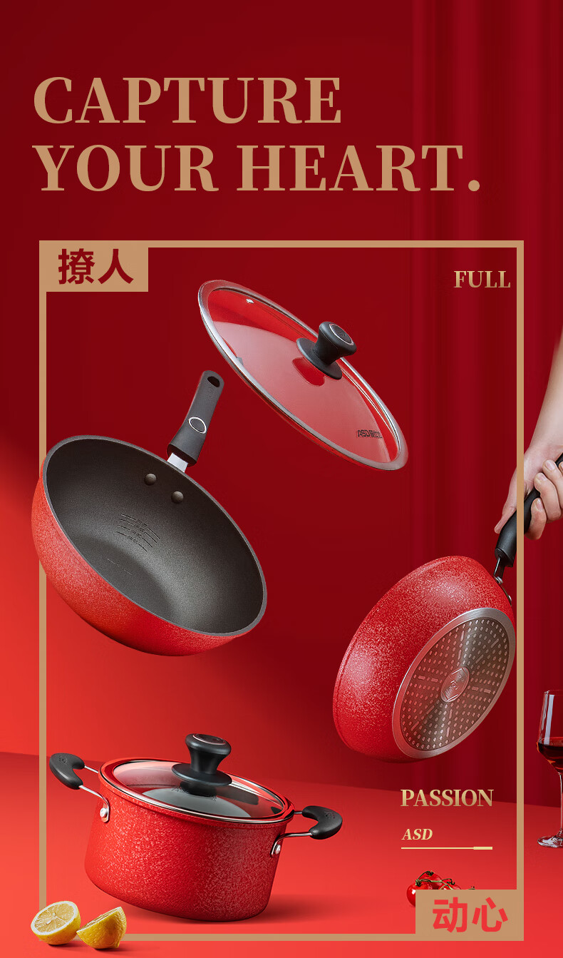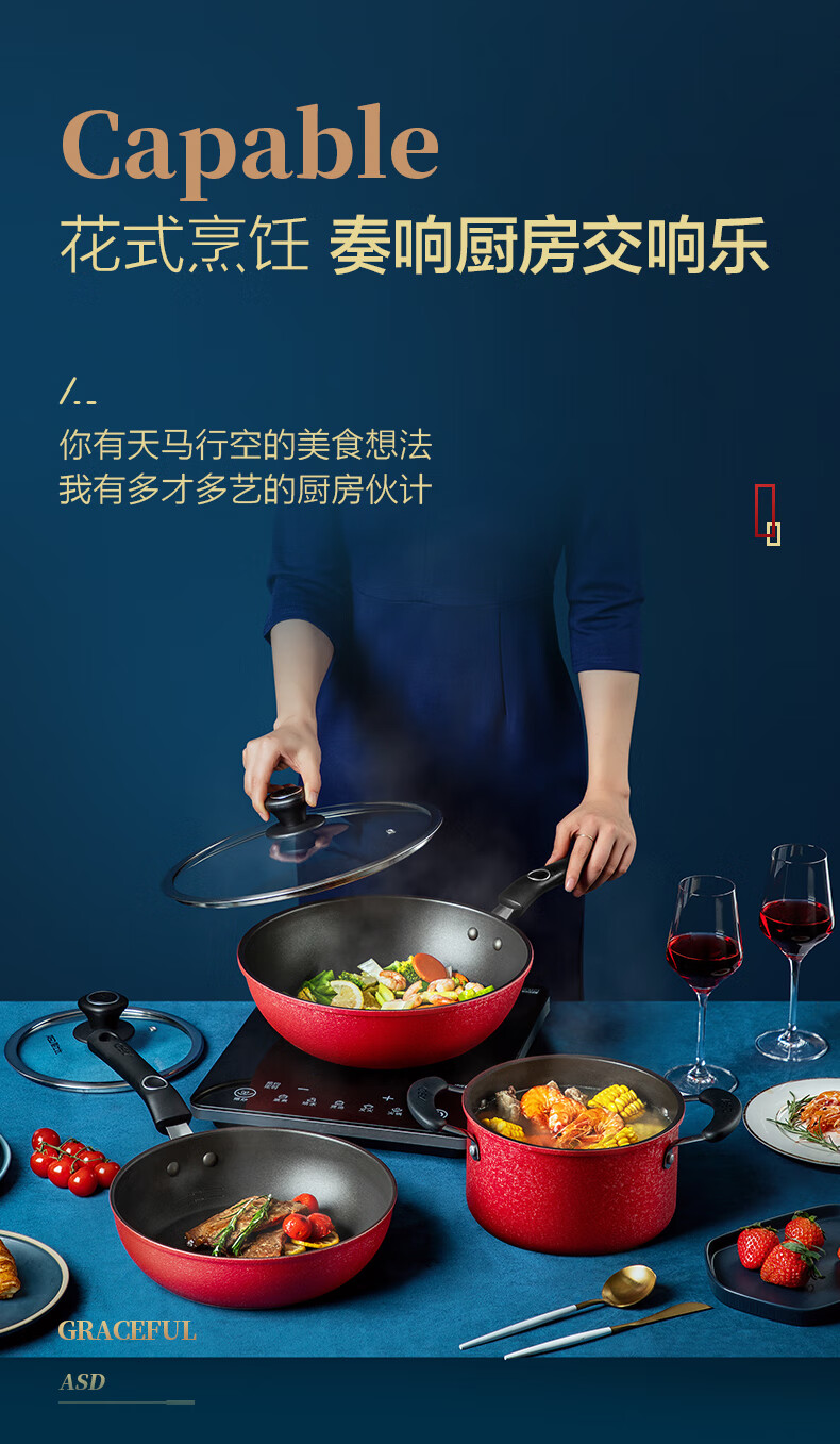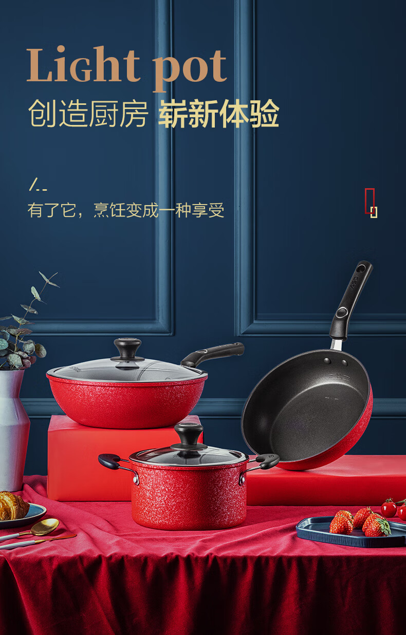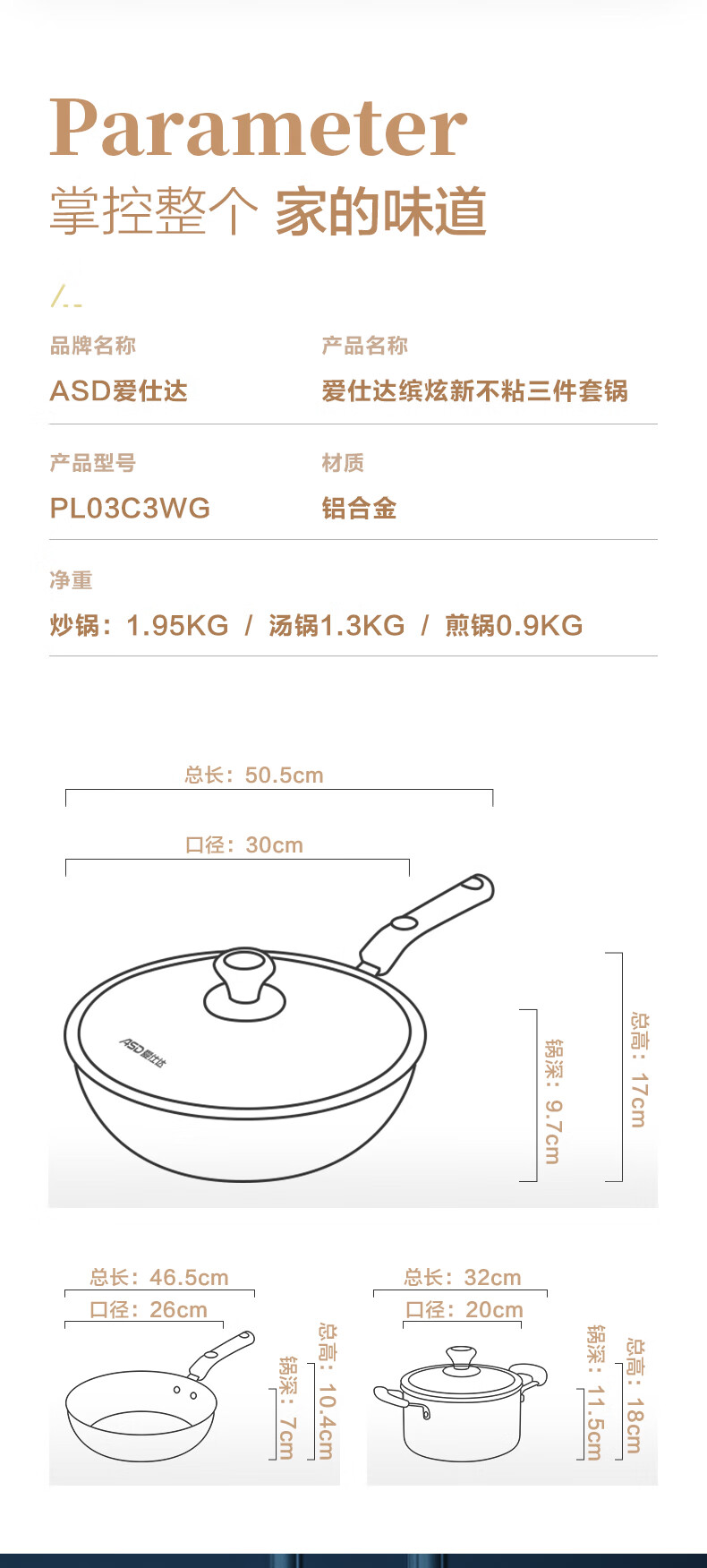 Aistar 2025 pot household wok frying pan soup pot three-piece set non-stick kitchen set 2025 non-stick pot 3-piece set