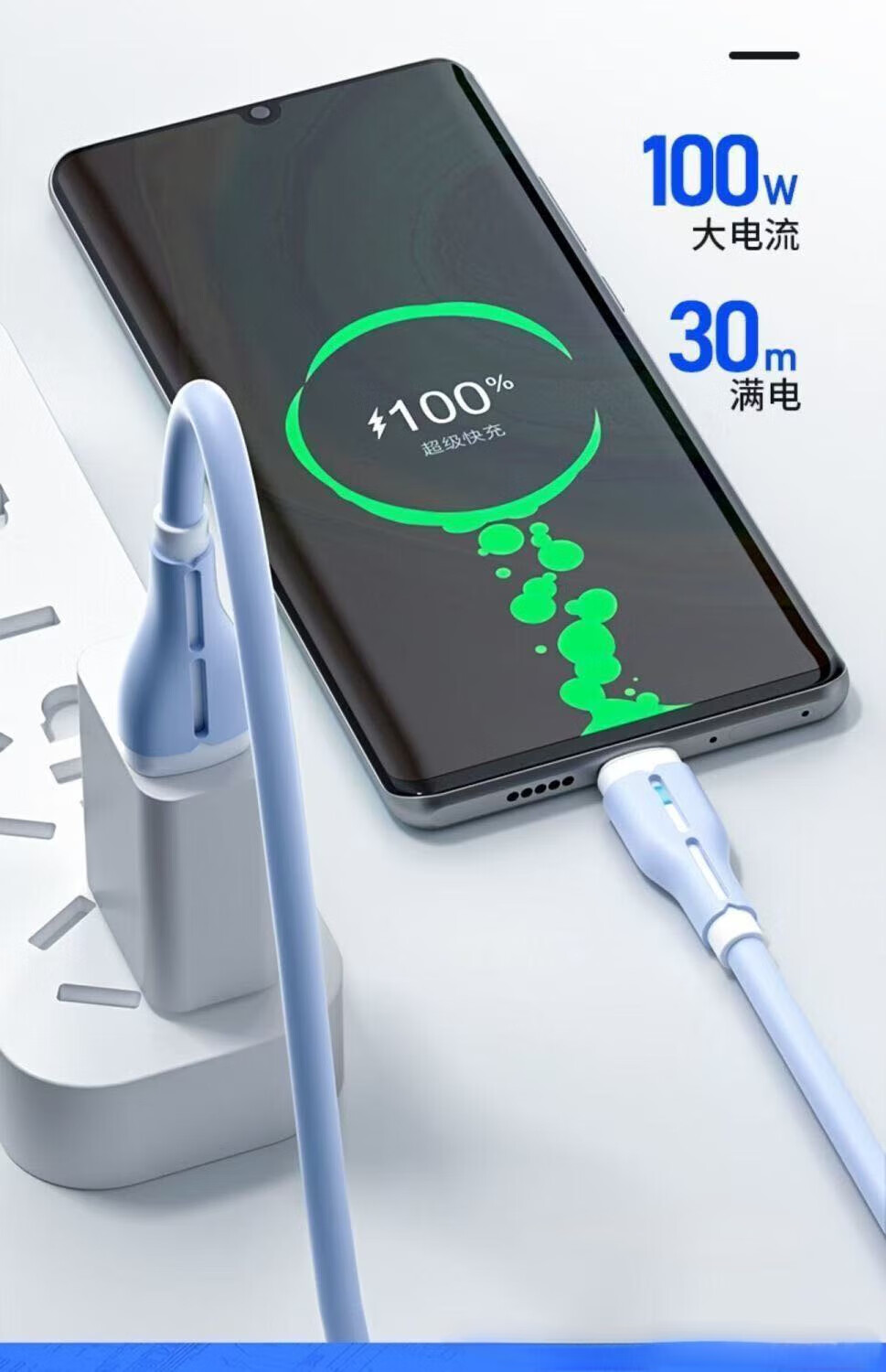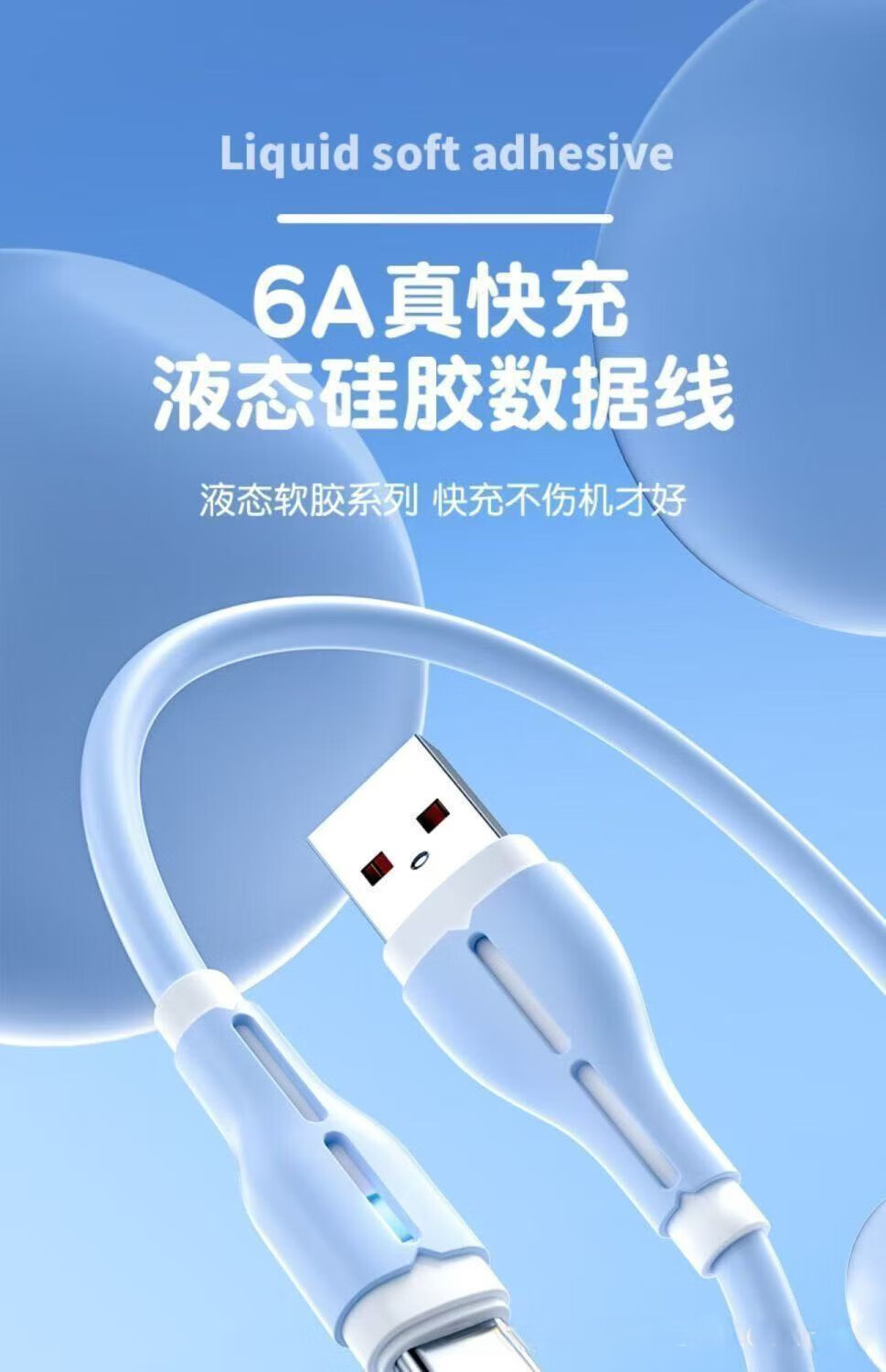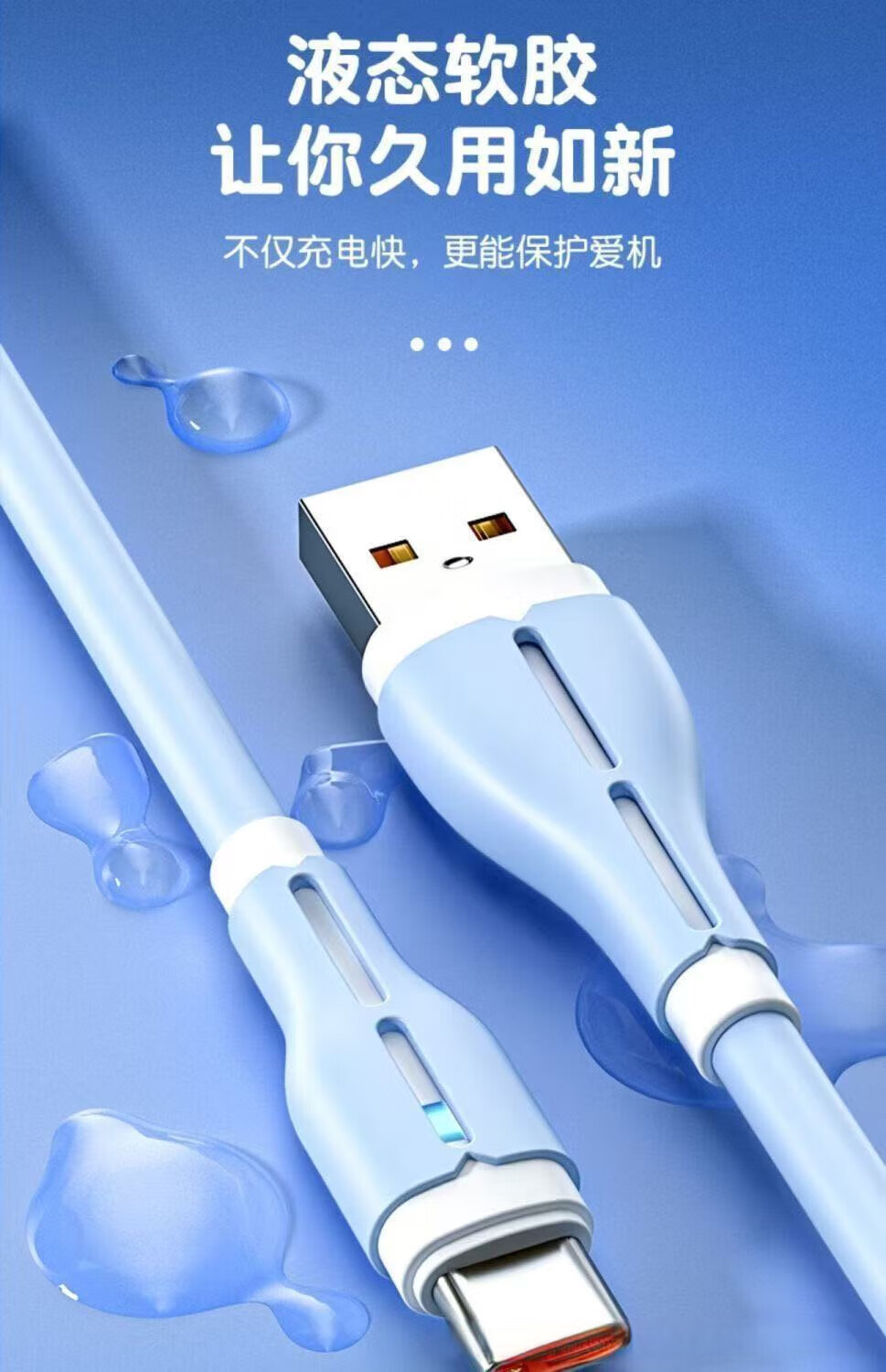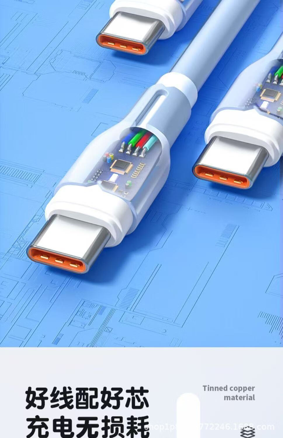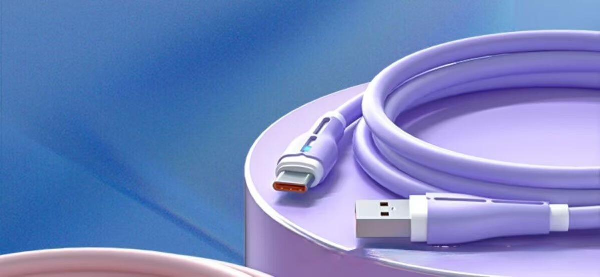 120W fast charging silicone data cable suitable for Huawei Xiaomi Honor mobile phone car 6A indicator charging cable TYPE-C interface blue fast charging 2 meters