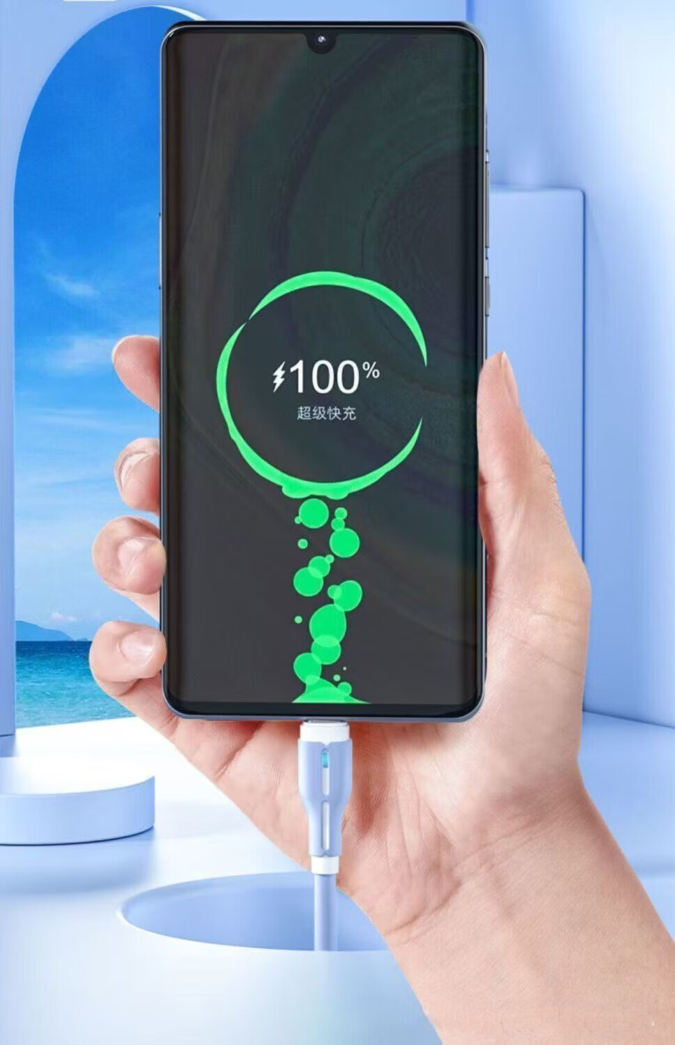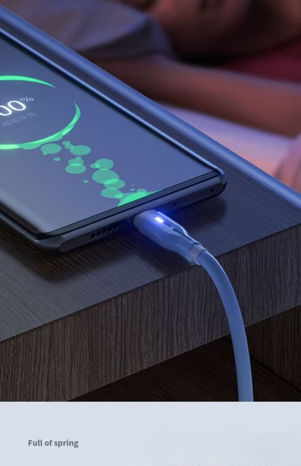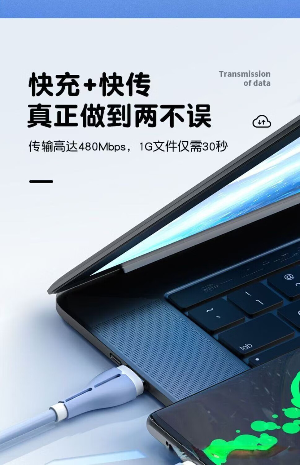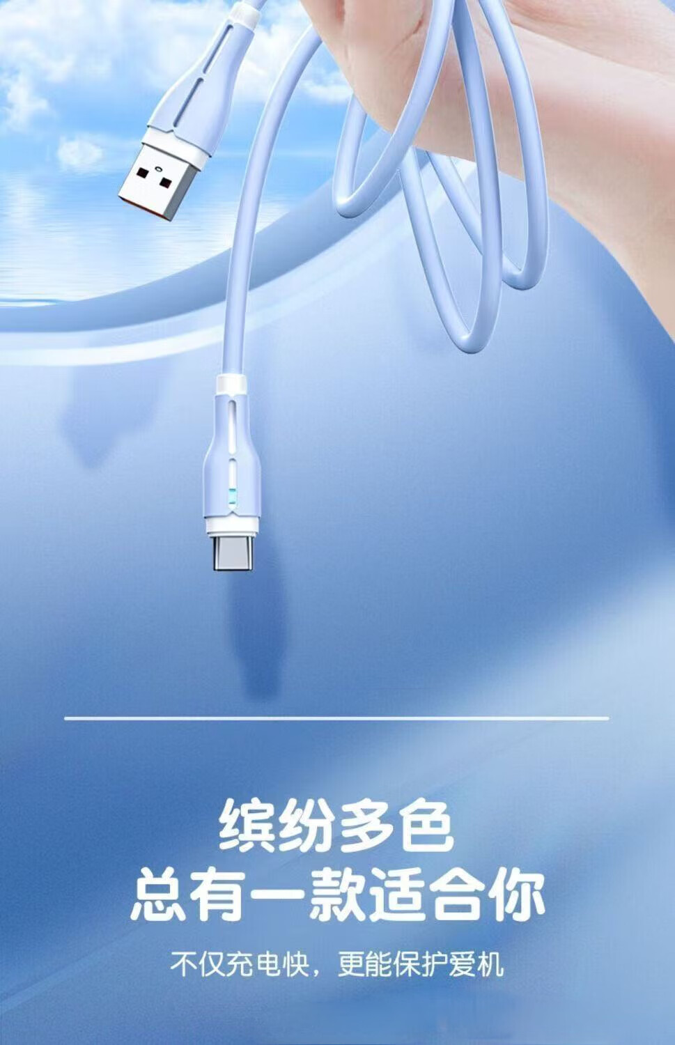 120W fast charging silicone data cable suitable for Huawei Xiaomi Honor mobile phone car 6A indicator charging cable TYPE-C interface blue fast charging 2 meters