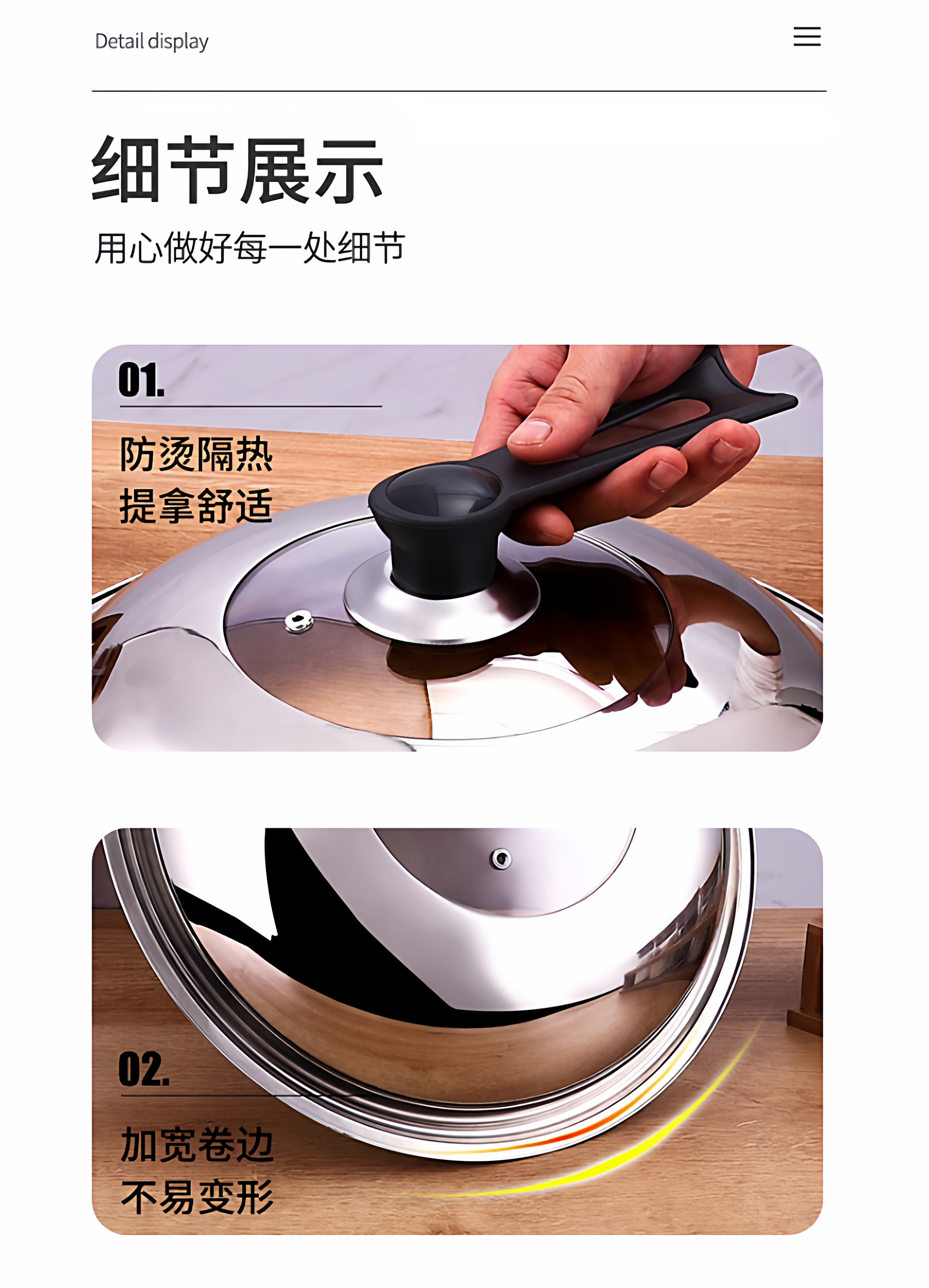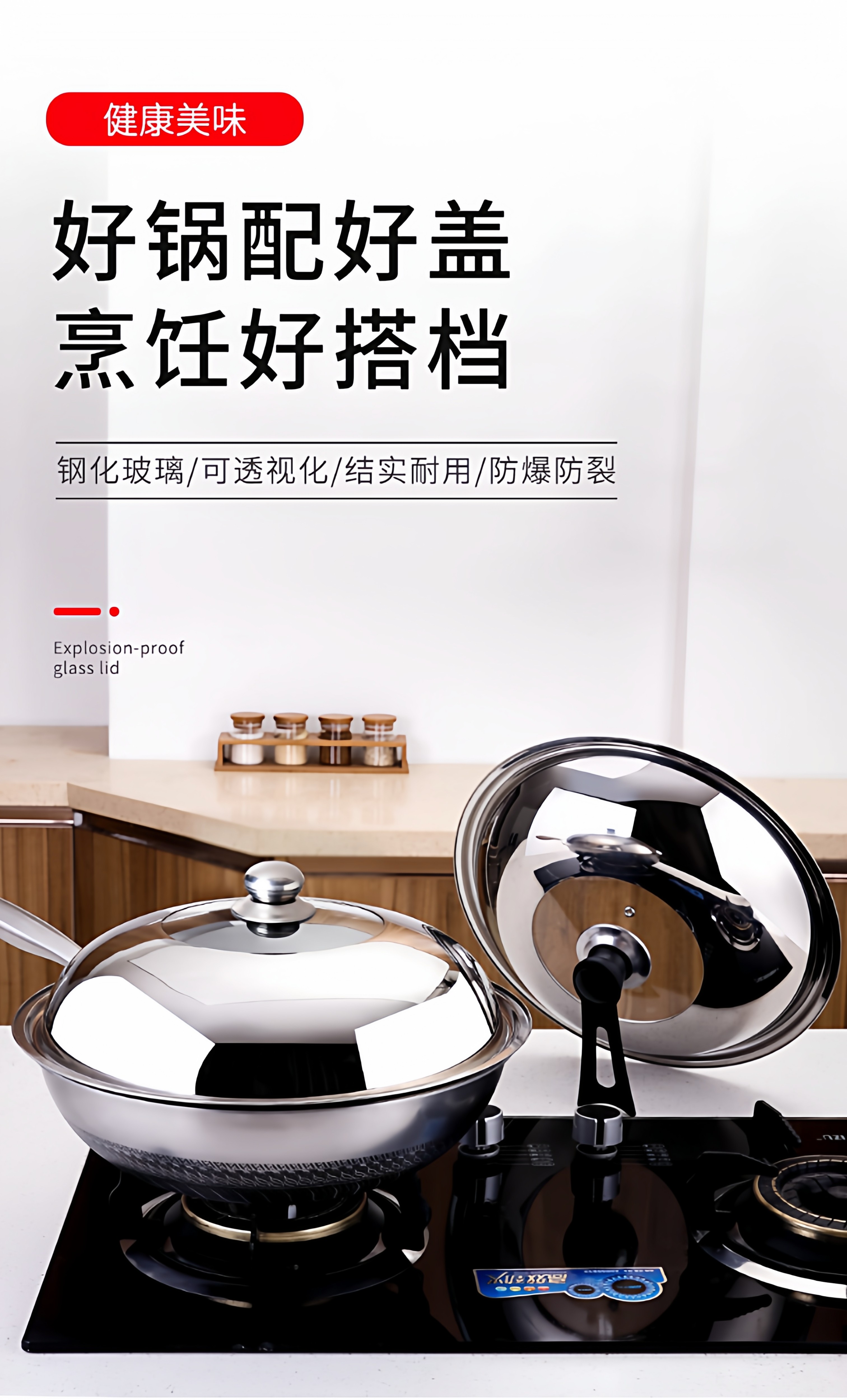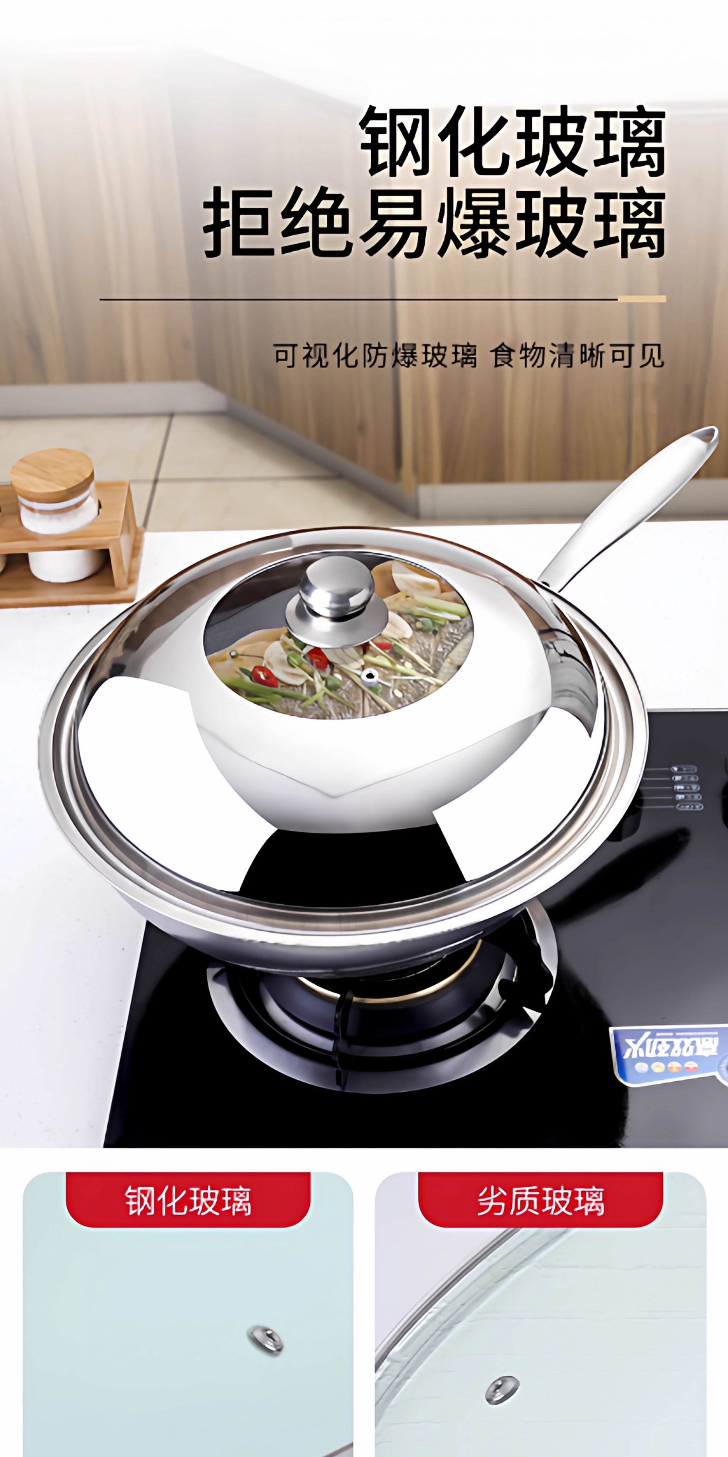 Stainless steel pot lid household cooking pot lid 32cm34cm frying pot lid universal transparent pot lid glass lid can be vertical cap can be visually thickened 32 suitable for pots with diameters of 32-33.5