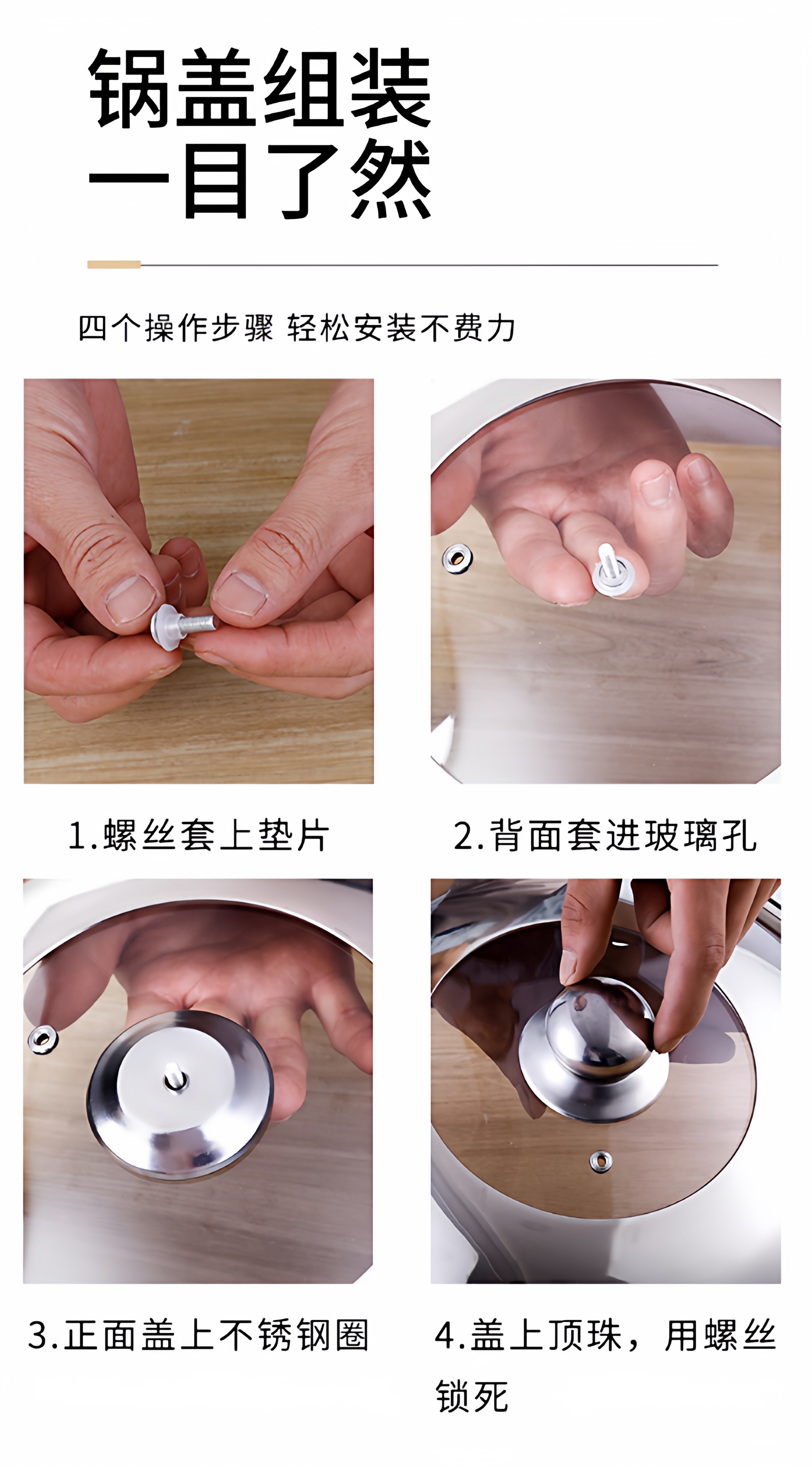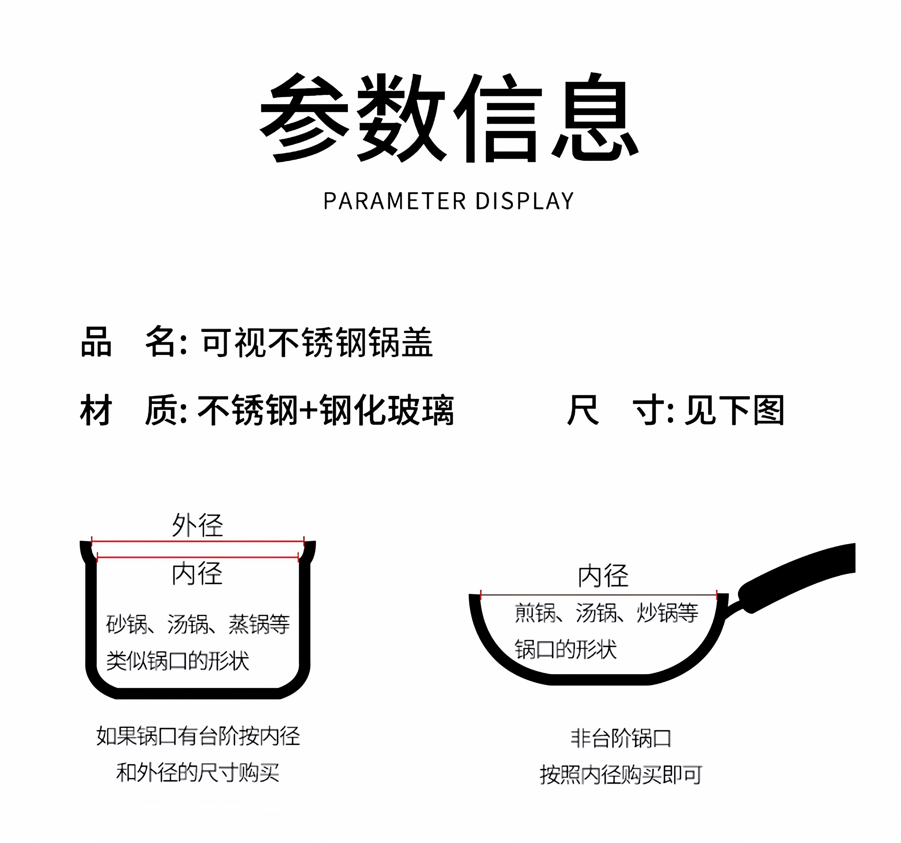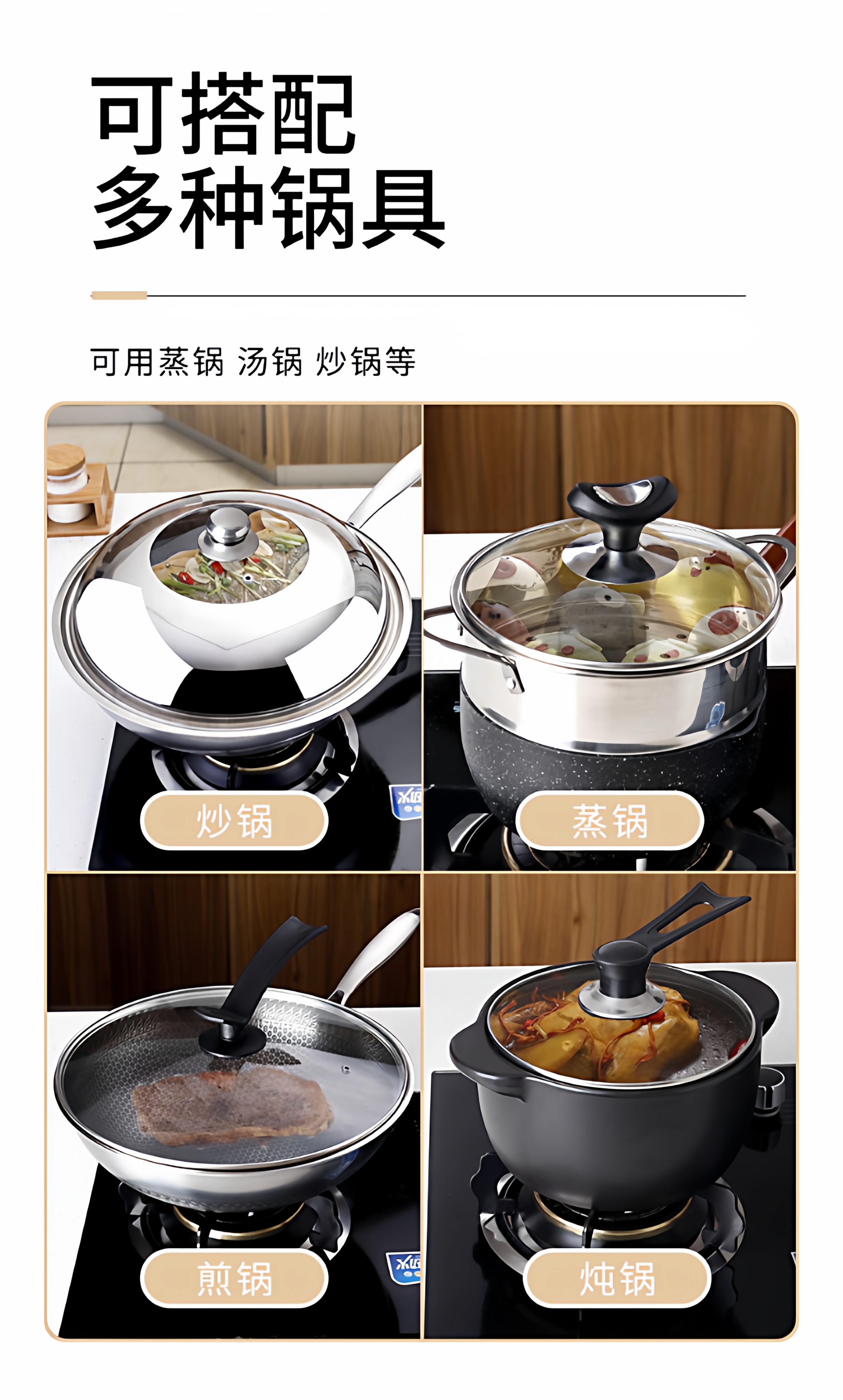 Stainless steel pot lid household cooking pot lid 32cm34cm frying pot lid universal transparent pot lid glass lid can be vertical cap can be visually thickened 32 suitable for pots with diameters of 32-33.5