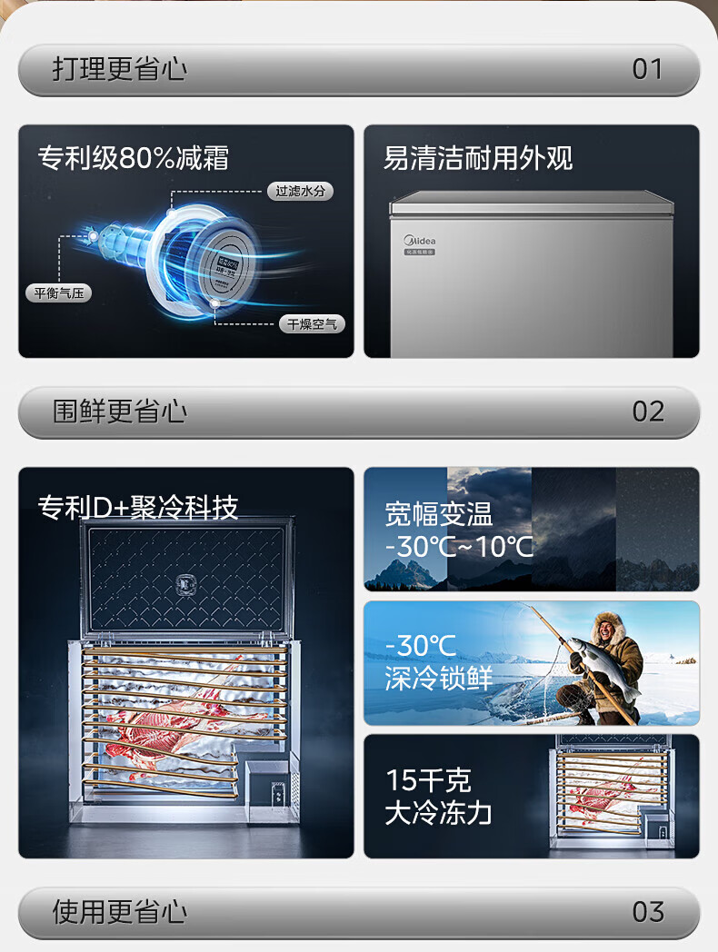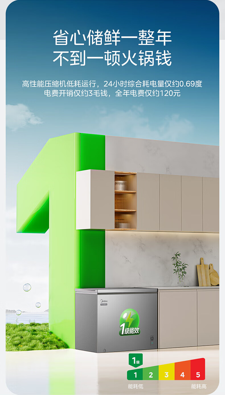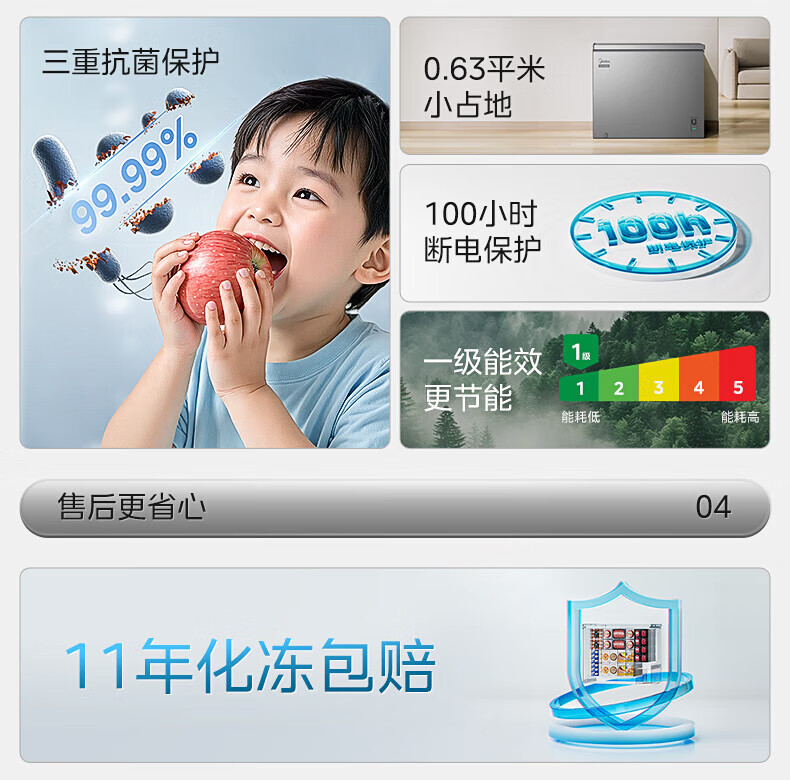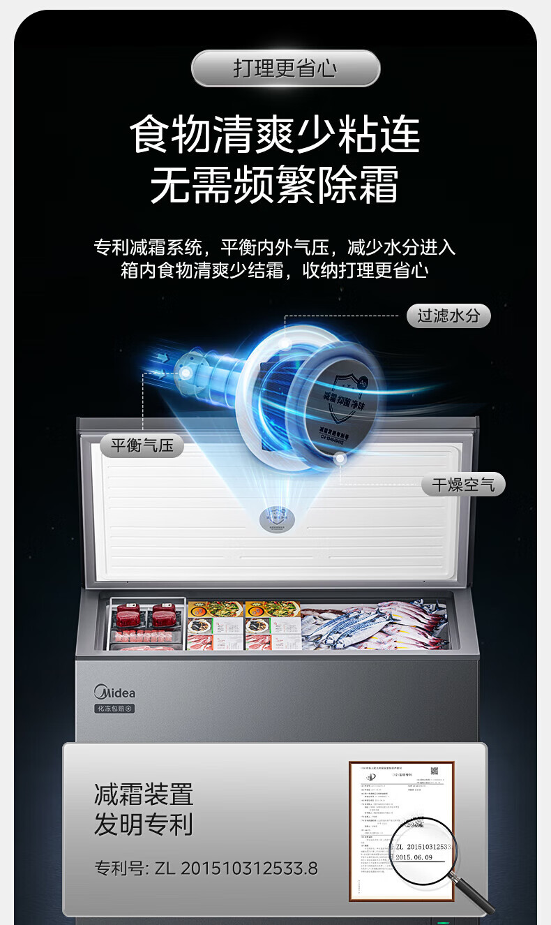 Midea Freezer 301 liter frost-reducing first-class energy efficiency dual-purpose large-capacity refrigeration and freezing single-temperature conversion fresh-keeping cabinet small freezer energy-saving top-opening horizontal refrigerator 360 liters high-end version PCM steel plate liner 360KM