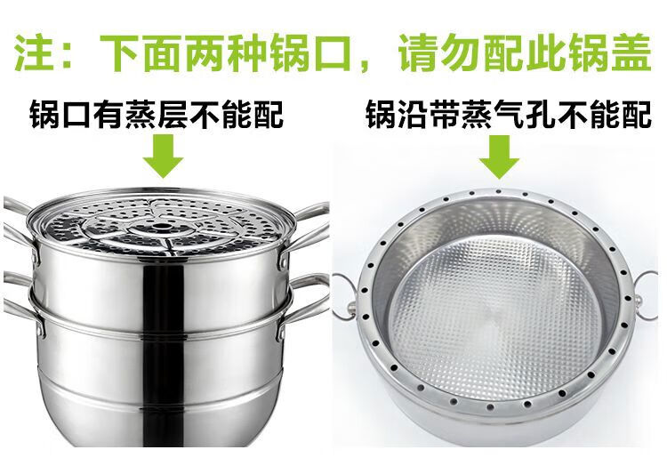 Universal Supor wok flat bottom non-stick steamer stainless steel pot lid 22 24 26 28 30 32 34cm specifications 22cm
