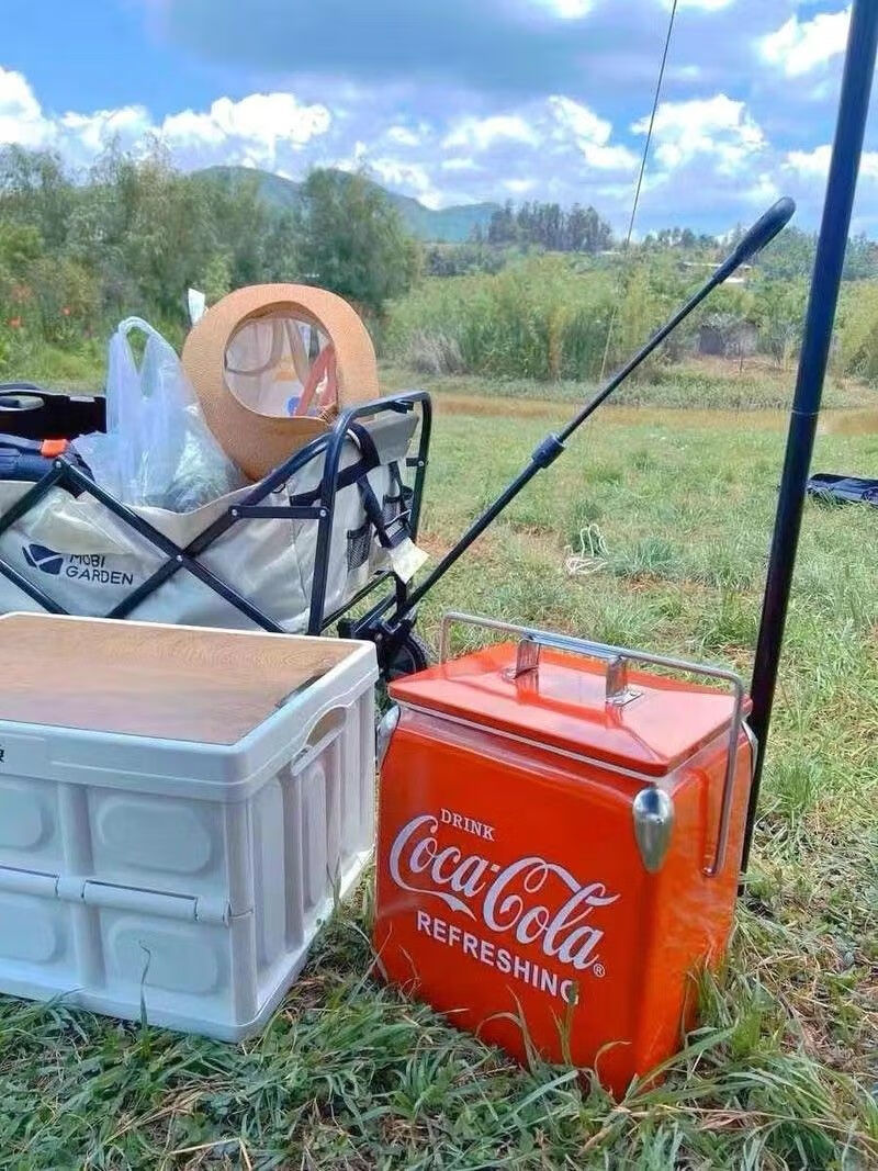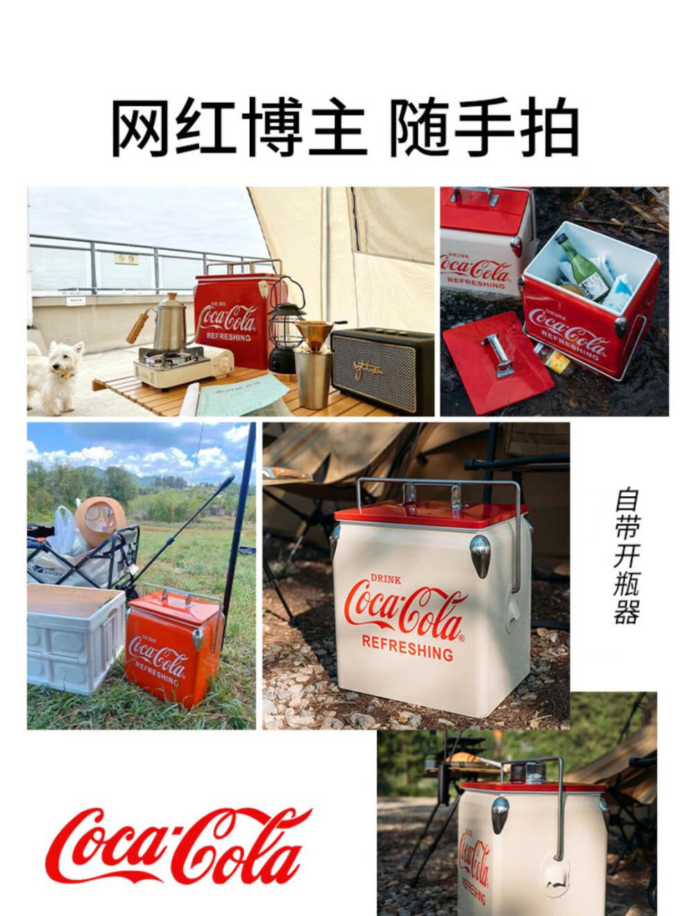 Coca-Cola insulated box cold ice bucket outdoor camping beverage insulated box portable portable car small refrigerator 30 liters large capacity red no need to plug in