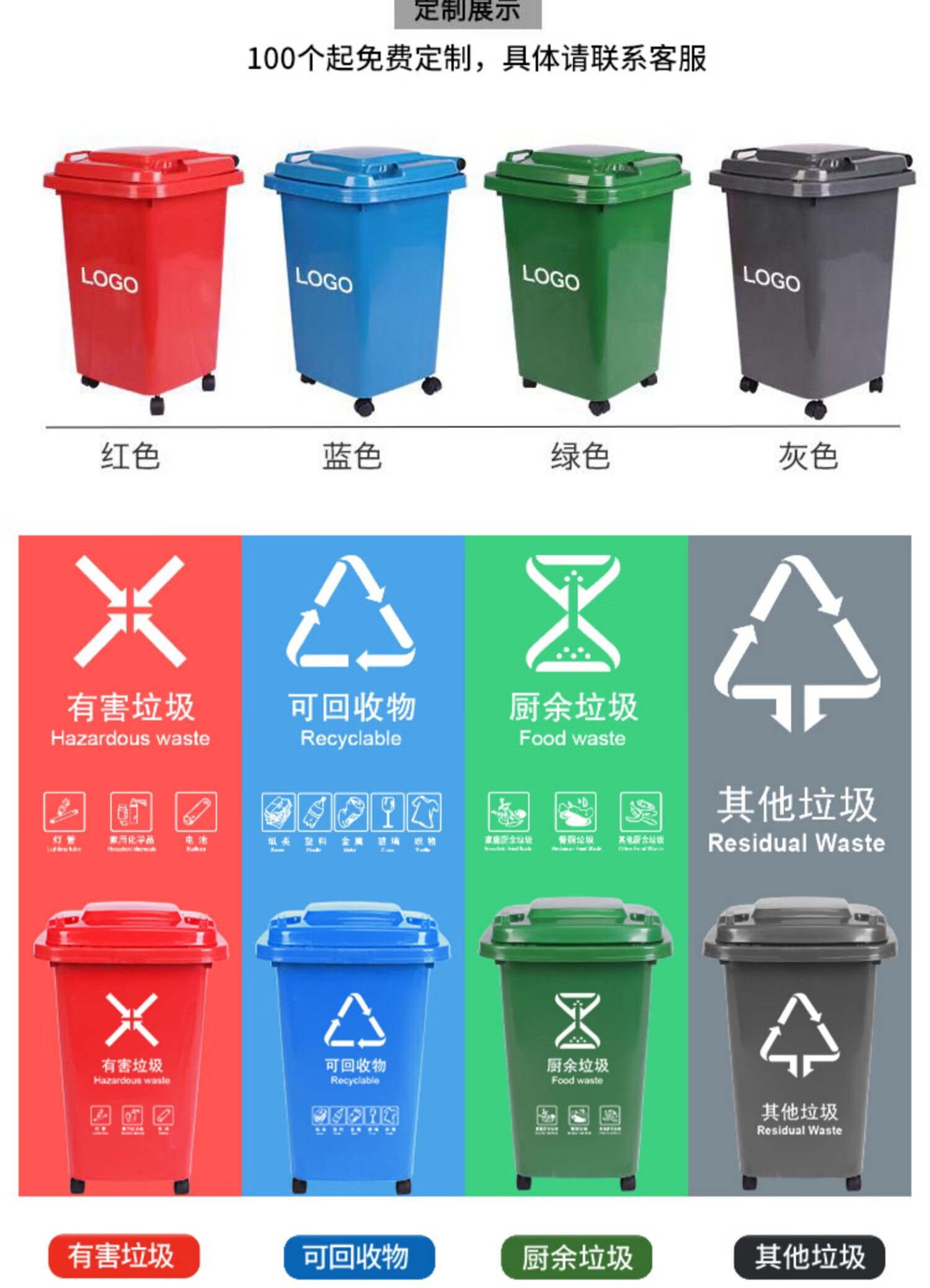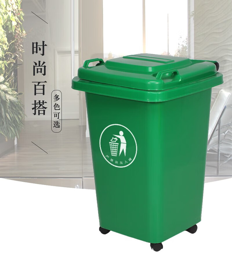 50 liters wheeled trash can commercial large capacity with lid large sanitation outdoor dining peel box kitchen 30 liters universal wheel bucket (gray) with wheel free 1