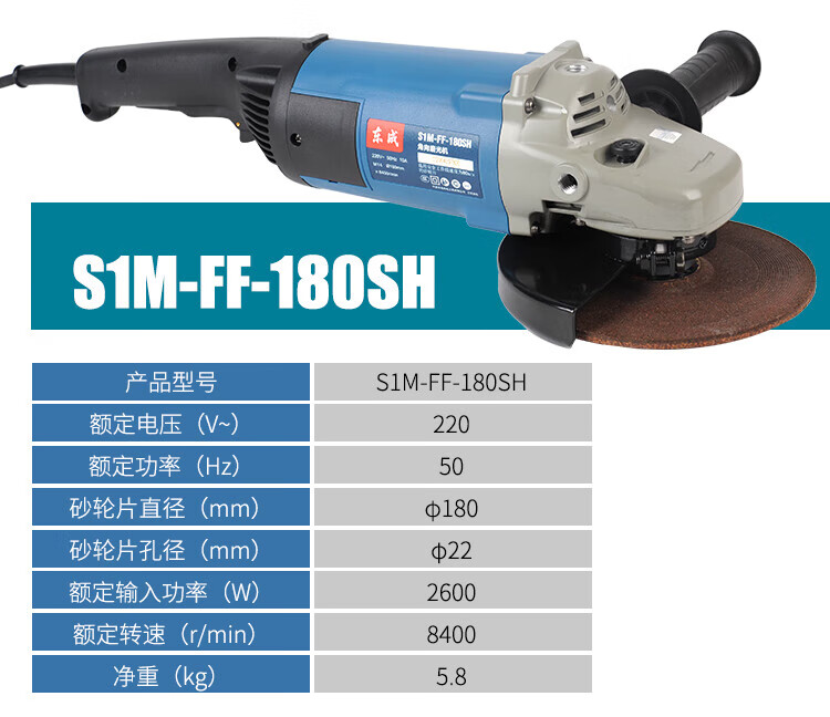 Dongcheng large size angle grinder 125150180 grinding and rust removal grinding wheel angle grinder handheld Dongcheng 180SH 2600W standard configuration
