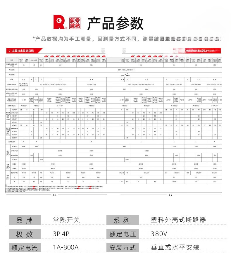 Changshu spot CM3-250 switch series molded case circuit breaker 63/100/160/400/630/800L type 3P CM3-100LS/3300 100A