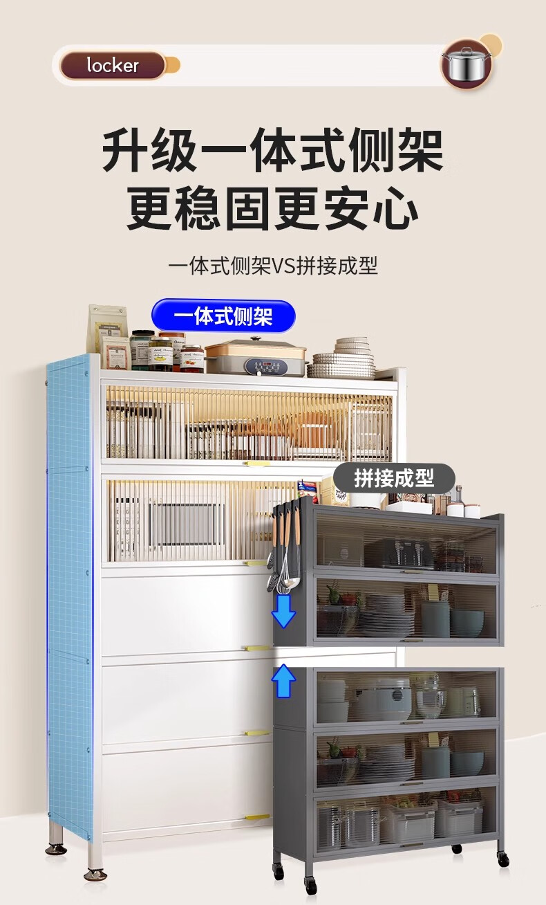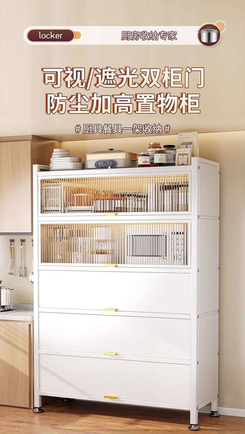 Kitchen rack floor-standing multi-layer home dining side storage multi-functional microwave cabinet cupboard iron door storage cabinet single layer heightening model 5 doors 6 layers high 193.5 length 60 width 42