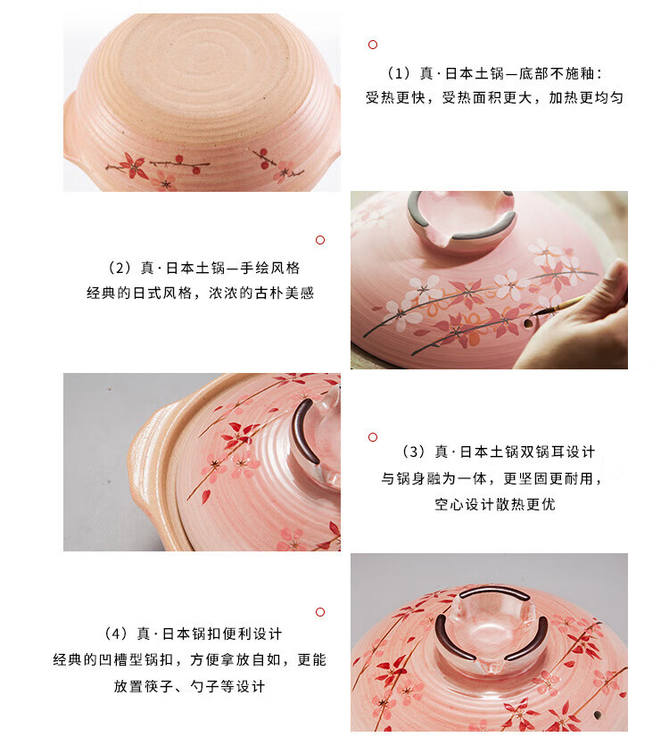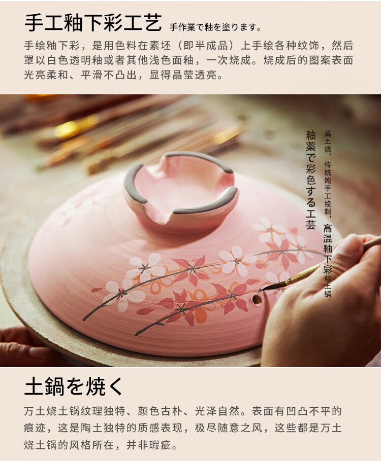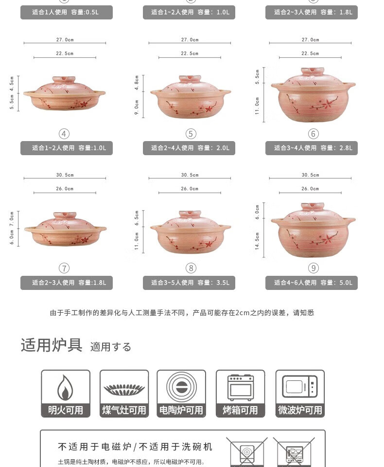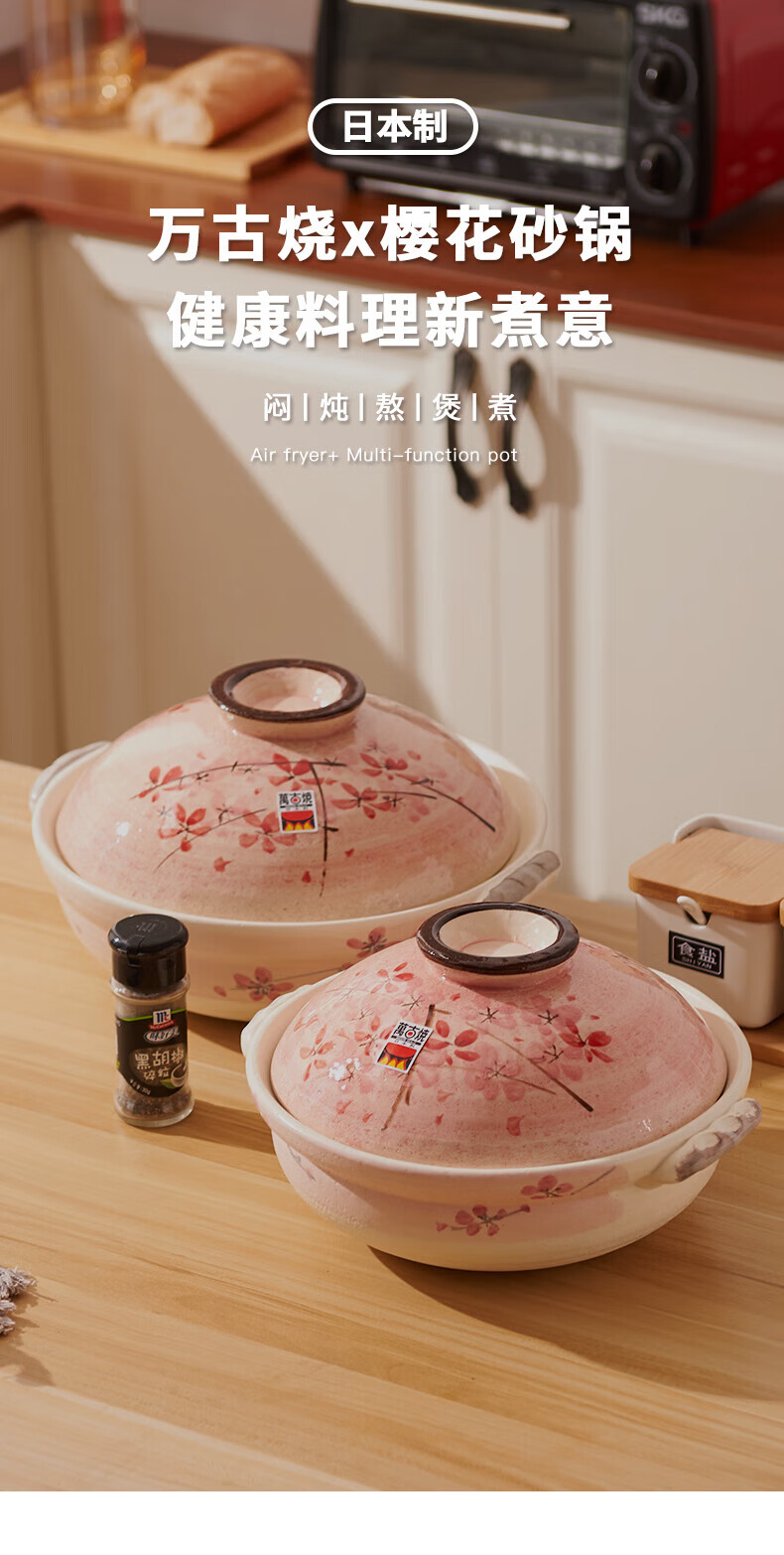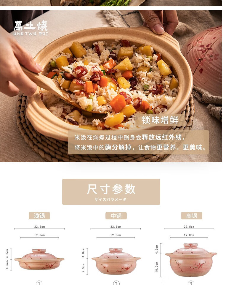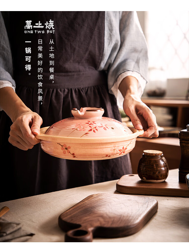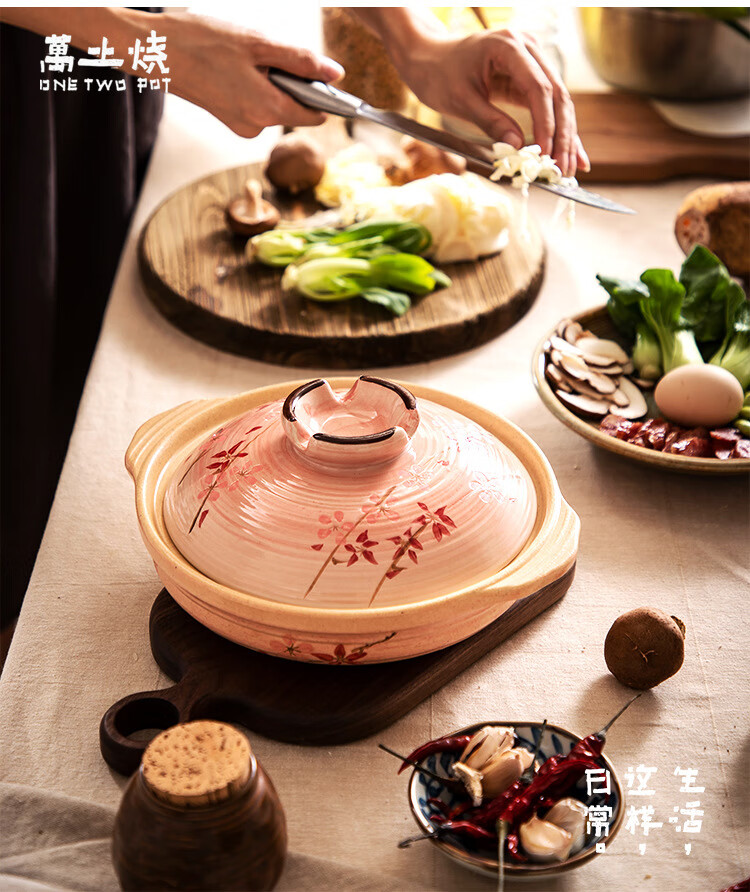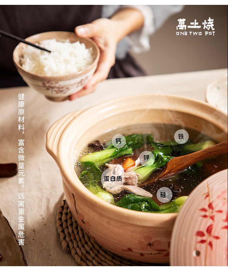 One World, One House Japan imported eternal clay pot household soup pot earthen pot small stew pot cooking porridge stew meat cooking high temperature resistant No. 5 (suitable for 2-3 people) 2L