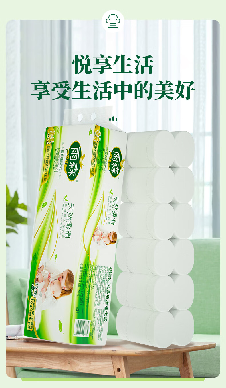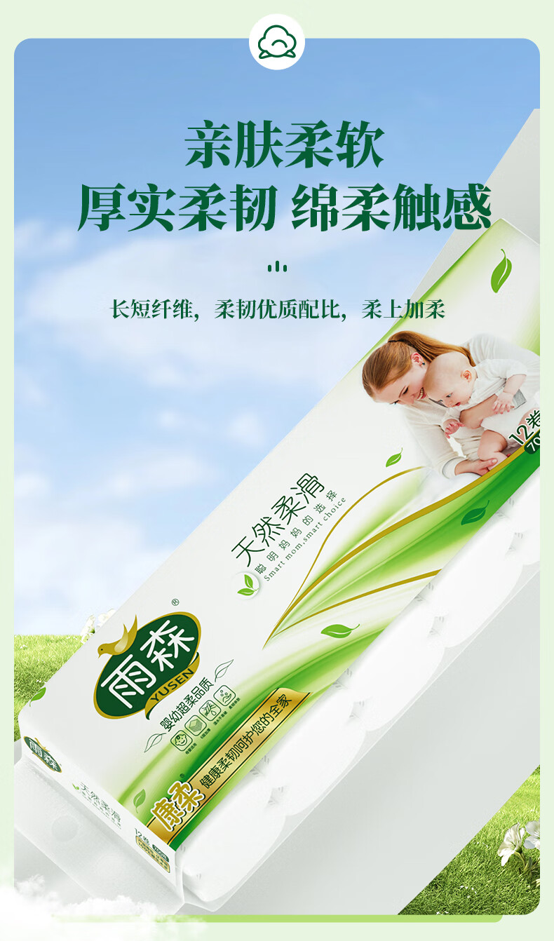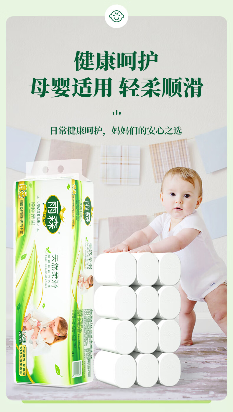 Yusen maternal and infant coreless paper towels for mothers and infants 6-layer thickened wettable household toilet paper 100% virgin wood pulp 6 layers 58g/roll*12 rolls 1 pack best-selling model