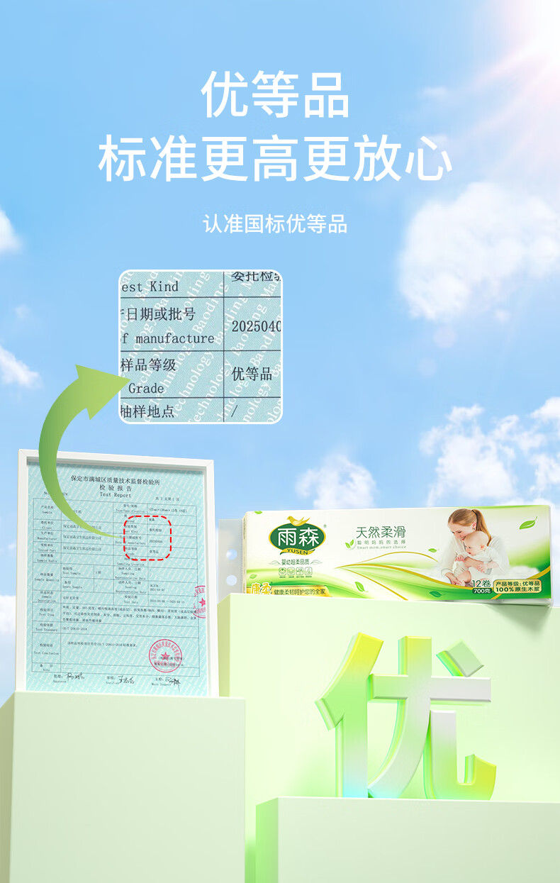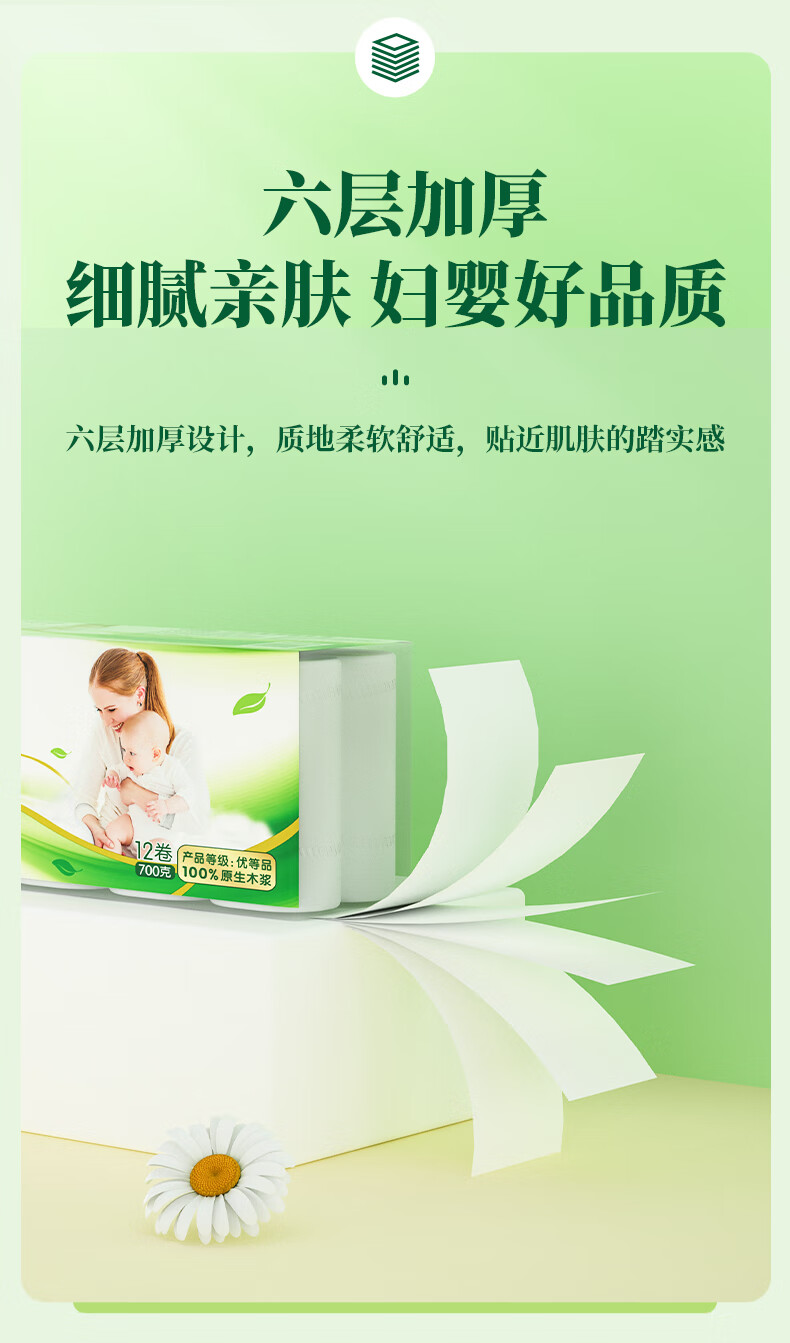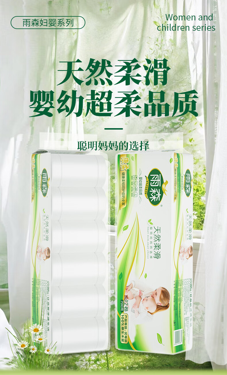 Yusen maternal and infant coreless paper towels for mothers and infants 6-layer thickened wettable household toilet paper 100% virgin wood pulp 6 layers 58g/roll*12 rolls 1 pack best-selling model