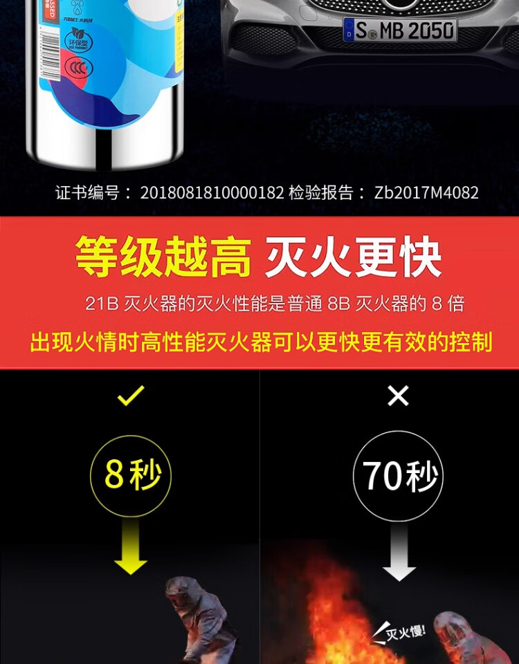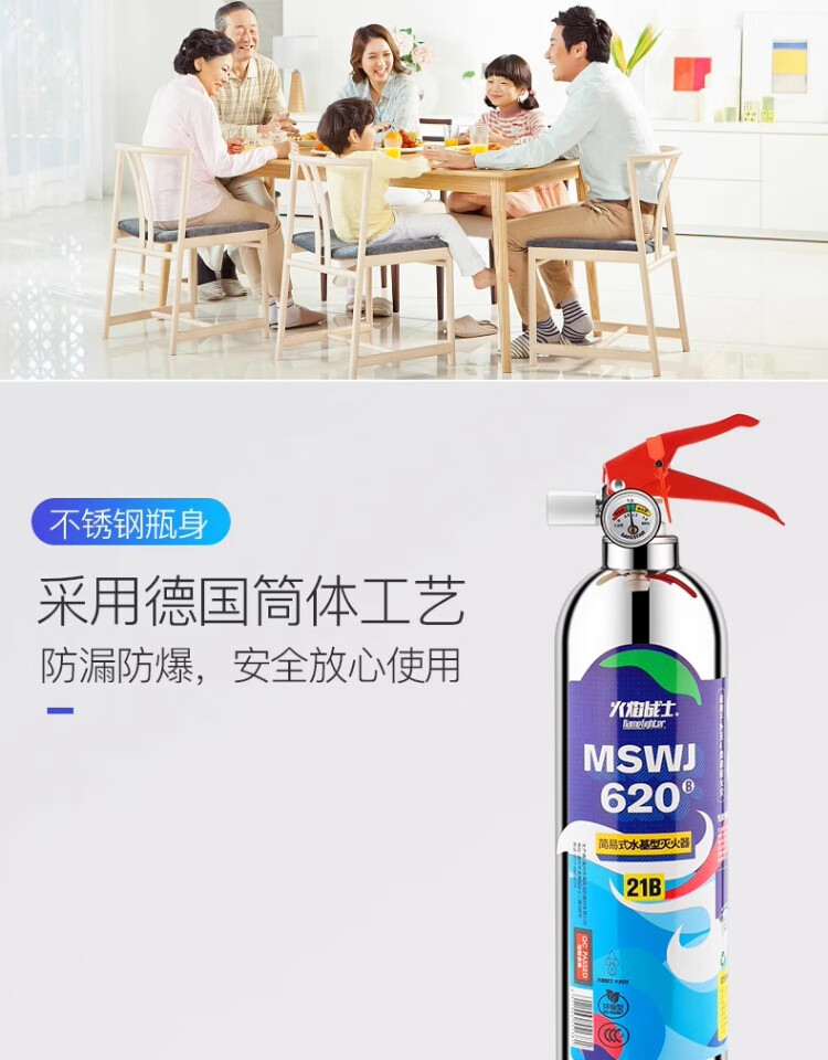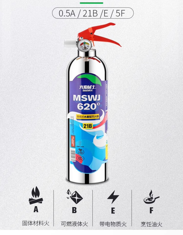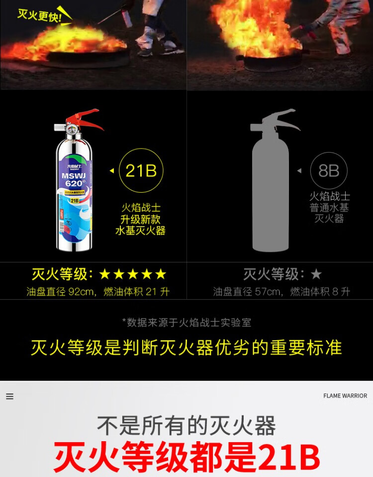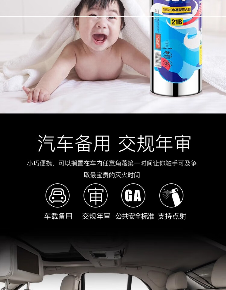 Flame Warrior vehicle-mounted water-based private car household high temperature resistant small portable stainless steel fire extinguisher 1L carbon dioxide annual fire inspection car home dual-use single bottle comes with fixed belt