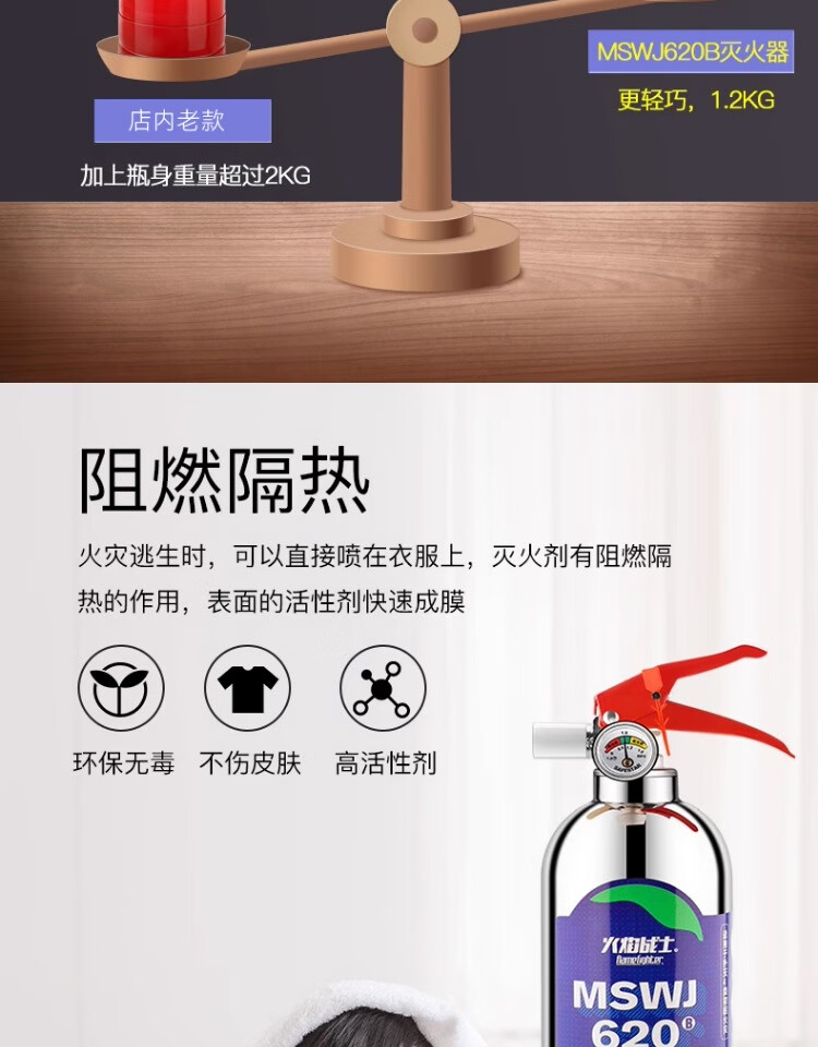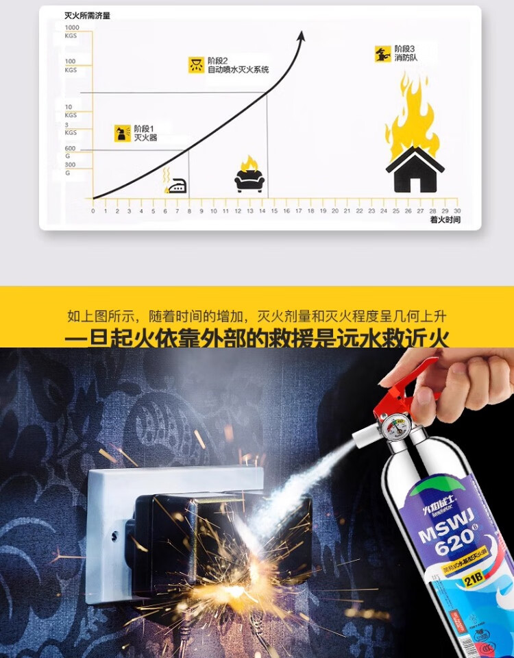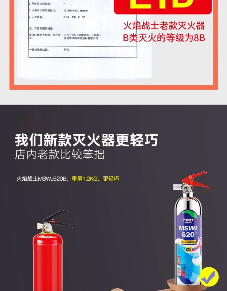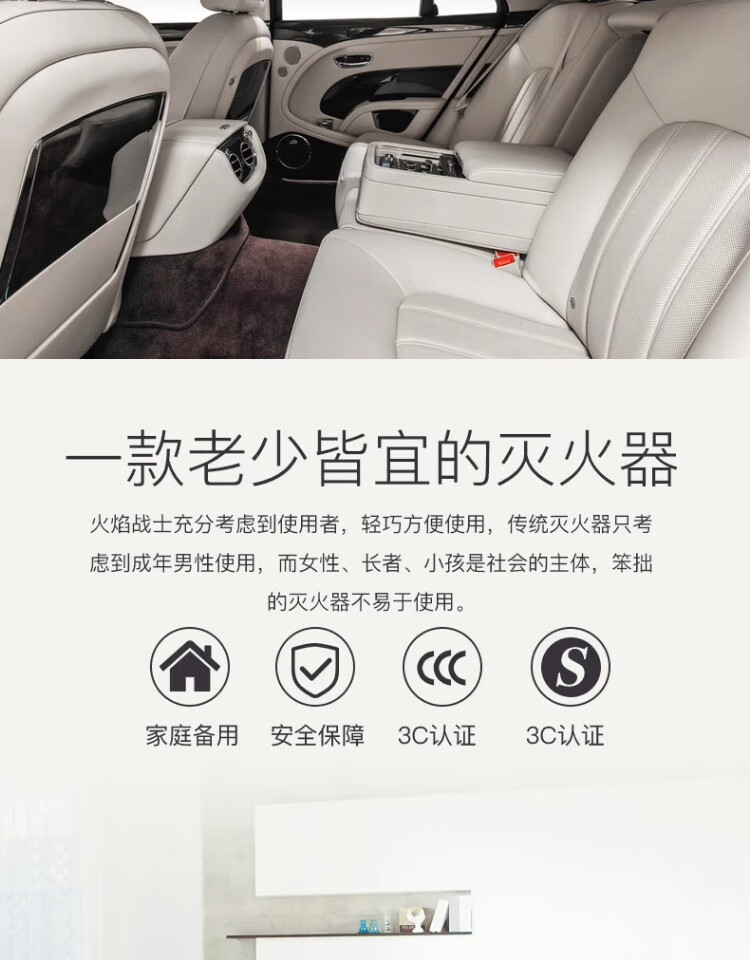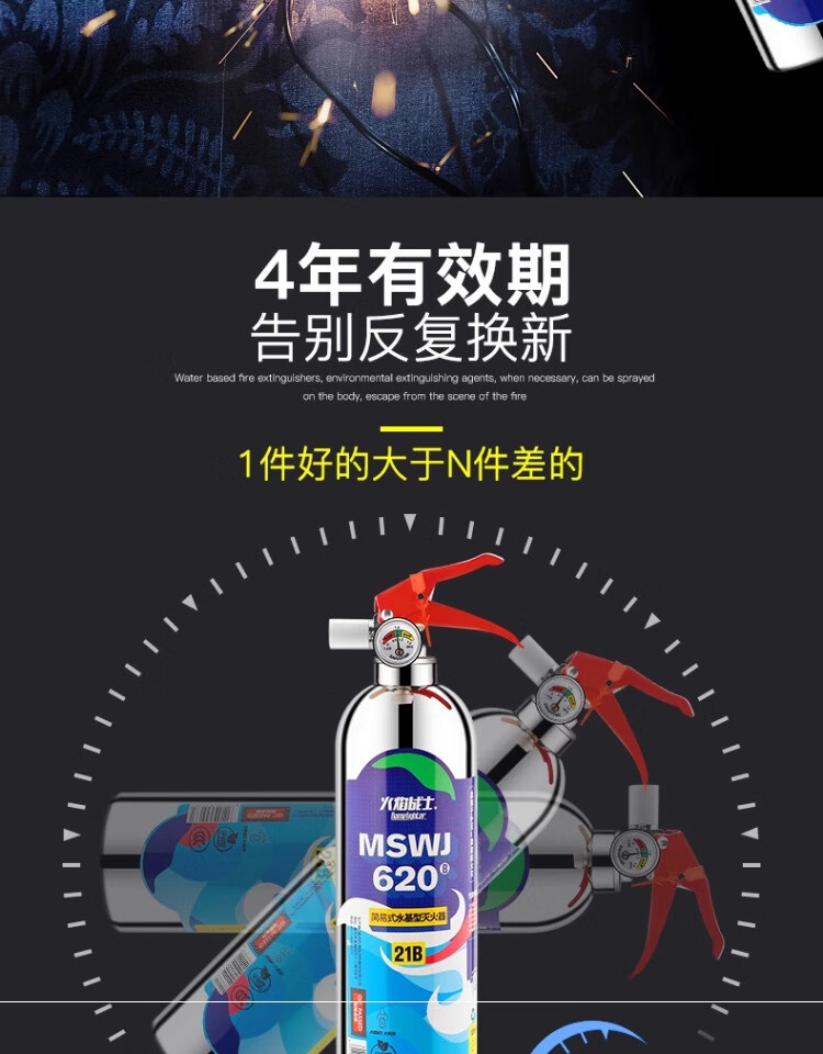 Flame Warrior vehicle-mounted water-based private car household high temperature resistant small portable stainless steel fire extinguisher 1L carbon dioxide annual fire inspection car home dual-use single bottle comes with fixed belt