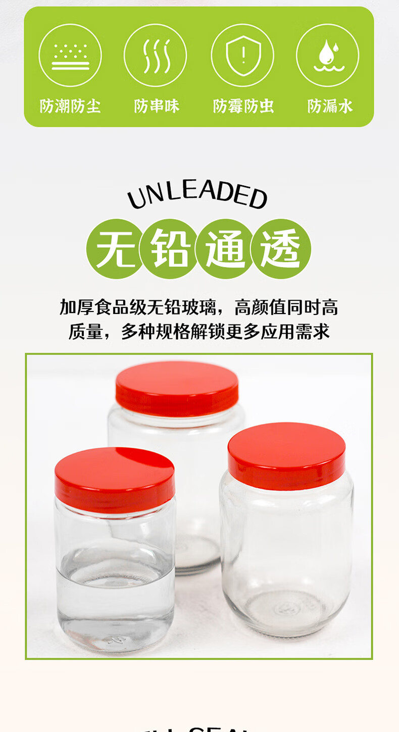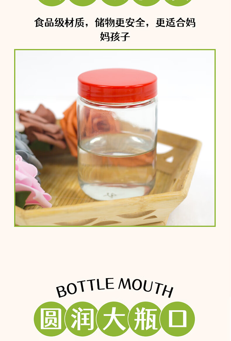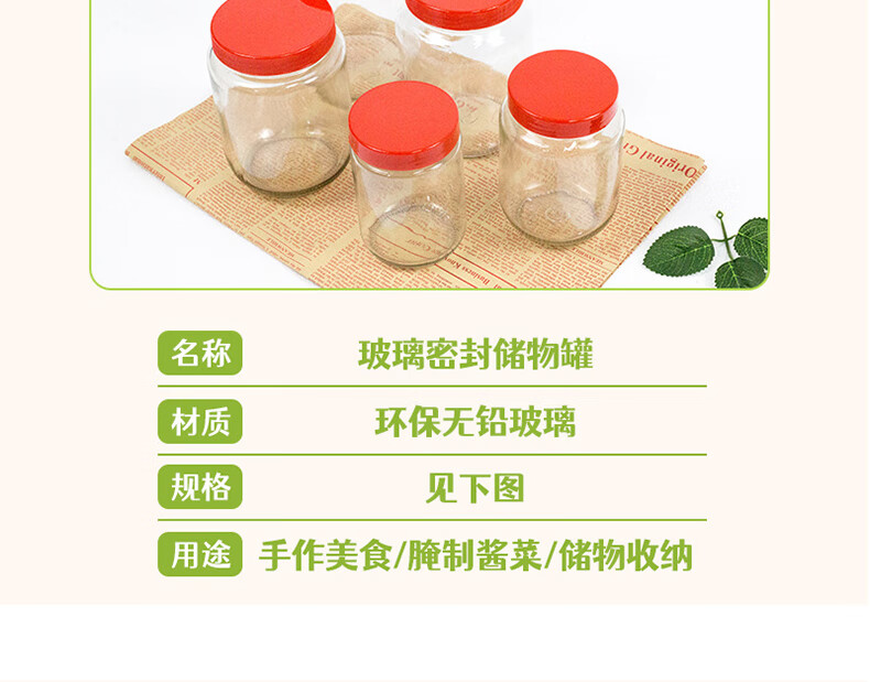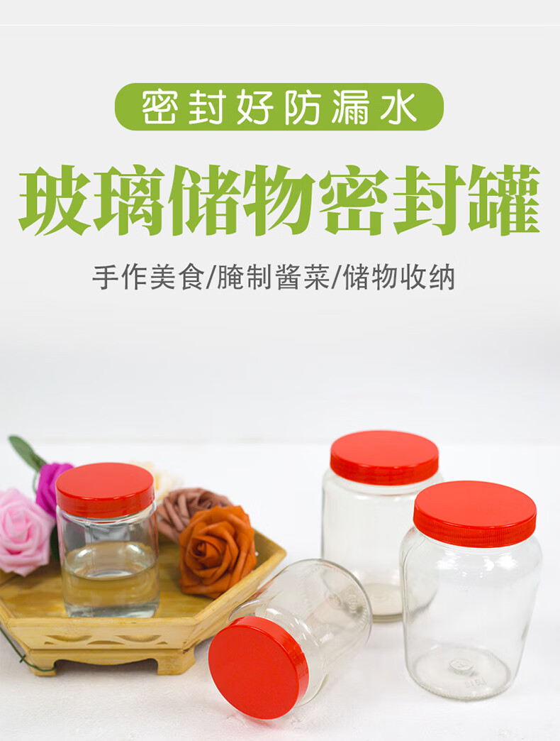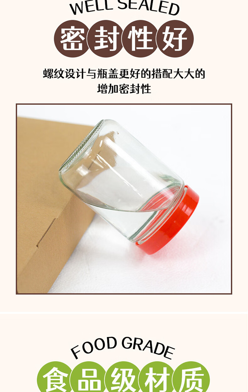 Glass bottle plastic lid pickled pickles sealed jar honey bottle food grade high temperature resistant pickle storage bottle 500g x 12 bottles with lid and sealing gasket