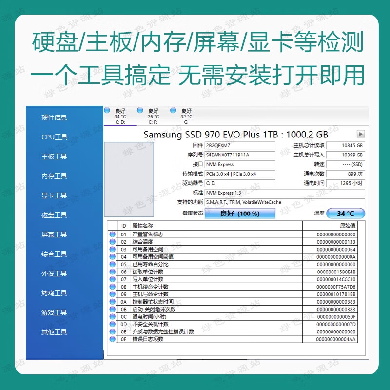 Computer hardware detection tool hard disk screen CPU motherboard memory graphics card fault repair test offline software self-installation with tutorials