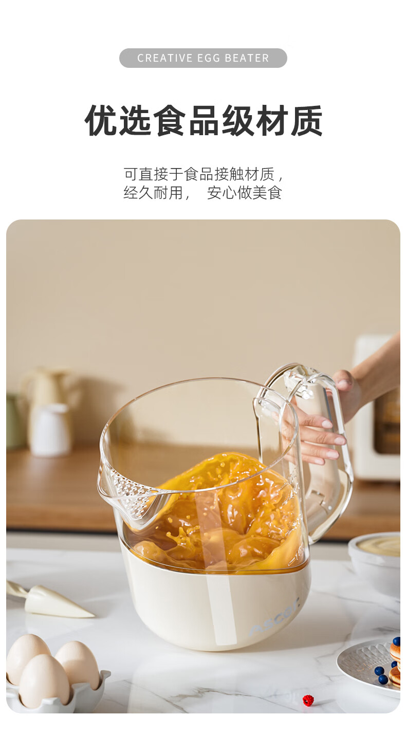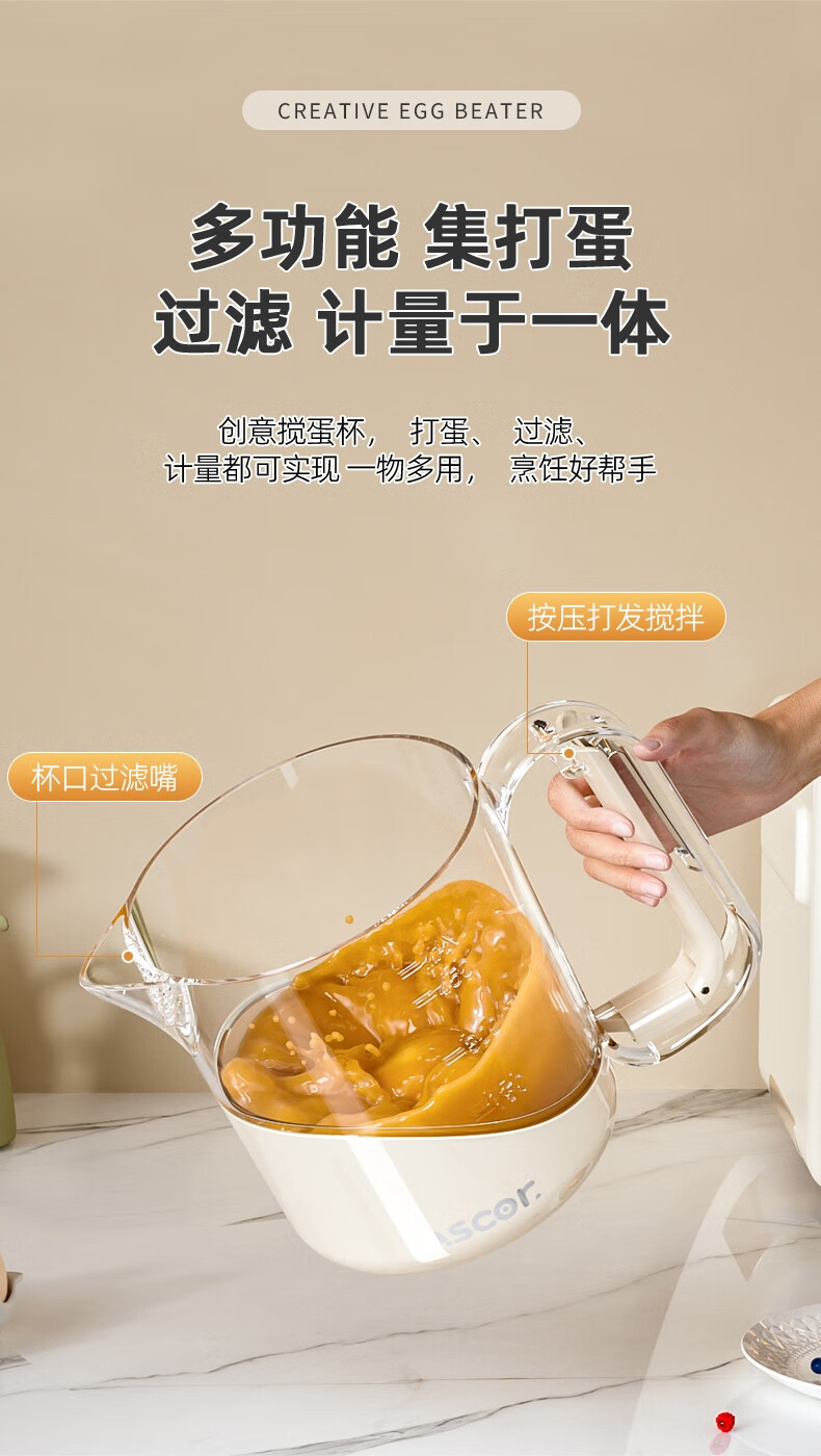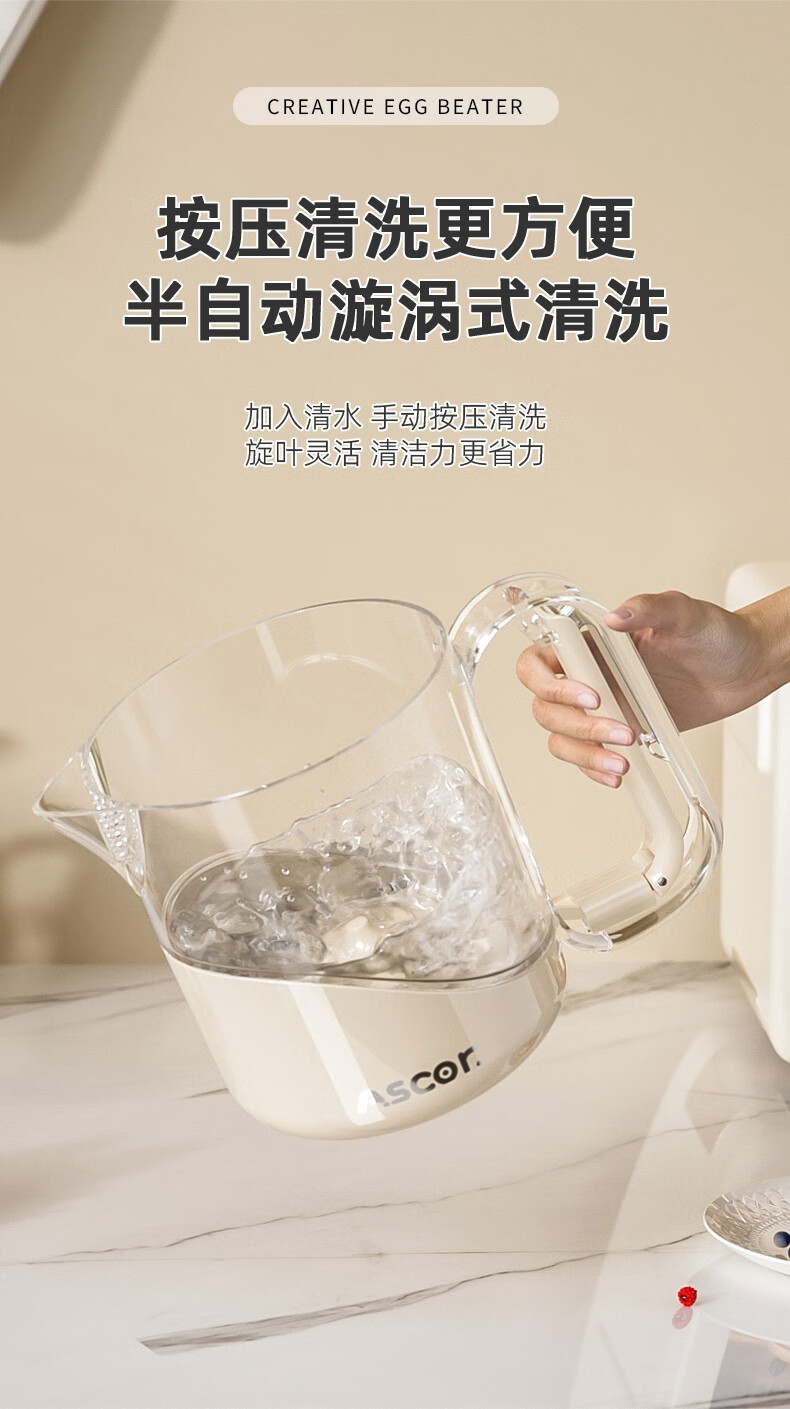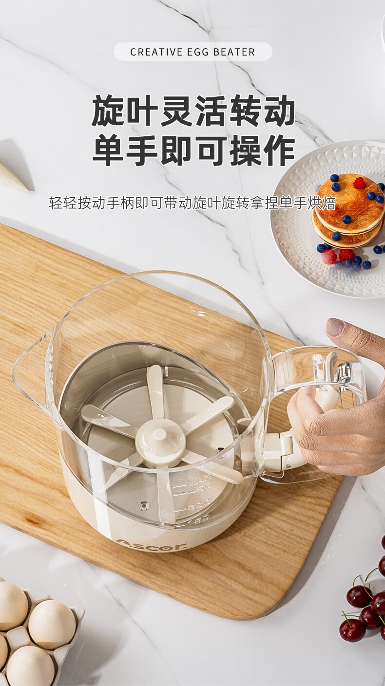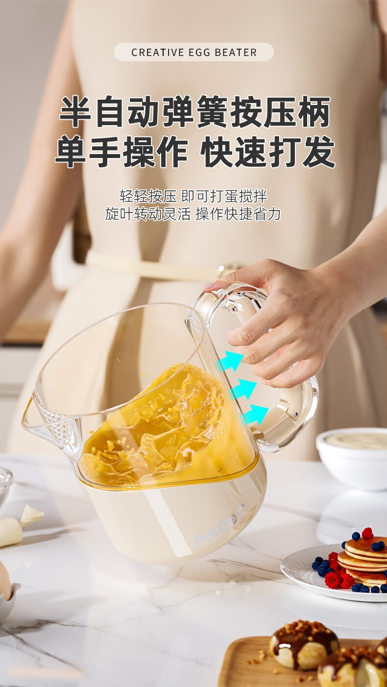 ASCOR multifunctional egg beater manual household semi-automatic egg whisk cup whipped cream filter stirring dough mixer milky white - 1 pack semi-automatic spring press