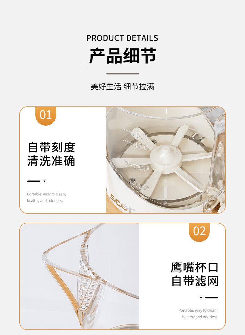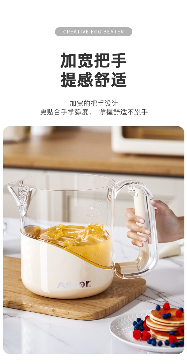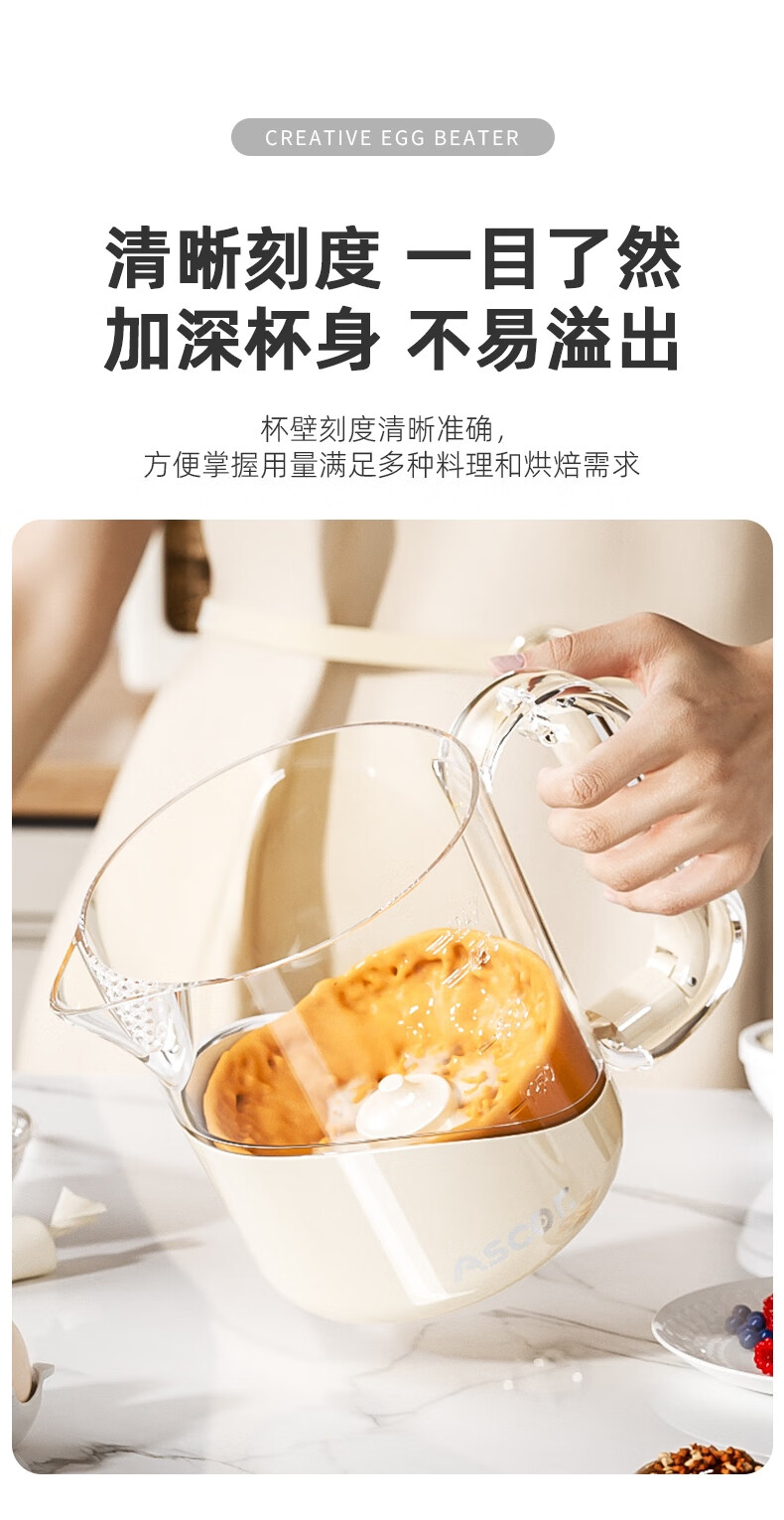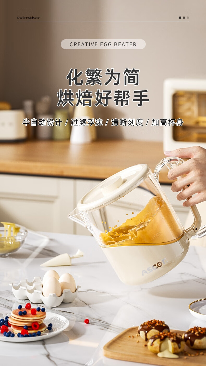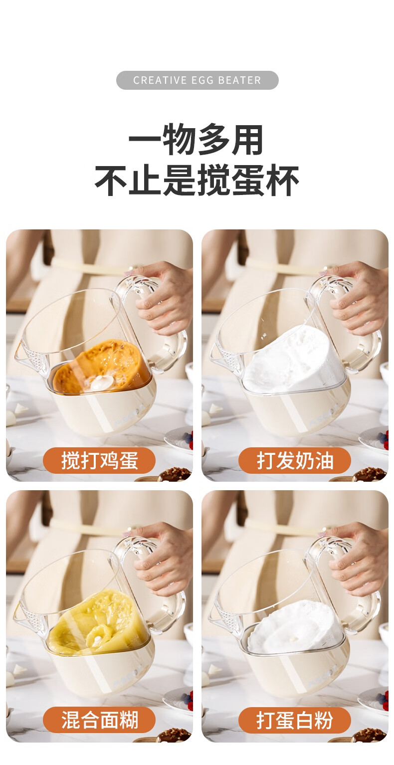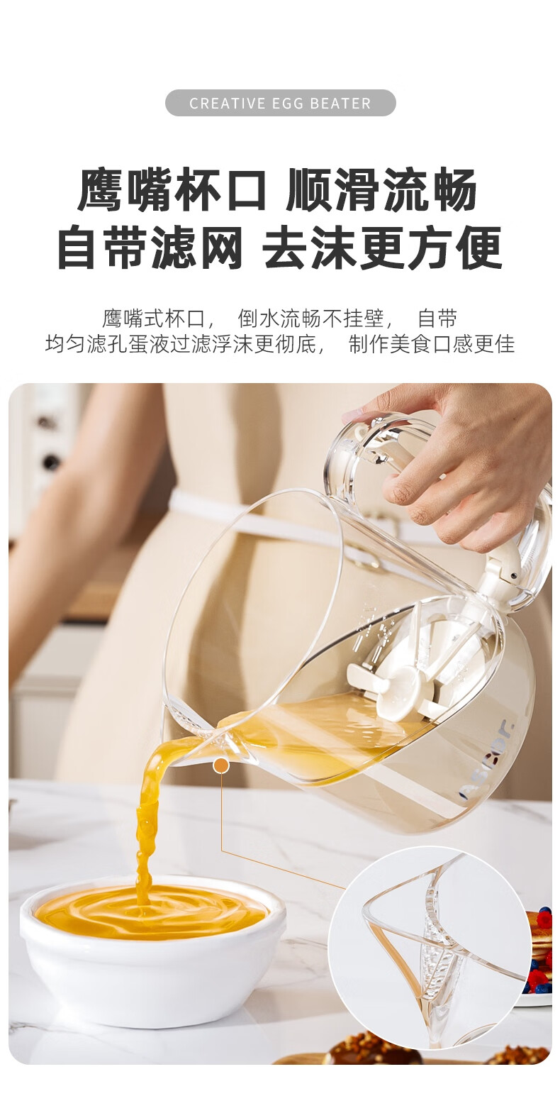 ASCOR multifunctional egg beater manual household semi-automatic egg whisk cup whipped cream filter stirring dough mixer milky white - 1 pack semi-automatic spring press