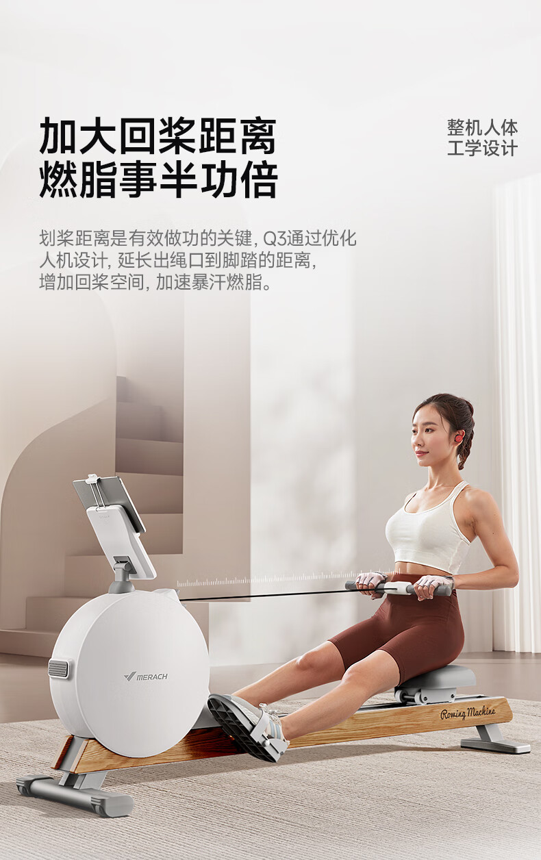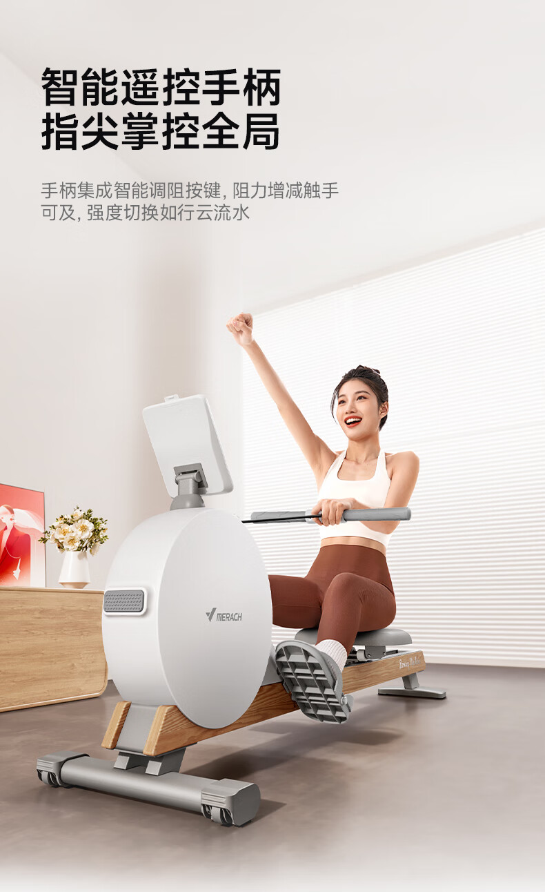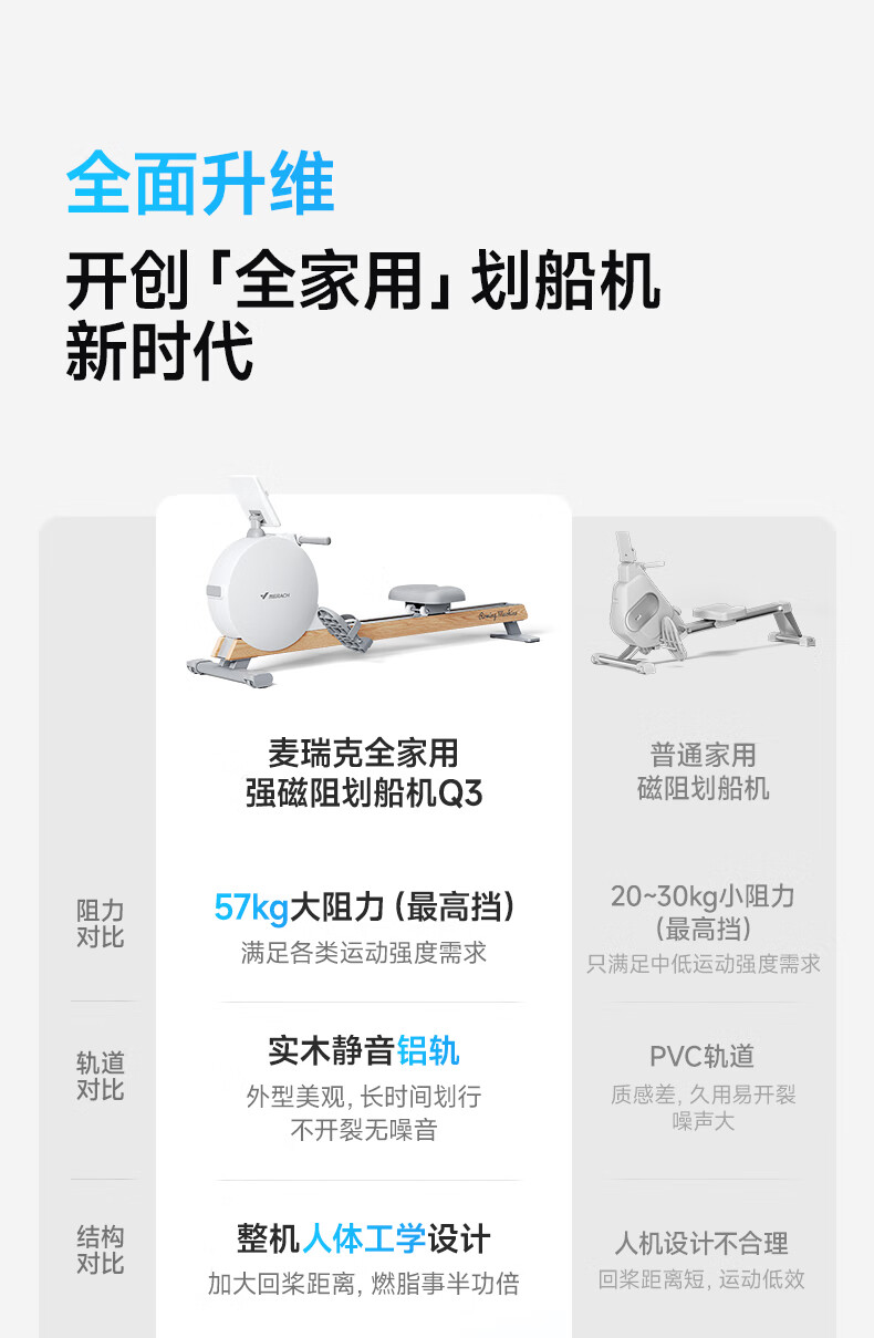 MERACH rowing machine household magnetic resistance silent super fat-burning fitness equipment comprehensive training device small boat Q1 plug-in model ink black - 38KG magnetic resistance - aluminum alloy double slide