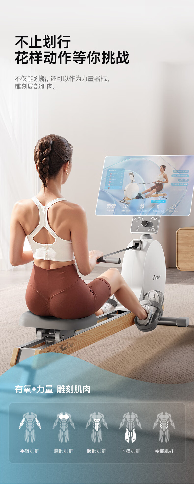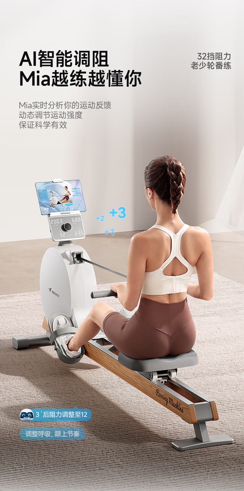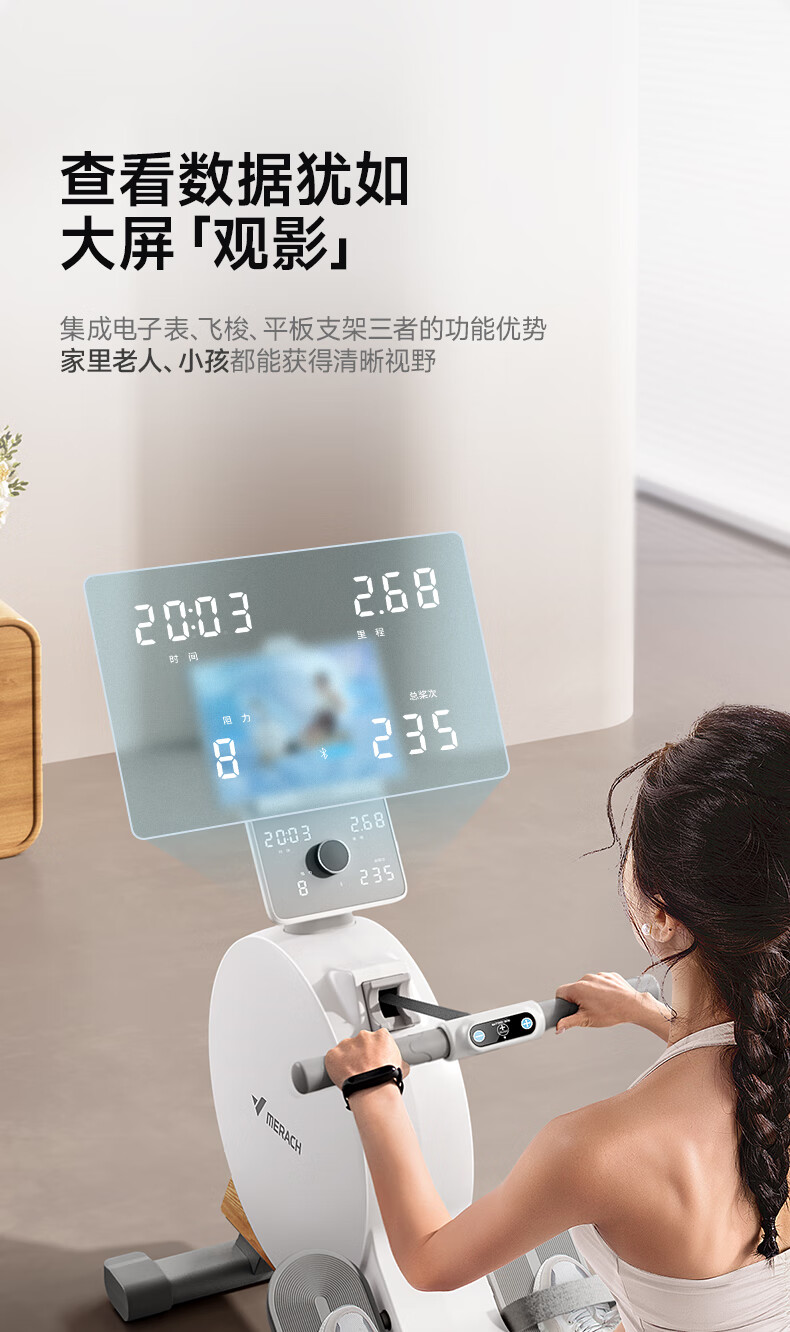 MERACH rowing machine household magnetic resistance silent super fat-burning fitness equipment comprehensive training device small boat Q1 plug-in model ink black - 38KG magnetic resistance - aluminum alloy double slide