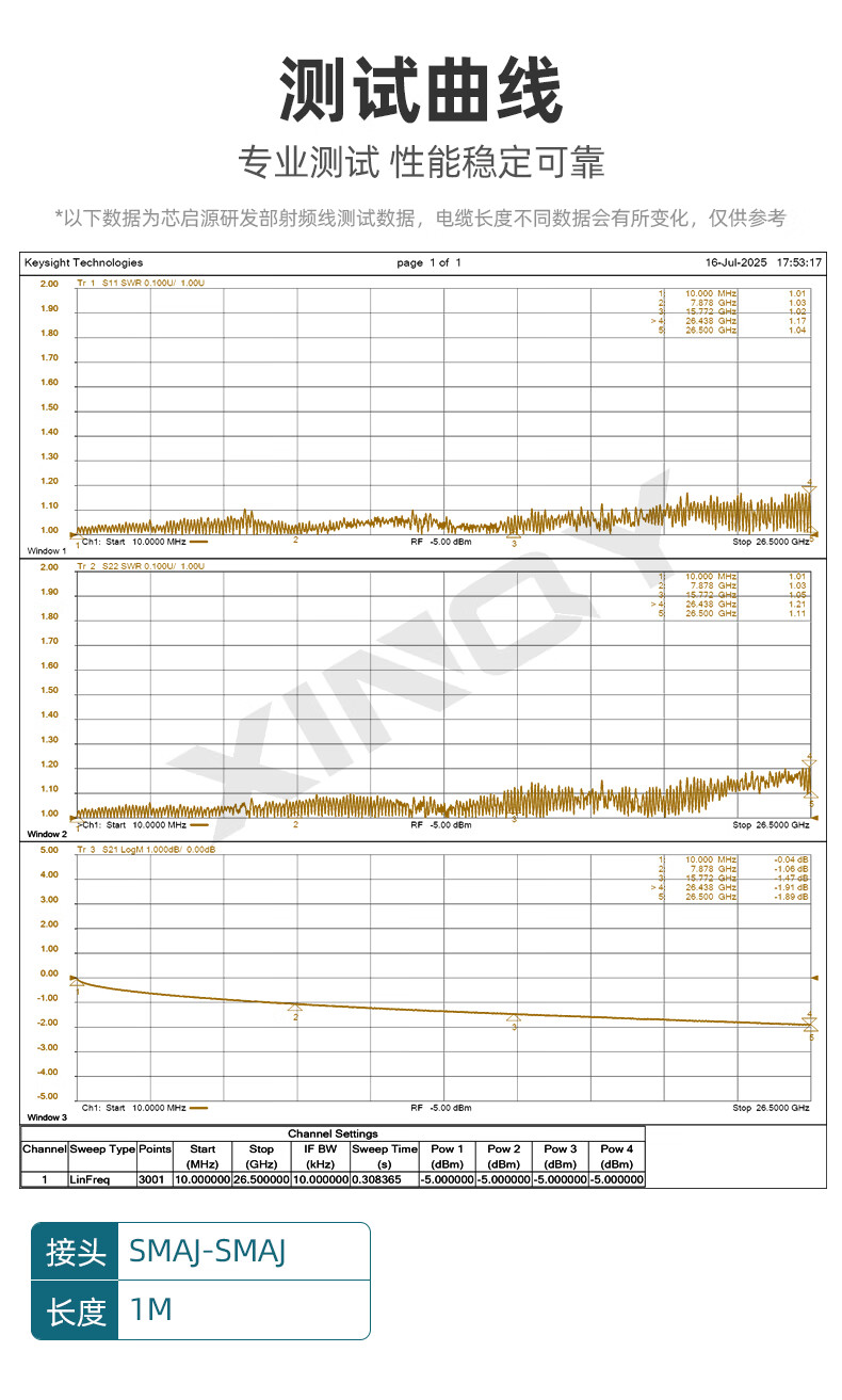 XINQY Xinqiyuan 26.5G phase-stable RF cable SMA/SMP (GPO) connector interchangeable CXN3507 low-loss coaxial cable assembly network analyzer test cable SMA male-SMA male 0.8m