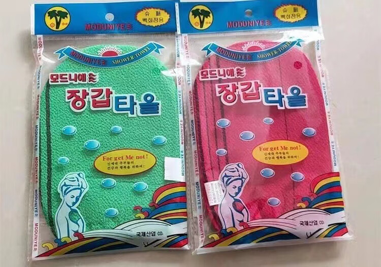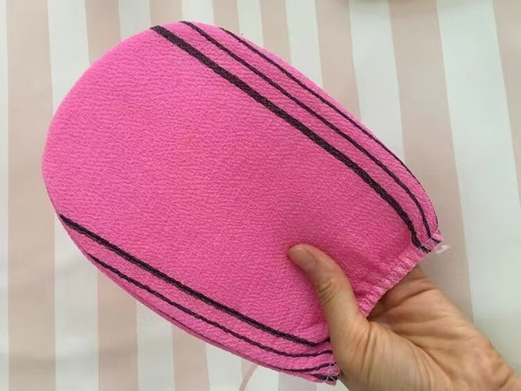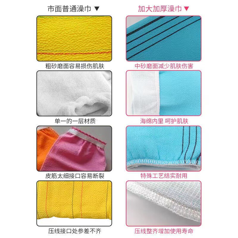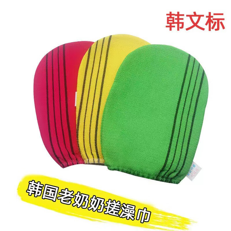 Wei Ci Korean grandma's bath towel pull-back strip fine sand dust removal towel children's bath gloves and bath artifact upgraded new polyester encrypted liner pink/blue/yellow three-color three-pack thickened bath towel