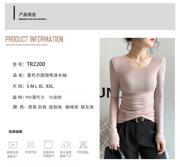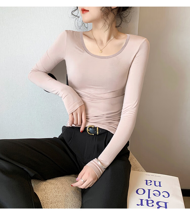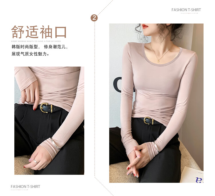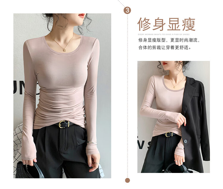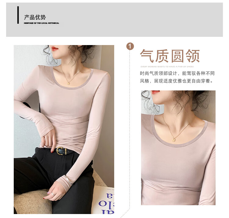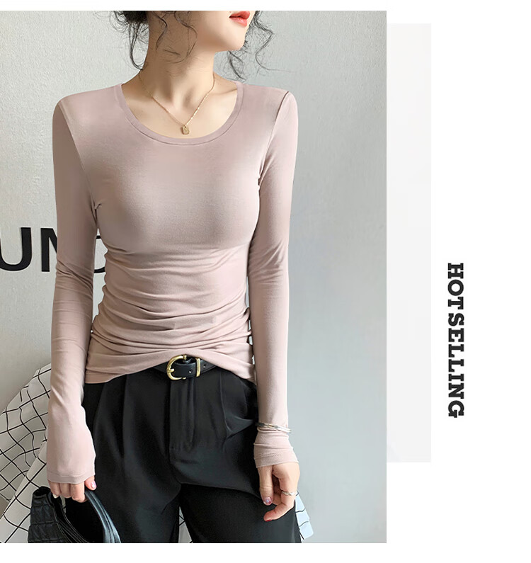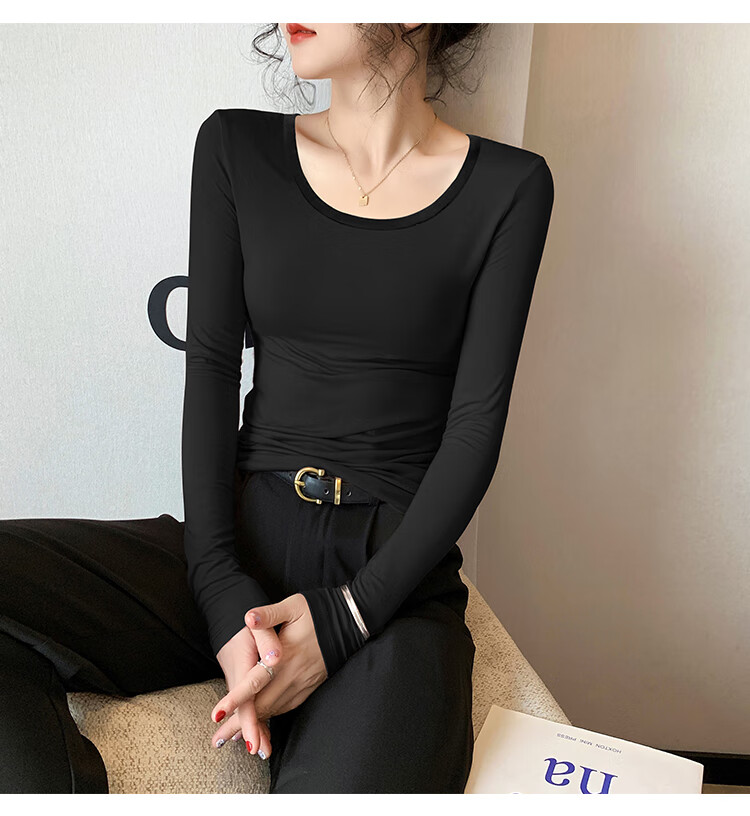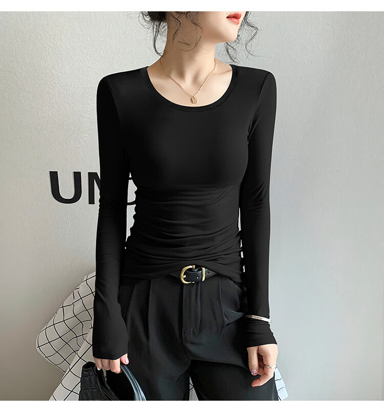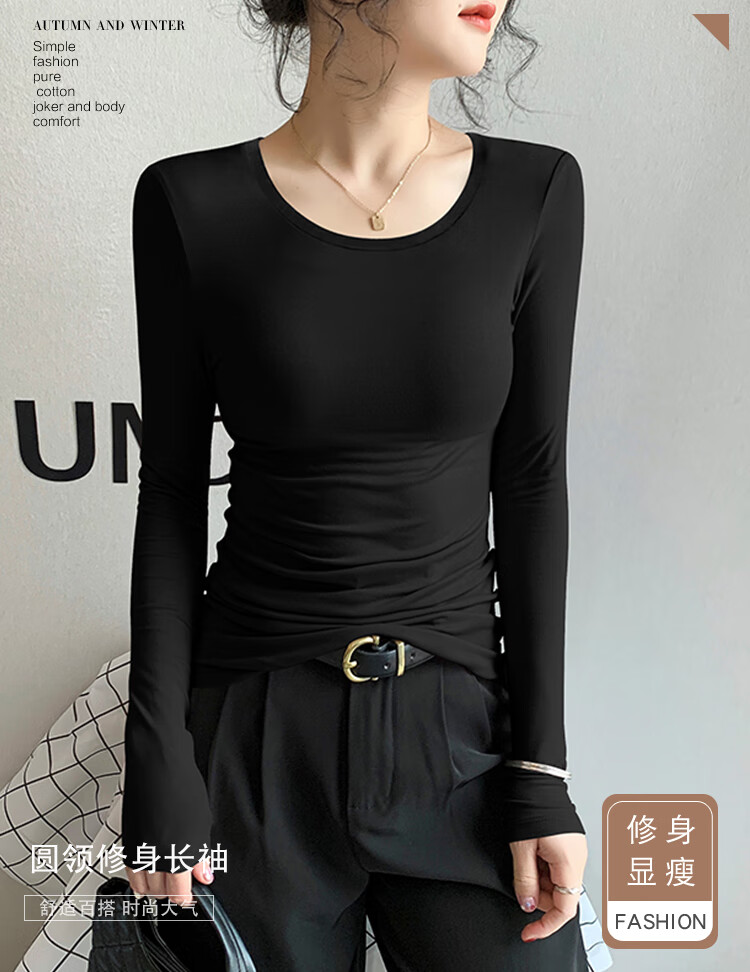 Pierre Cardin Modal Round Neck Long Sleeve Bottoming Shirt for Women 2025 Spring and Autumn New Black Style Thin Top Black Single Round Neck S Under 90 Jin